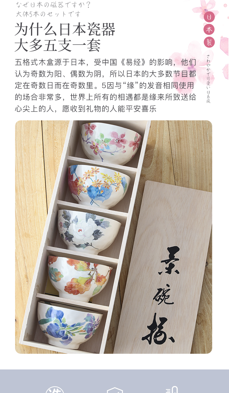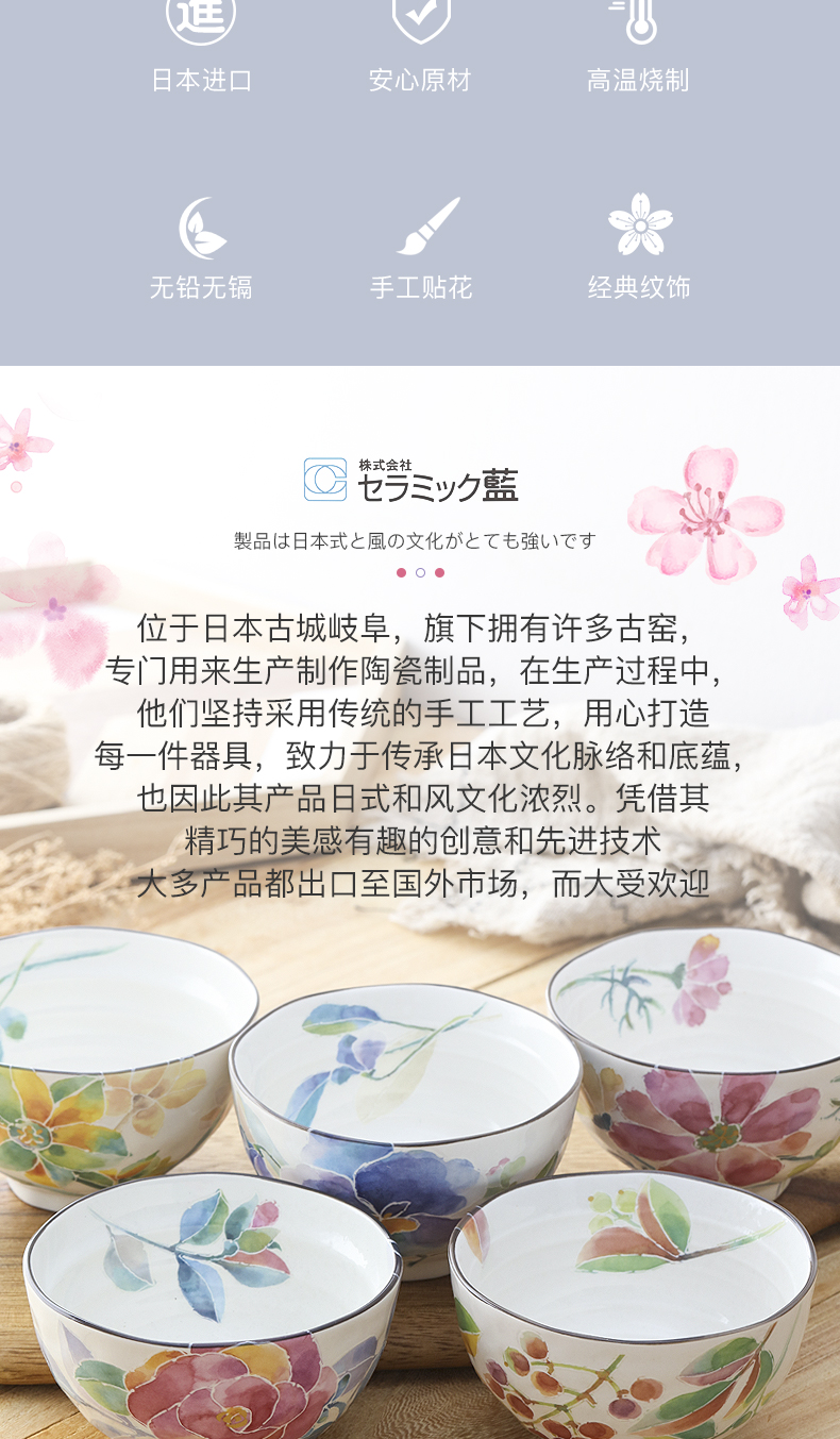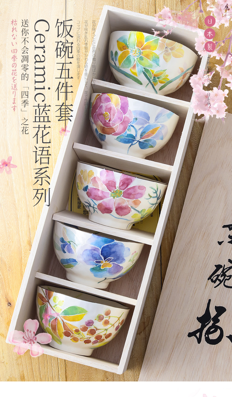 日本进口和蓝陶瓷饭碗日式甜品小汤碗5入碗礼盒套装花蝴蝶2入盘5入碗2入面碗