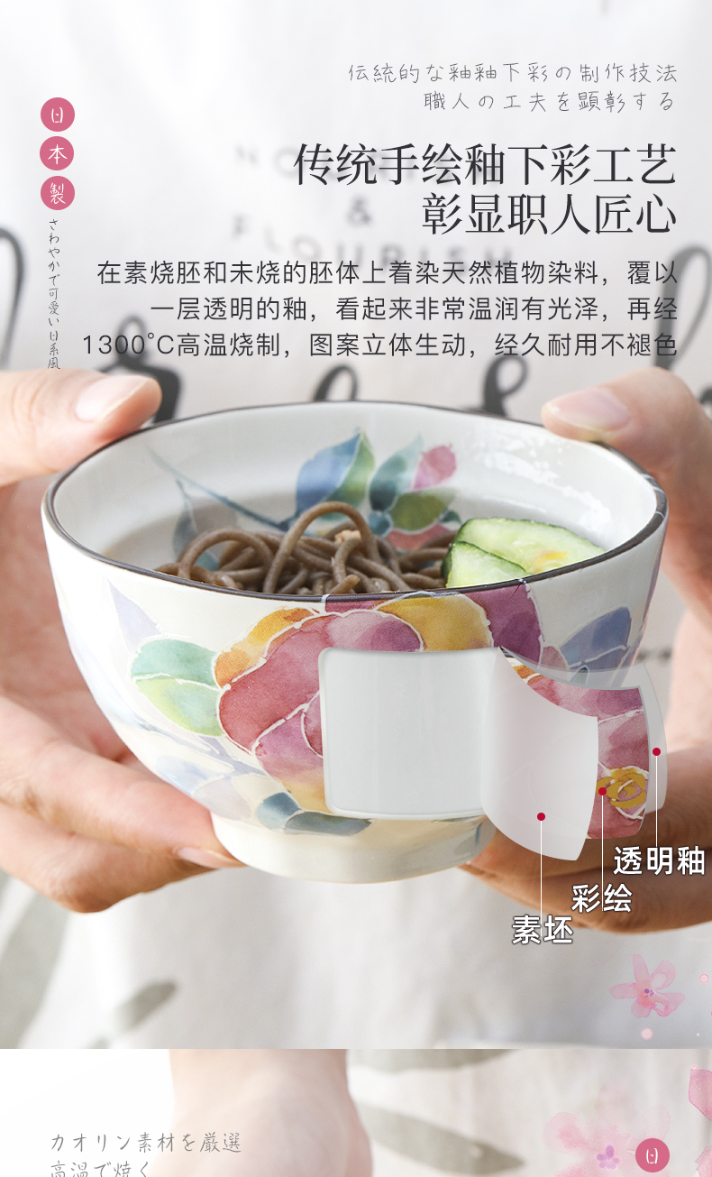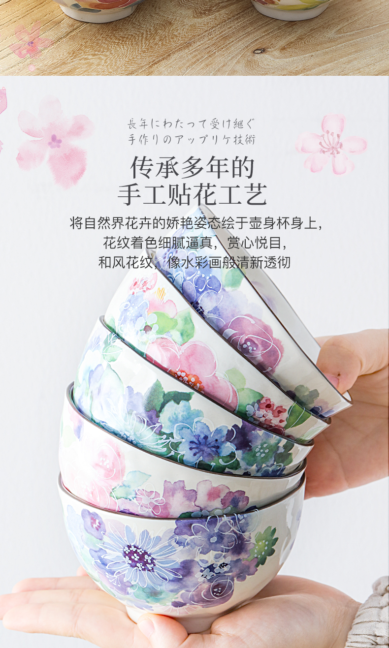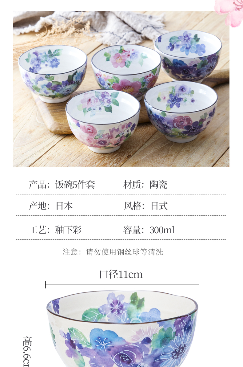 日本进口和蓝陶瓷饭碗日式甜品小汤碗5入碗礼盒套装花蝴蝶2入盘5入碗2入面碗