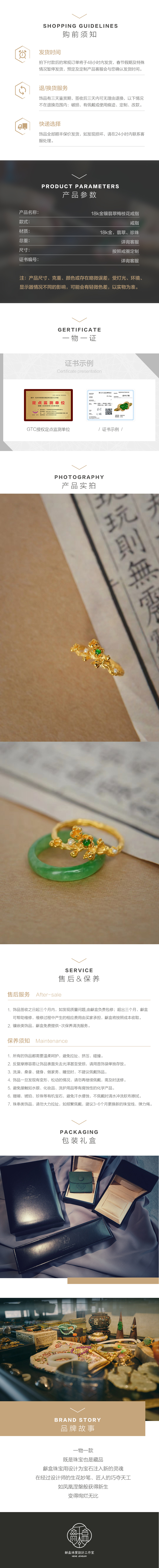 龢盒原创 18k金镶翡翠梅枝花戒指