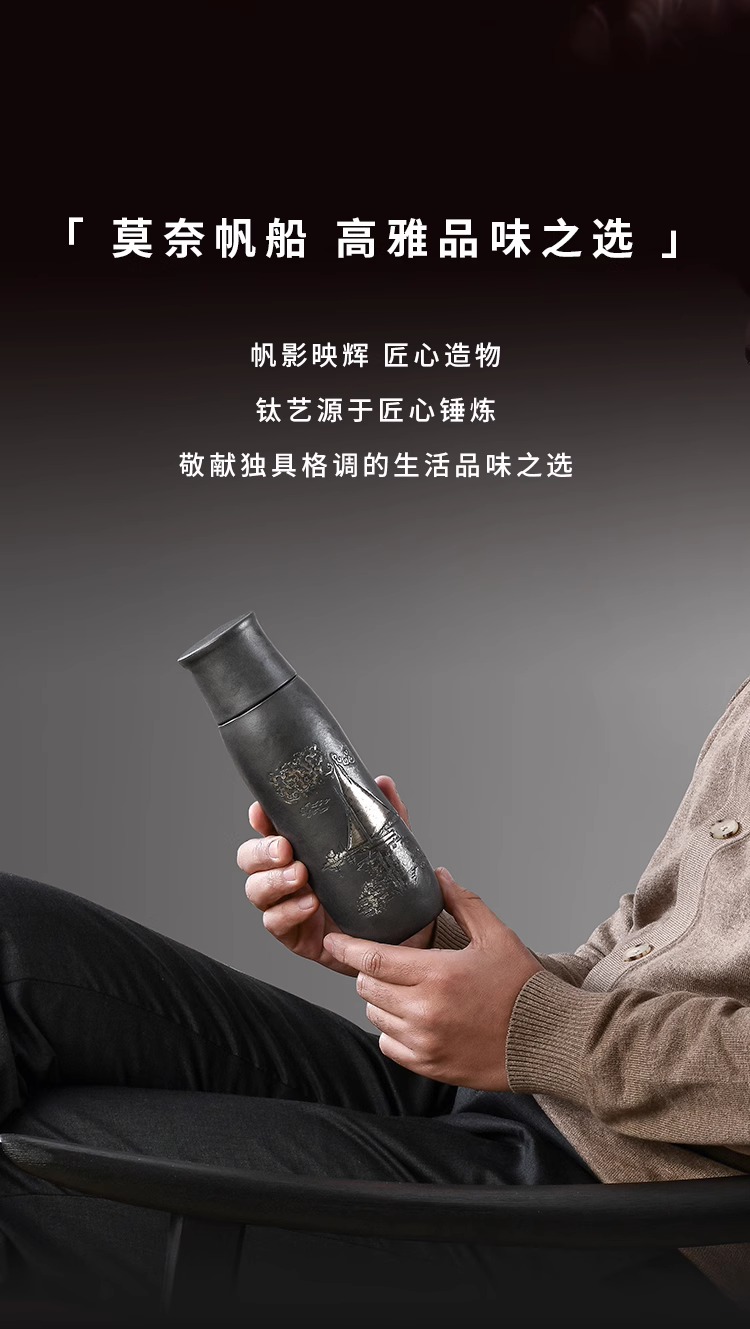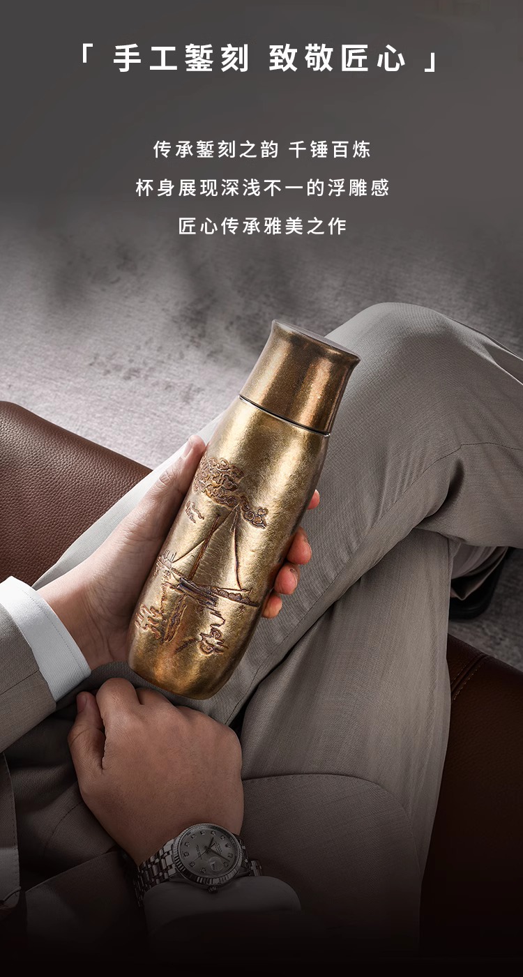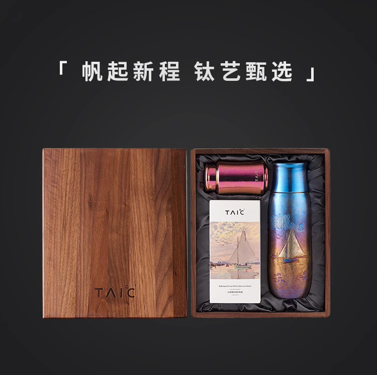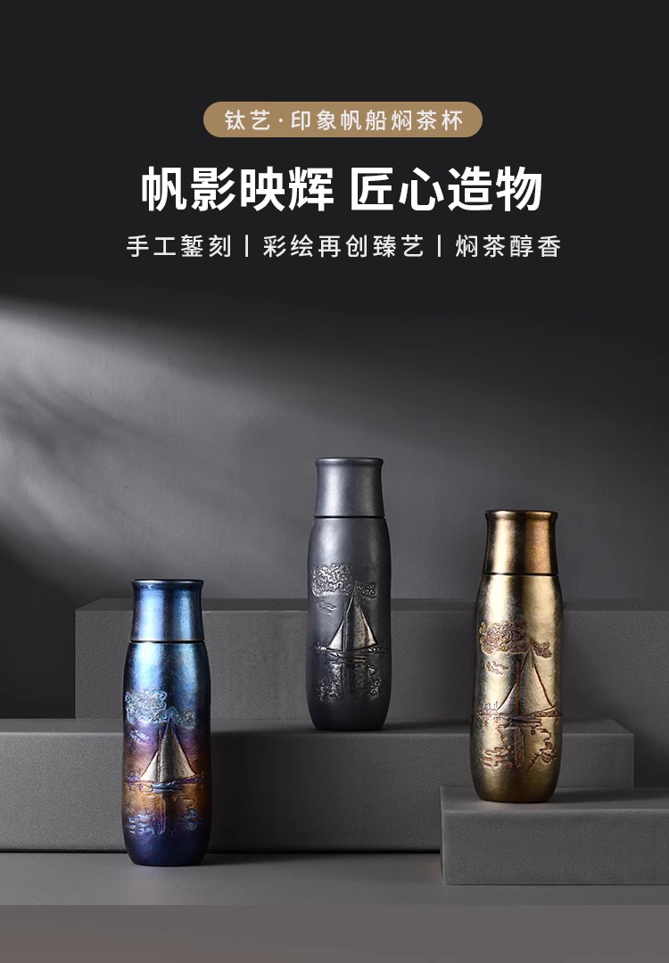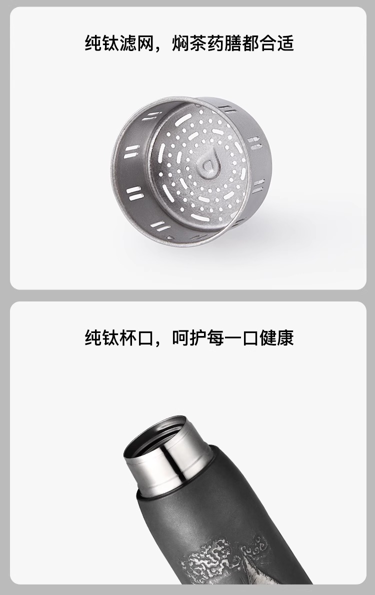 TAIC太可纯钛保温杯送领导轻奢高档水杯手工錾刻钛艺焖茶杯套装390ml