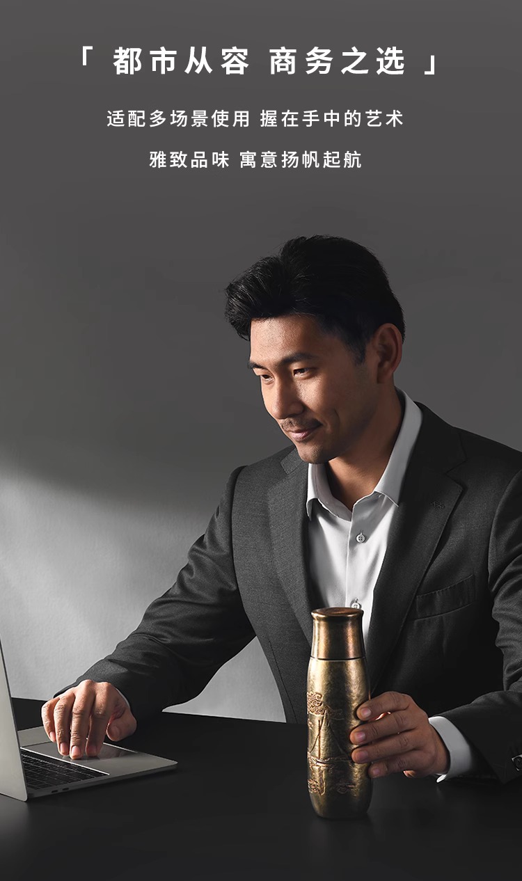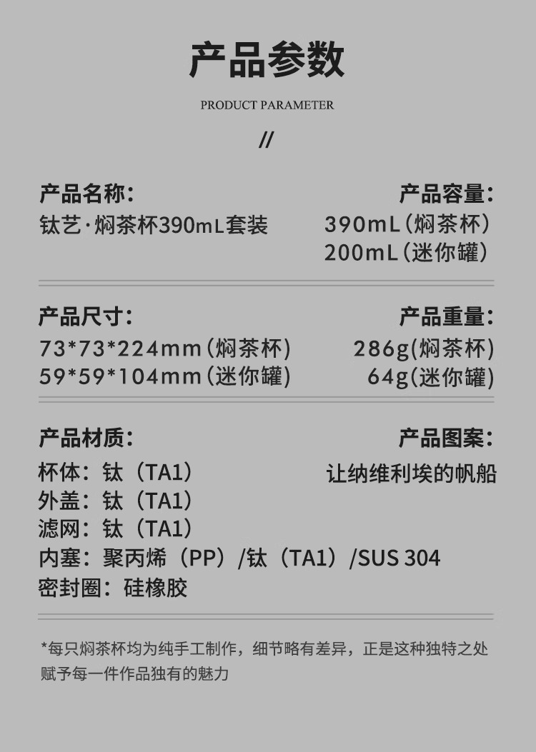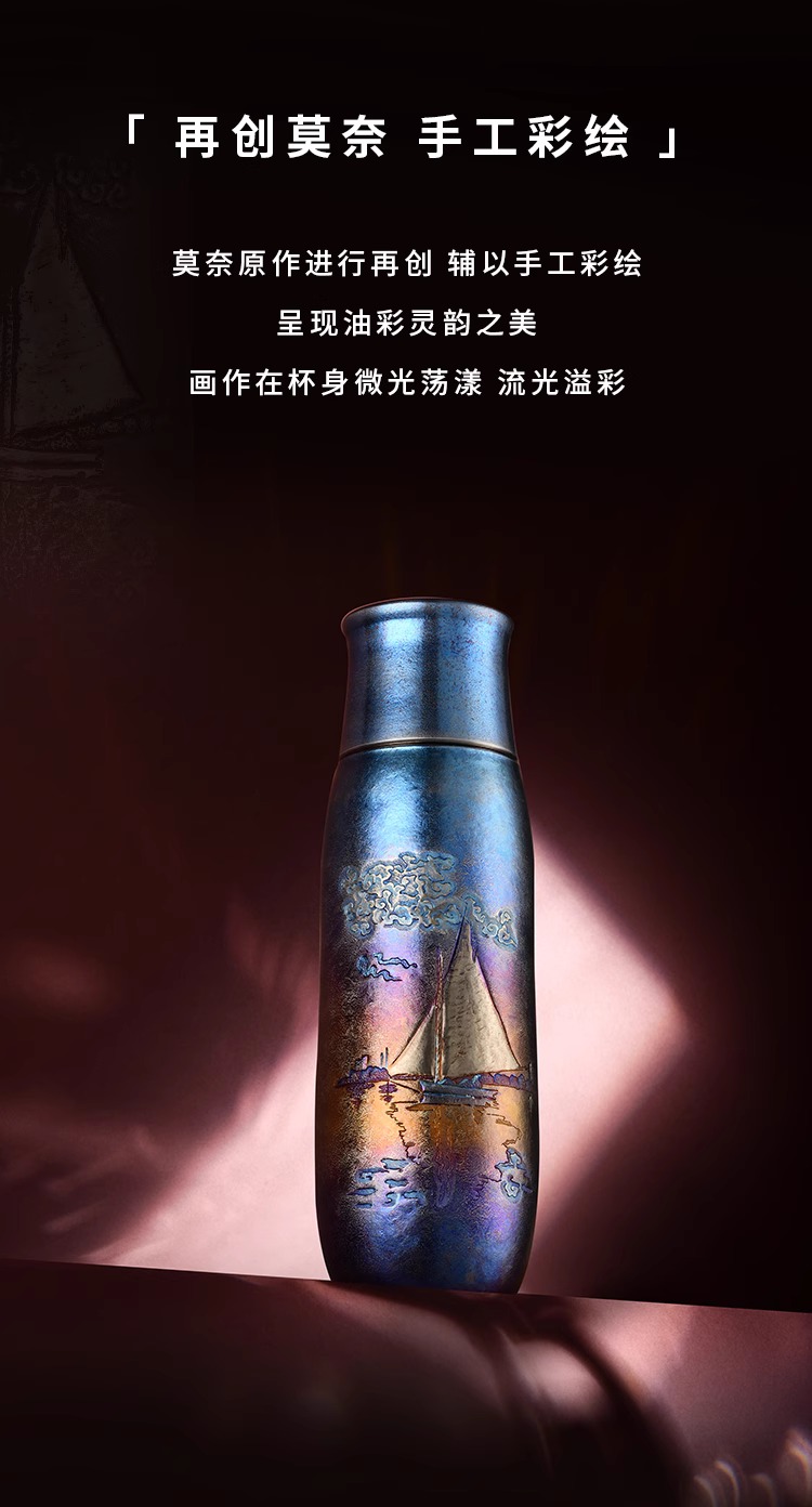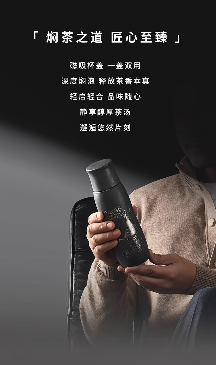 TAIC太可纯钛保温杯送领导轻奢高档水杯手工錾刻钛艺焖茶杯套装390ml