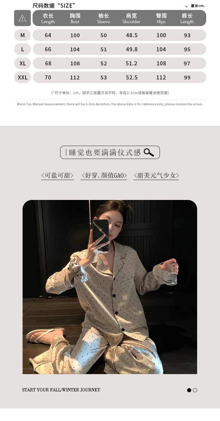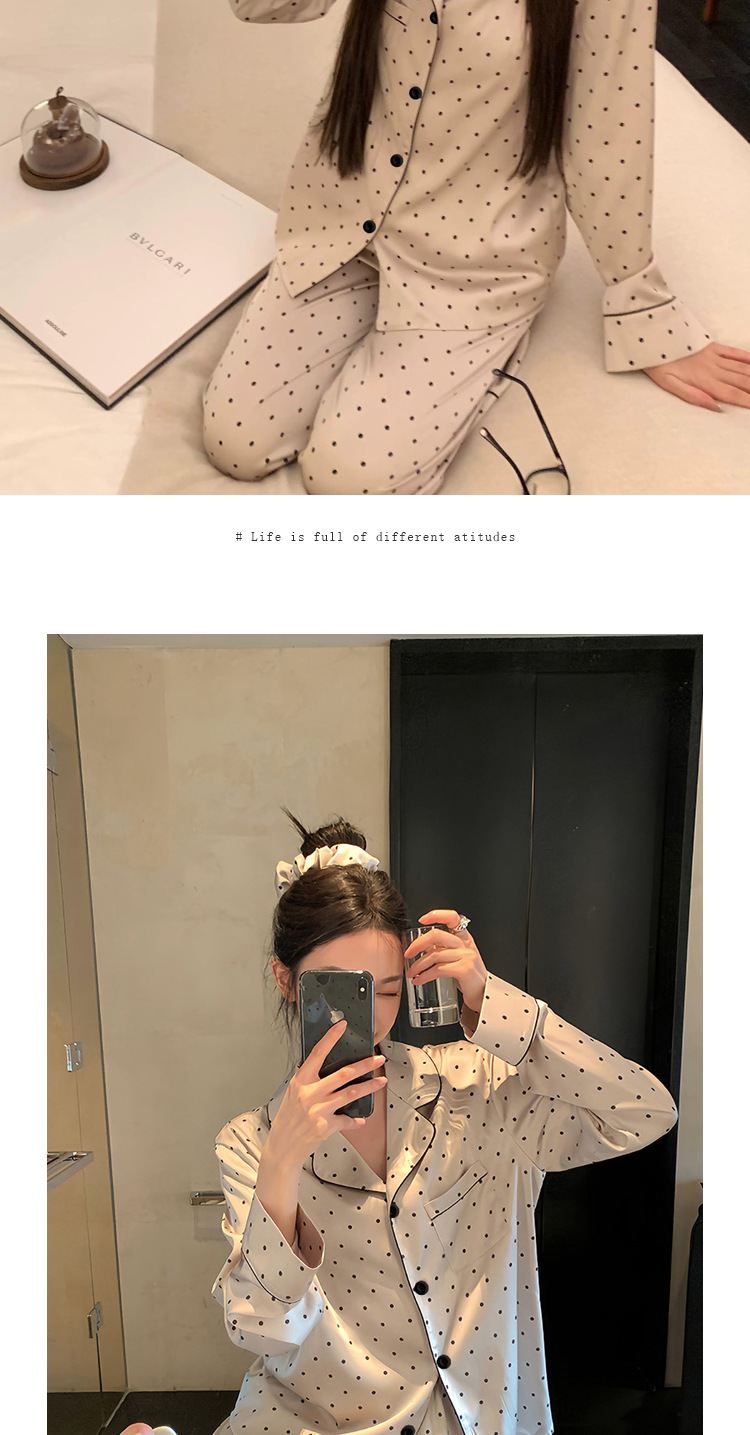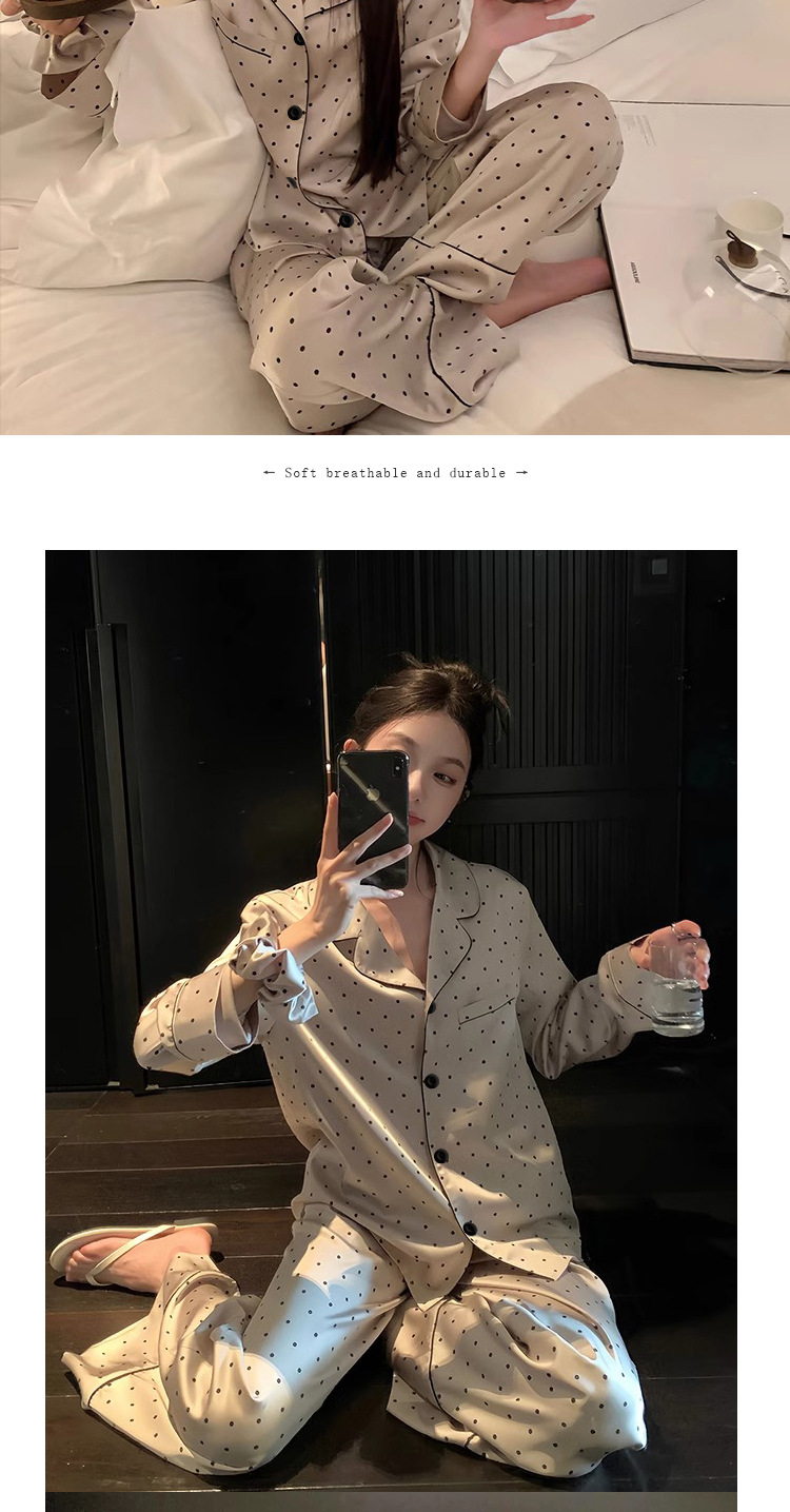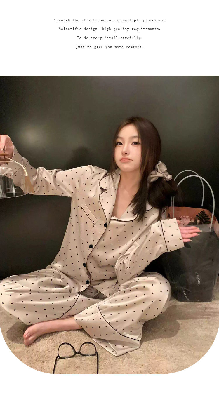 法式减龄睡衣女春秋新款简约波点长袖长裤冰丝家居服时尚套装新款新品