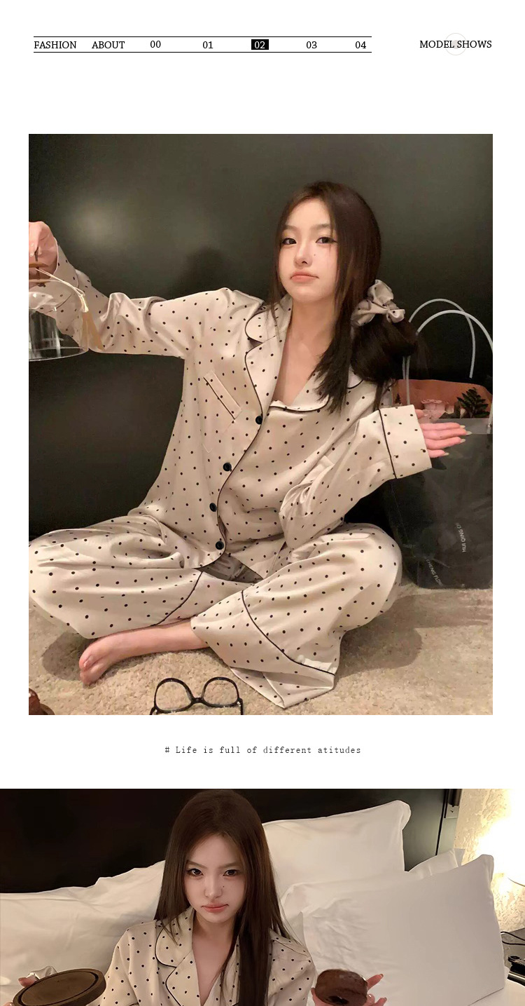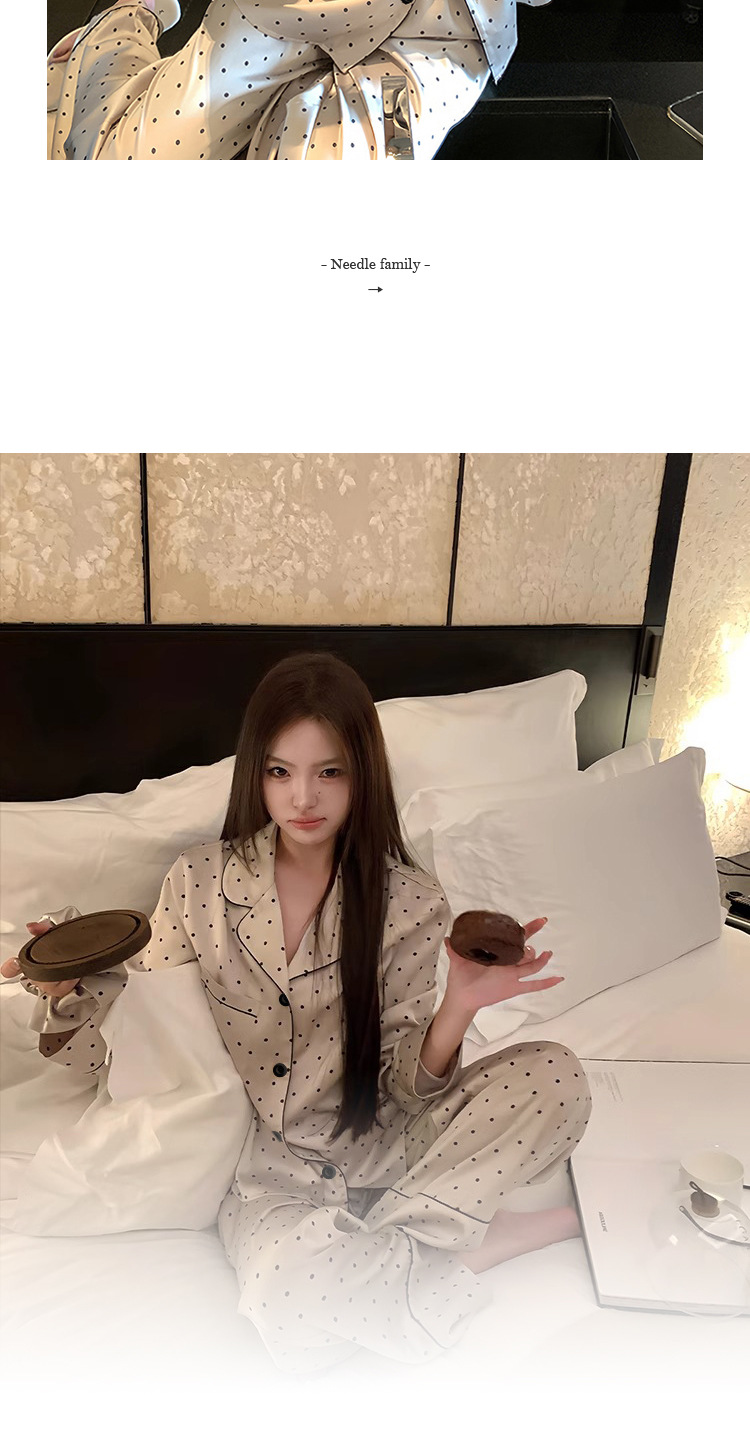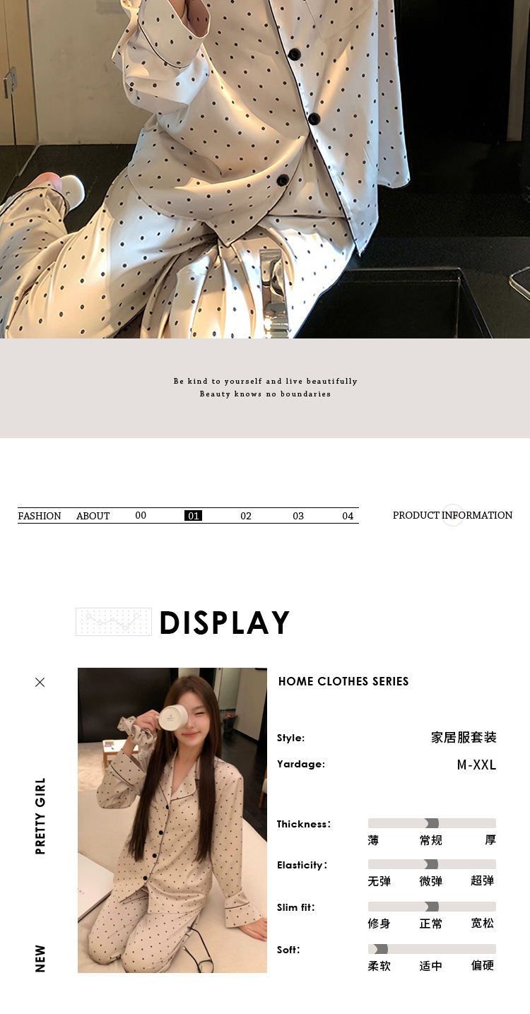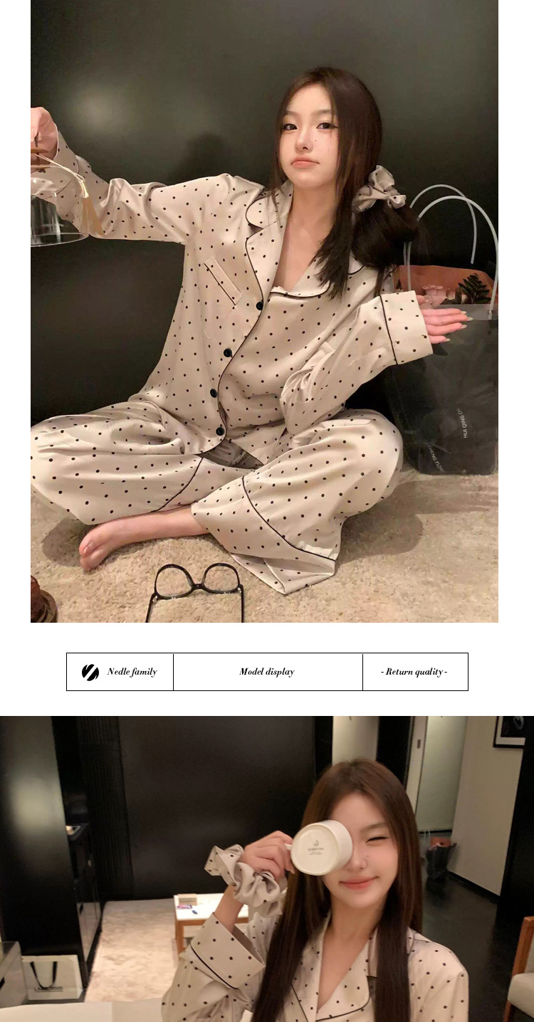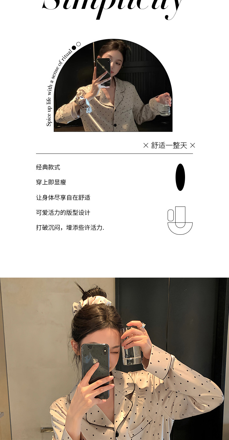 法式减龄睡衣女春秋新款简约波点长袖长裤冰丝家居服时尚套装新款新品