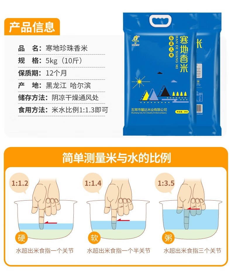 东北大米10斤馨达粳米五常黑土寒地珍珠米大米新米大米5kg