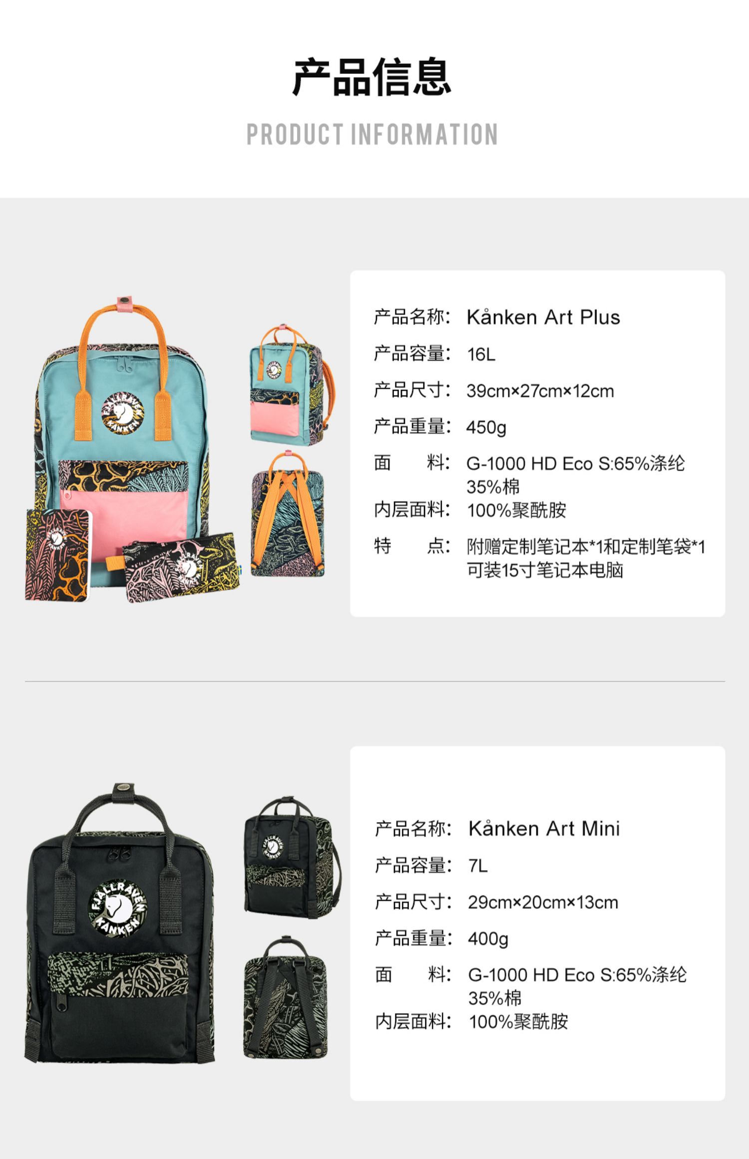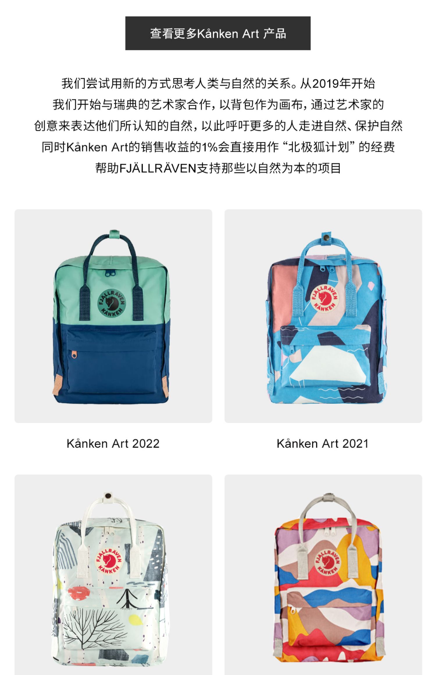 北极狐kanken art 23新品艺术款G-1000户外双肩电脑背包旅行23634