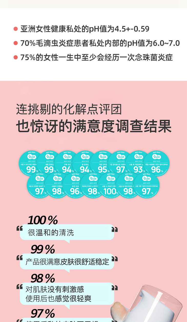 其中特别添加了益生菌发酵溶解物,调节jun群一流大姨妈前后有一些不适感的时候就要每天用它做清洁