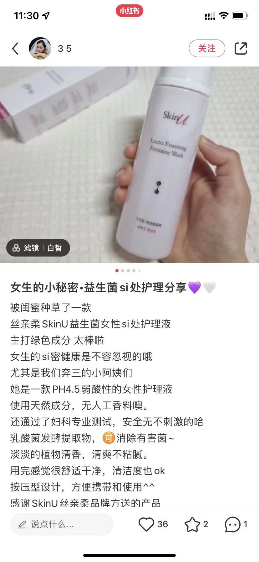 商品名称:爱茉莉SkinU益生菌泡沫温和女性私处护理液140ml
