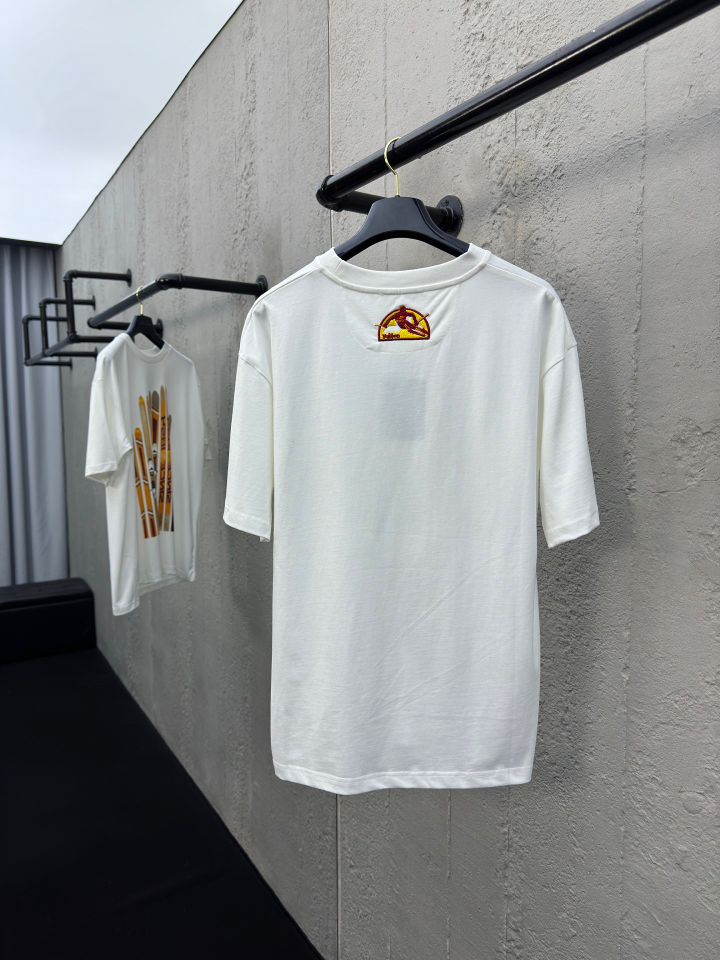 工艺说明:采用了数码技术,喷墨印花可以实现复杂的图案和丰富的色彩,将墨水均匀喷射到织物表面,形成高精度的印花图案。烘干和蒸化可以促使墨水与织物纤维充分结合,提高色彩的牢固度和鲜艳度,高精度打印确保印花图案的清晰度和细节表现。后幅刺绣图案非常精细针法绵密,图案清晰且线条感和立体感强。亚麻材质绣线结合加密处理,绣体具有微妙的哑光视觉质感;男女同款!