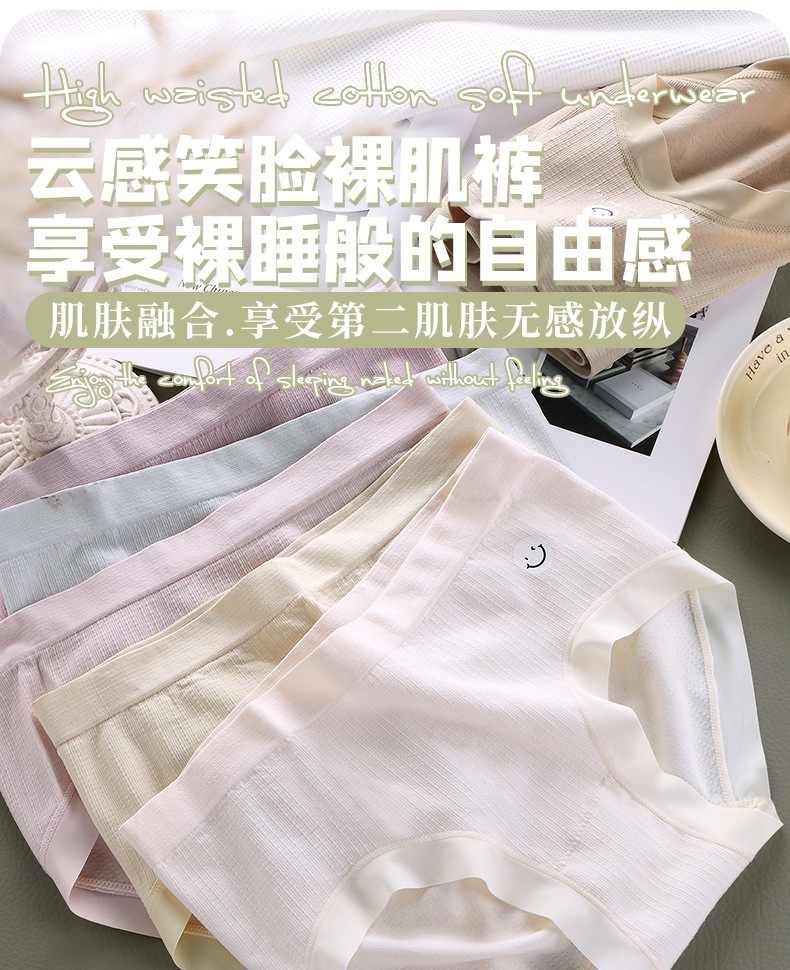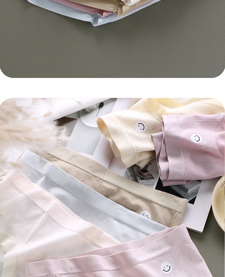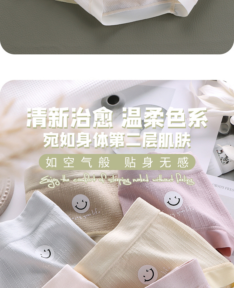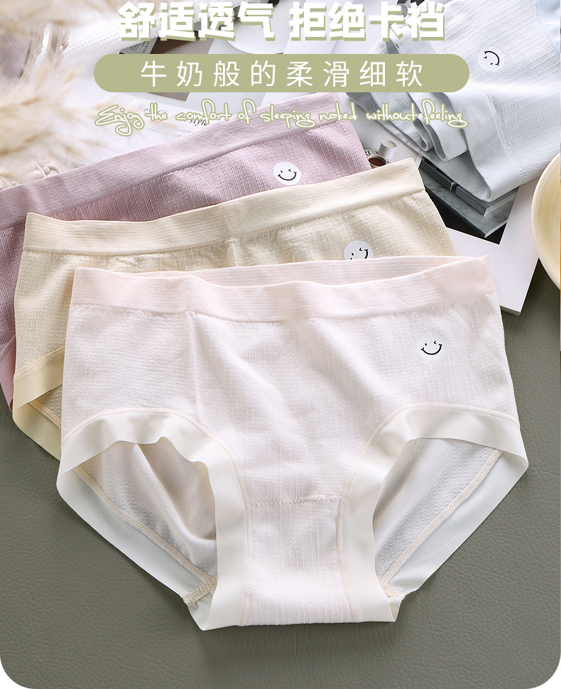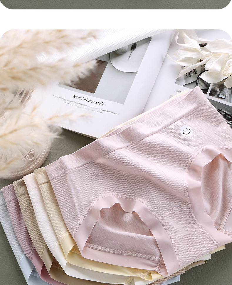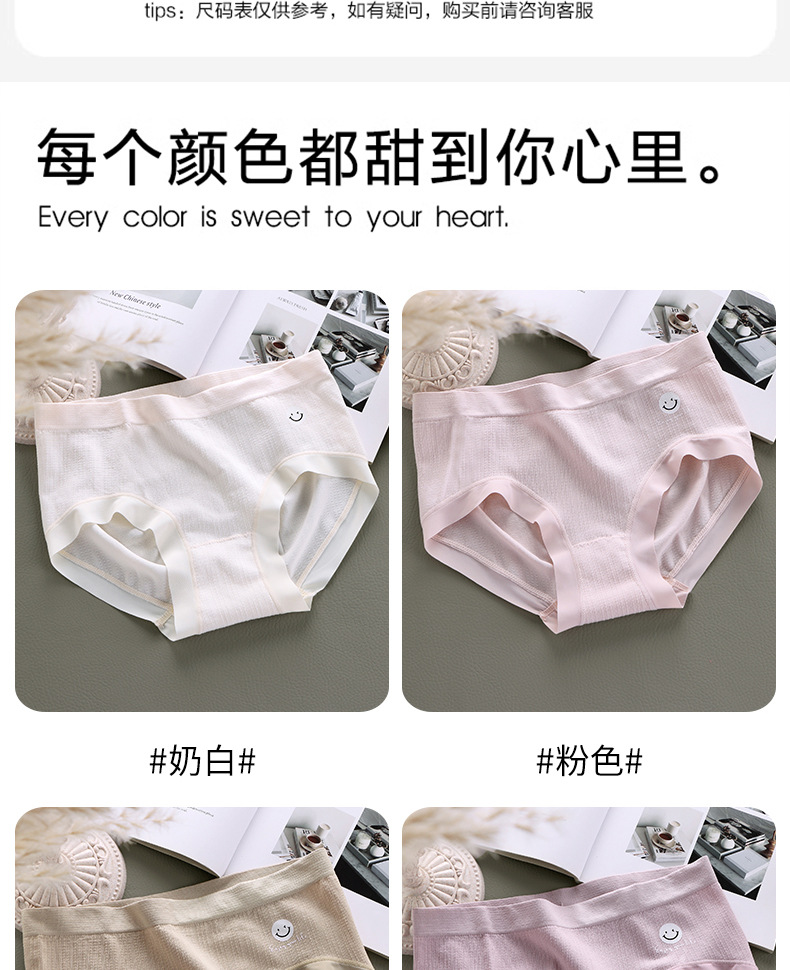 【6条 独立包装】日系冰晶笑脸少女内裤,触发你心中的少女情怀,时尚中腰蚕丝裆三角裤,学生们的最爱!加宽臀部,牢牢包臀,舒适透气,拒绝卡档!