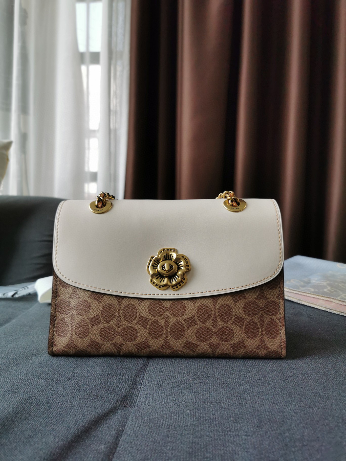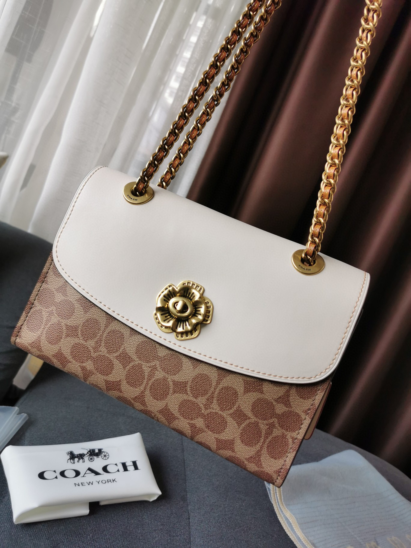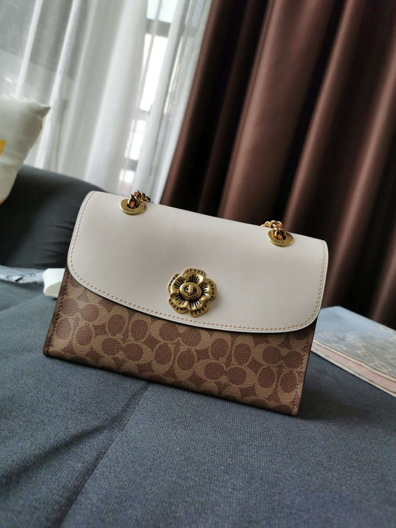 Coach蔻驰山茶花Parker26号-白咖