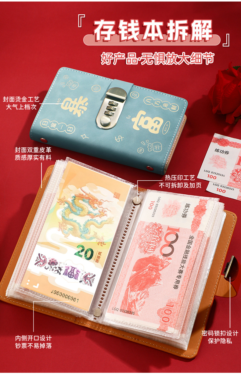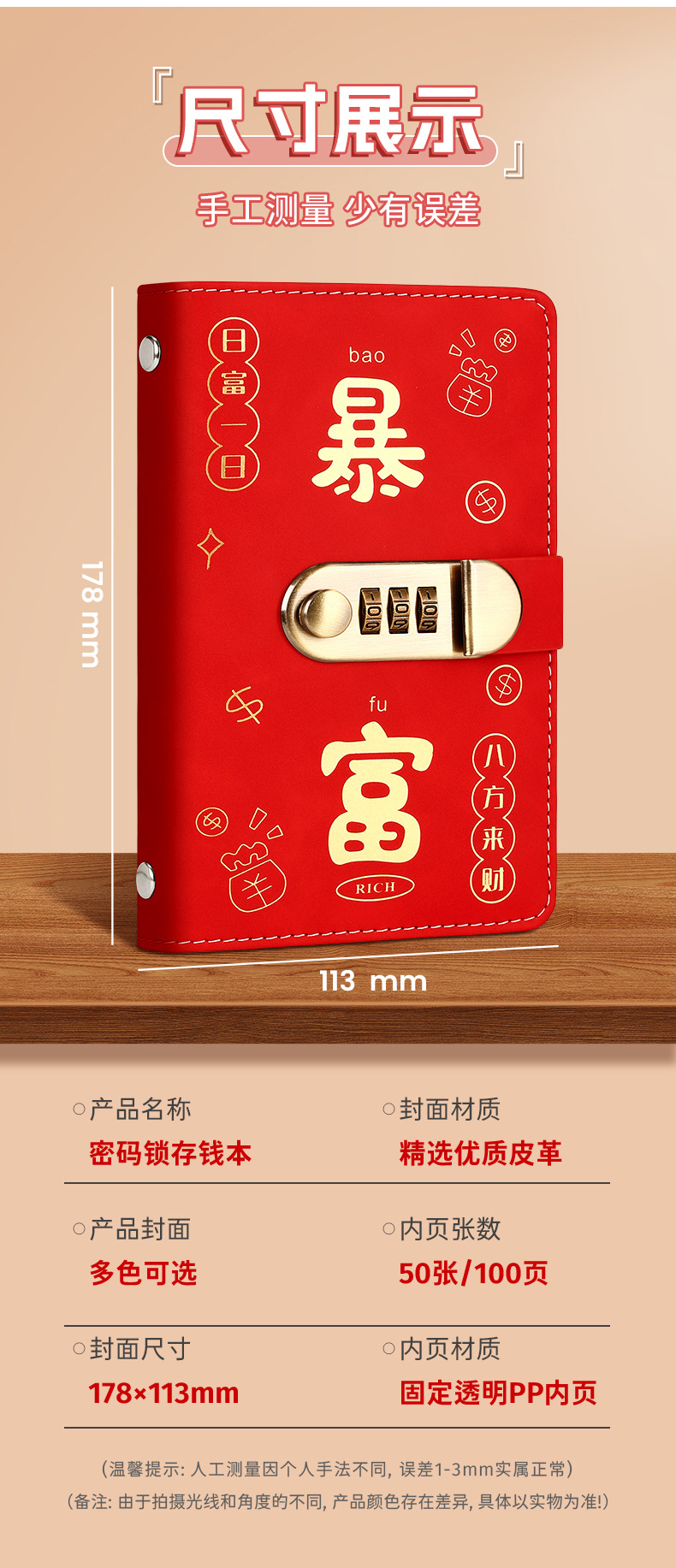 「升级密码锁款!现金收纳册」现金存钱本一万元密码存钱夹钱册大容量居家日用放钱网红新款1w记账本