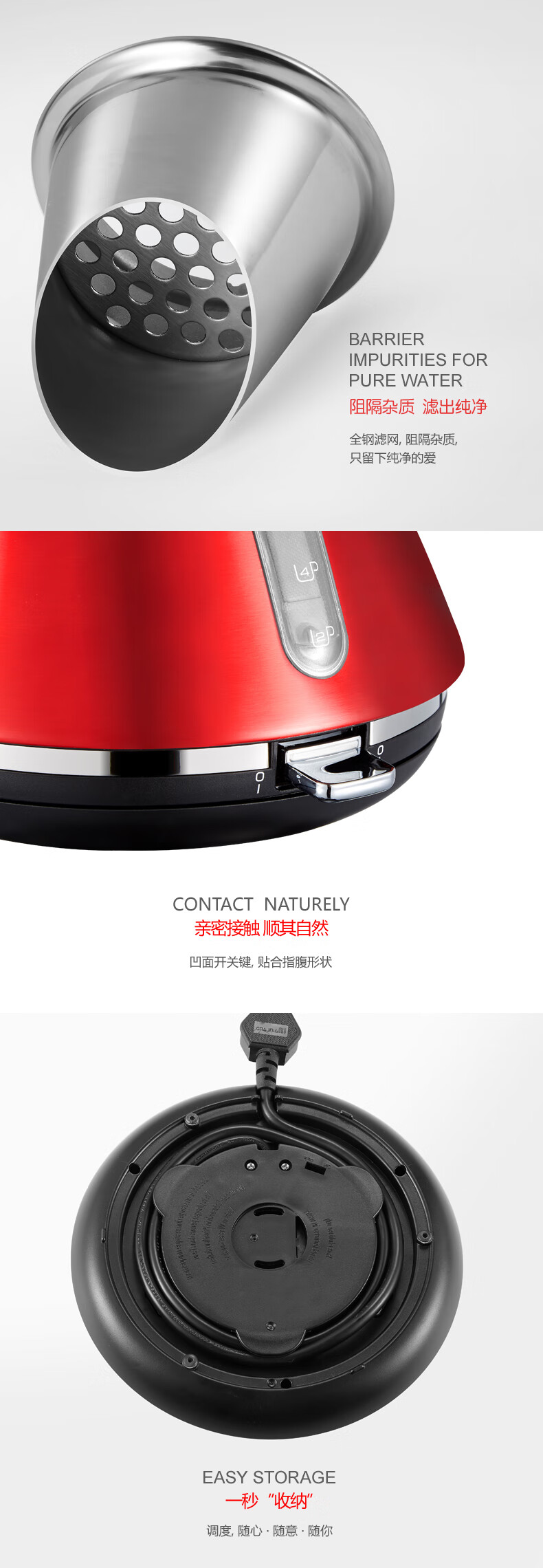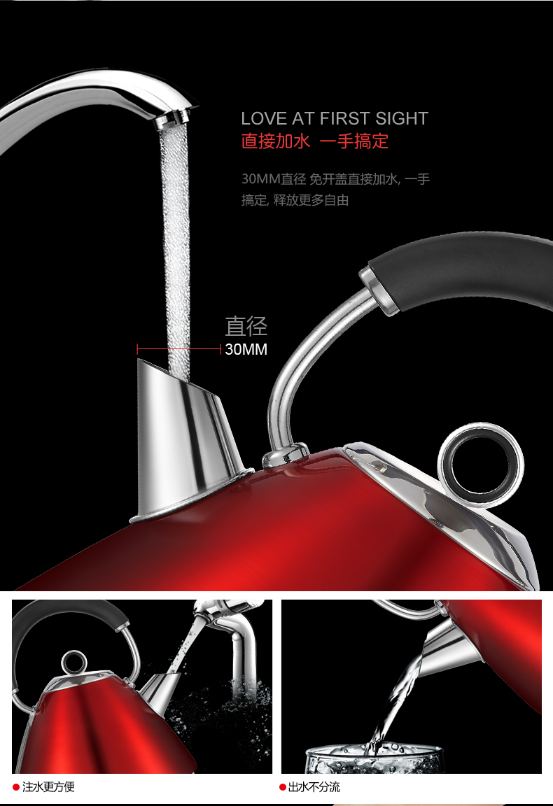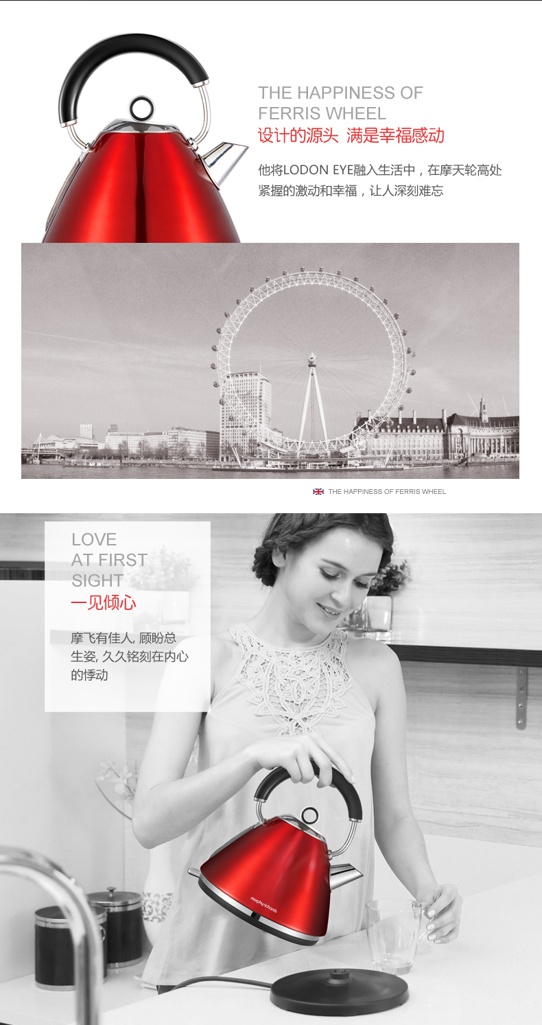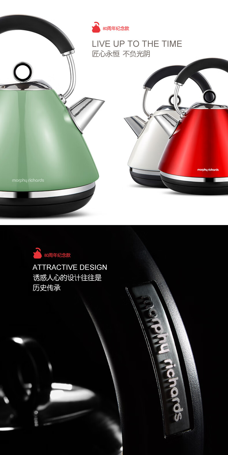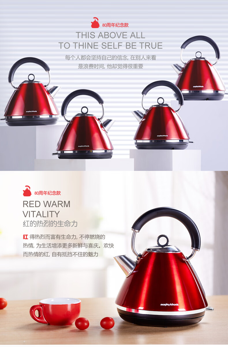 摩飞 电热水壶 进口304不锈钢烧水壶英伦风电水壶 MR7076A 红色 1.5L