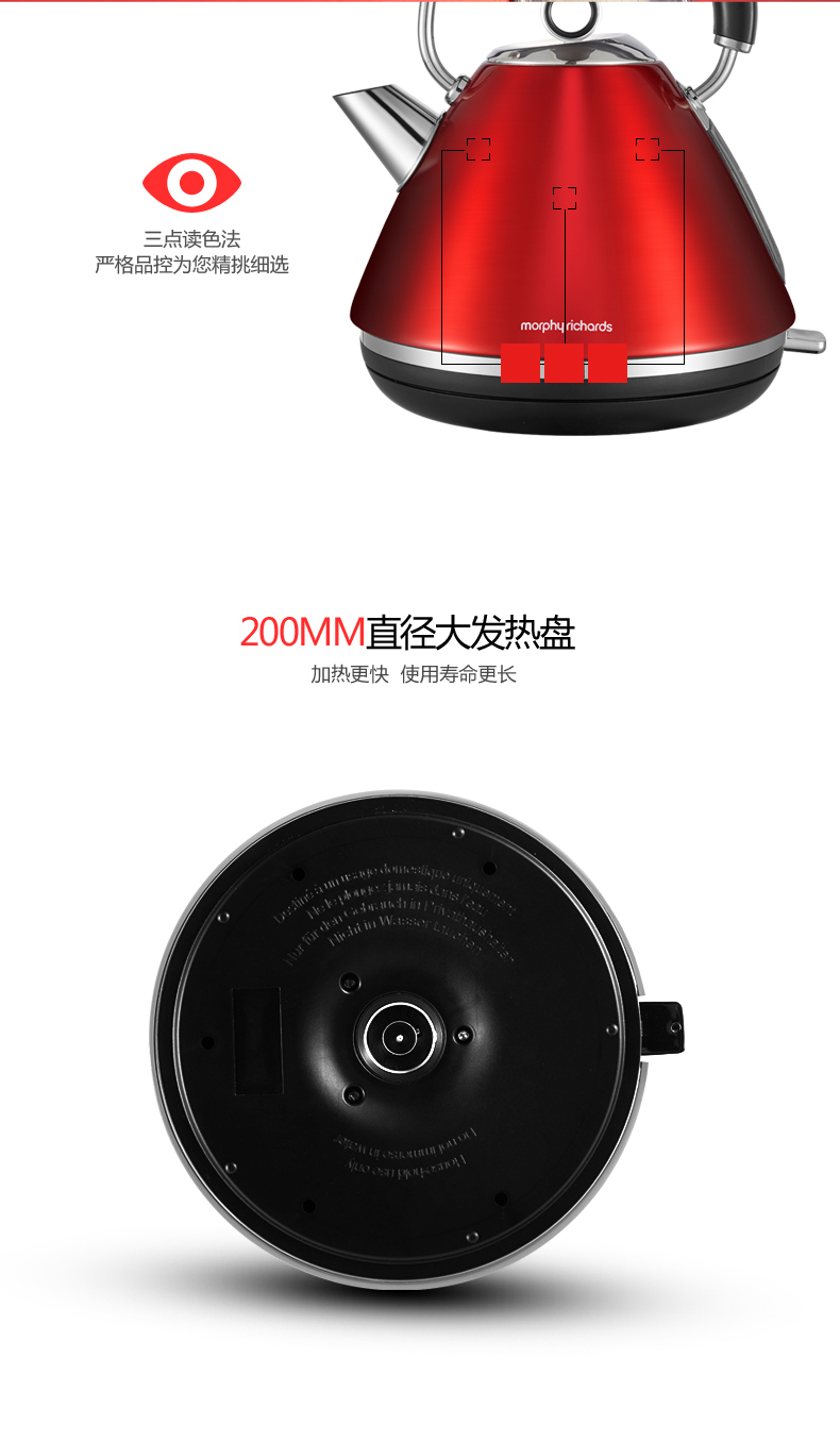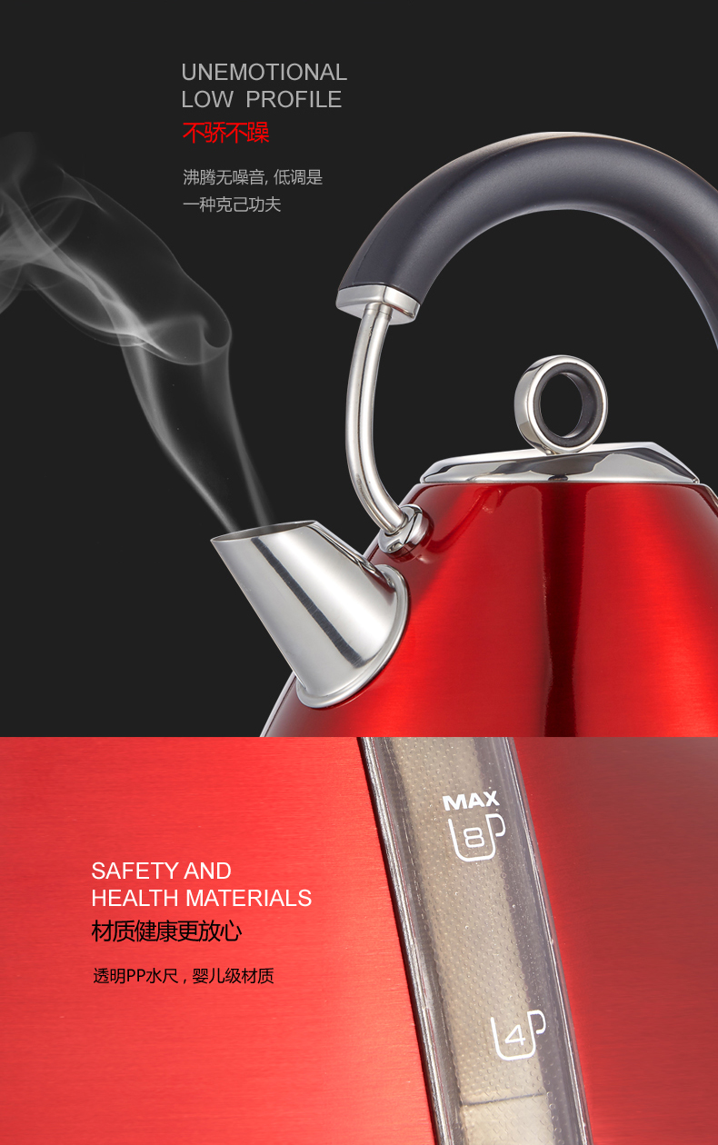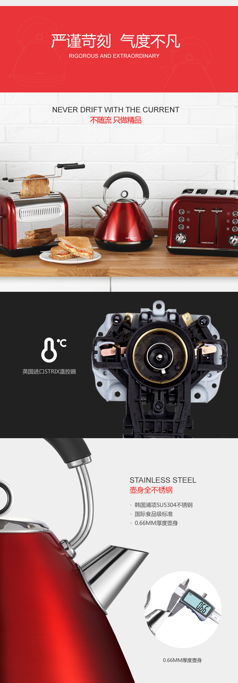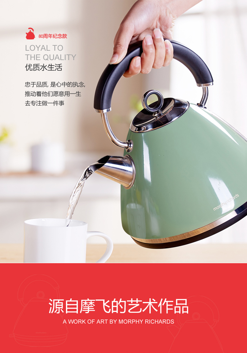 摩飞 电热水壶 进口304不锈钢烧水壶英伦风电水壶 MR7076A 红色 1.5L