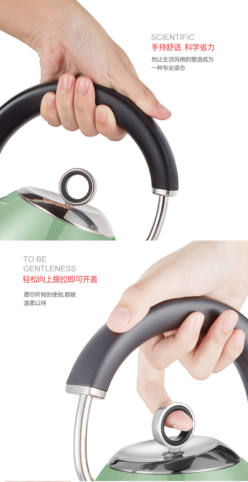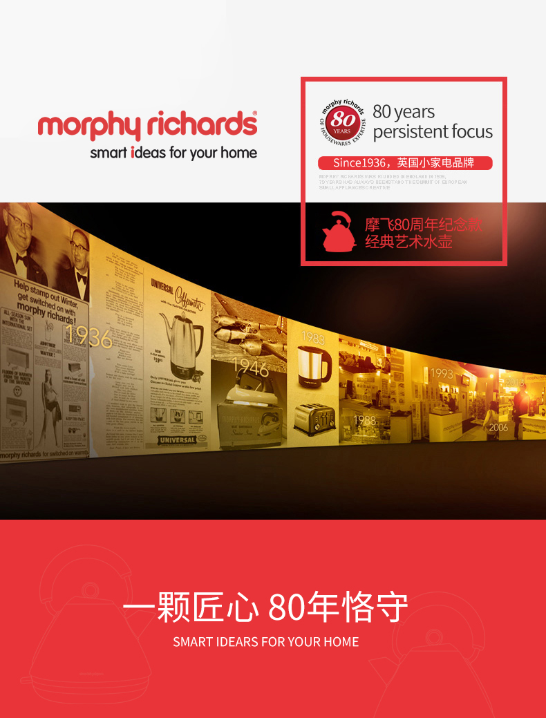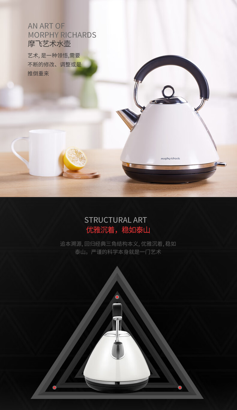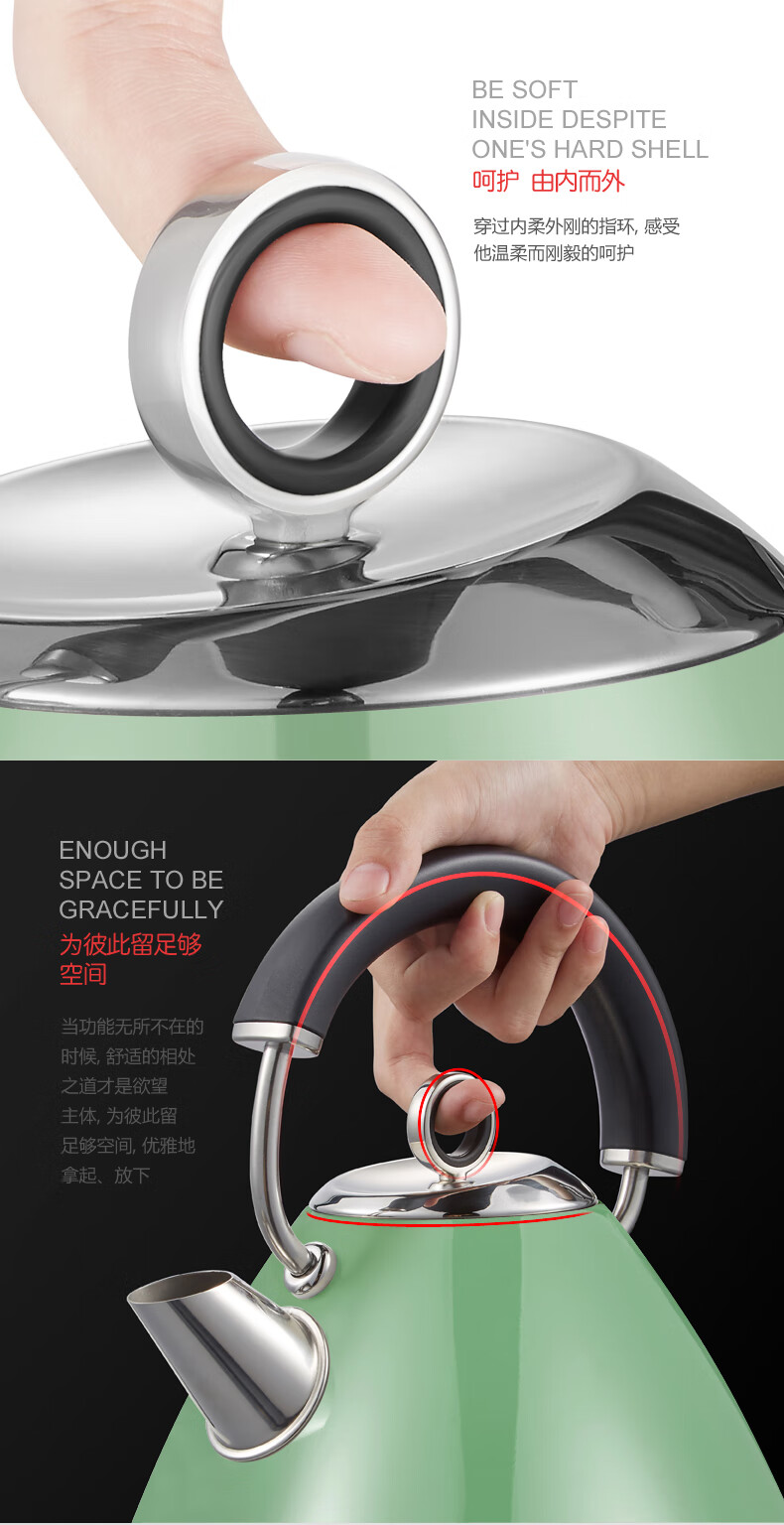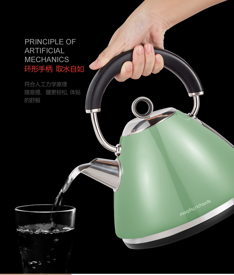 摩飞 电热水壶 进口304不锈钢烧水壶英伦风电水壶 MR7076A 红色 1.5L