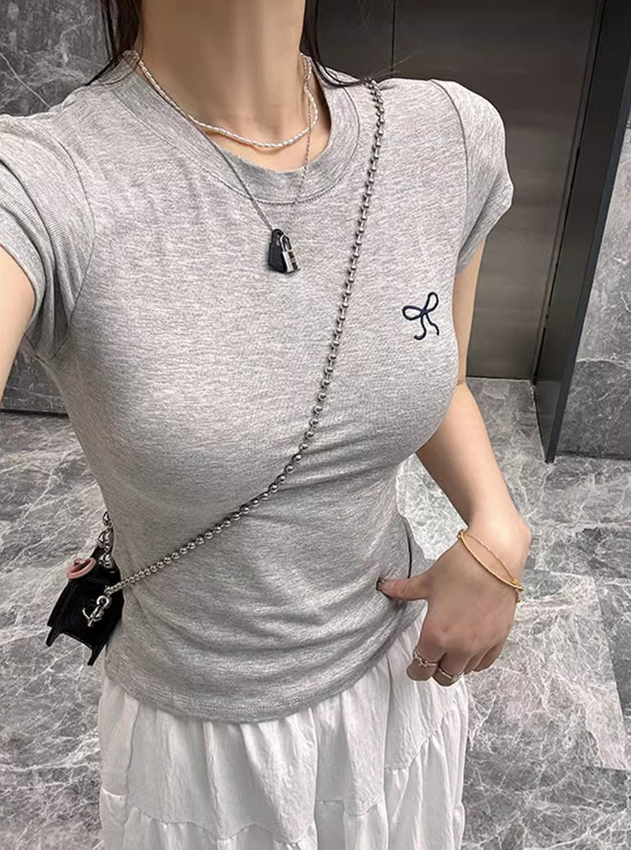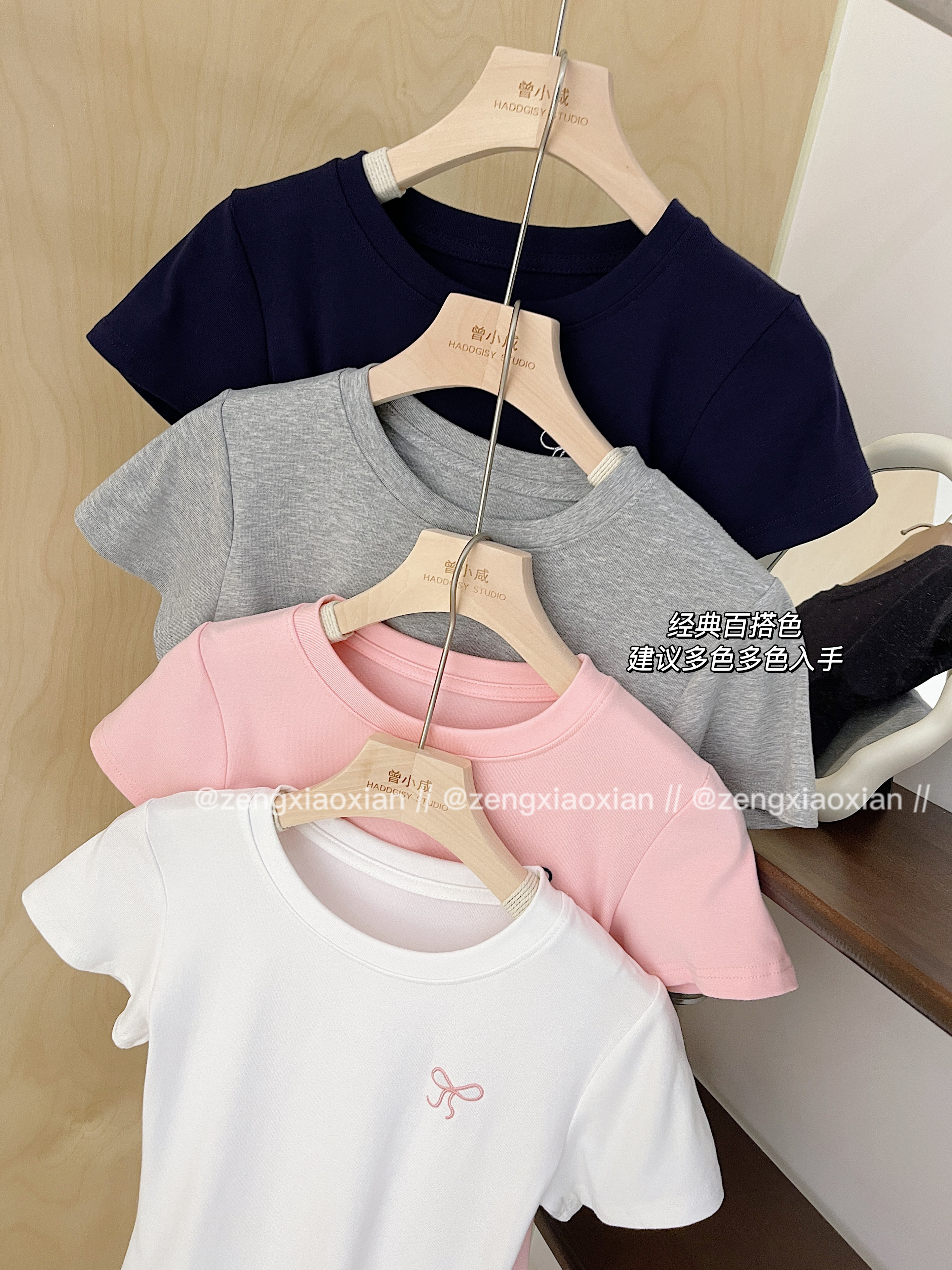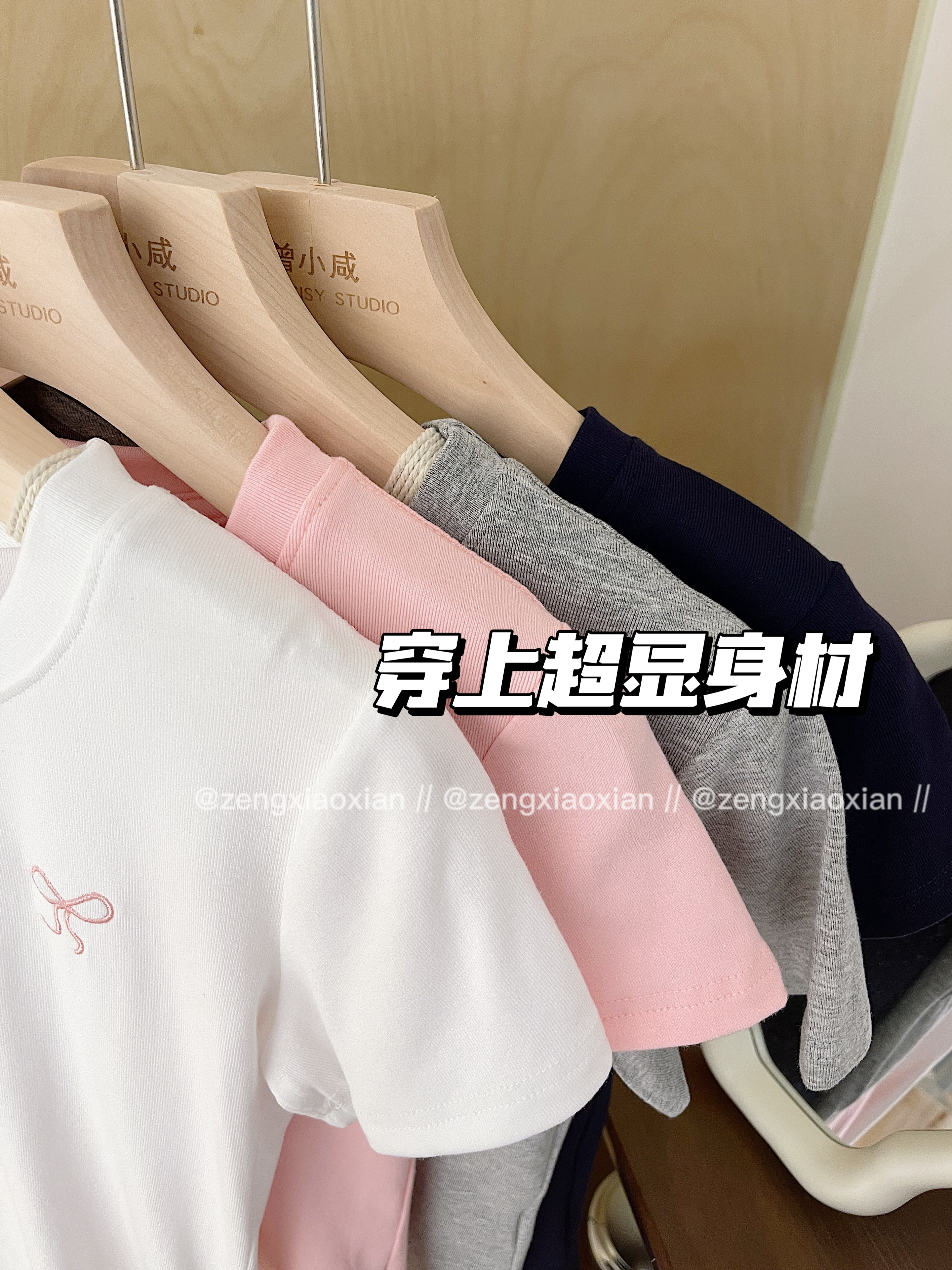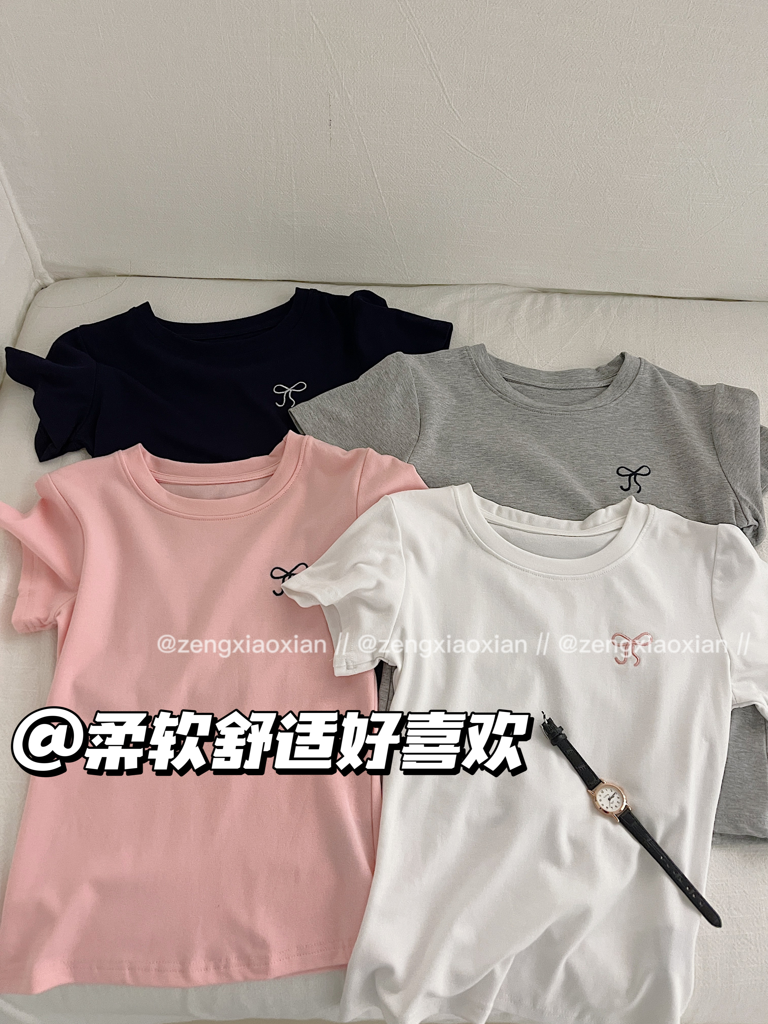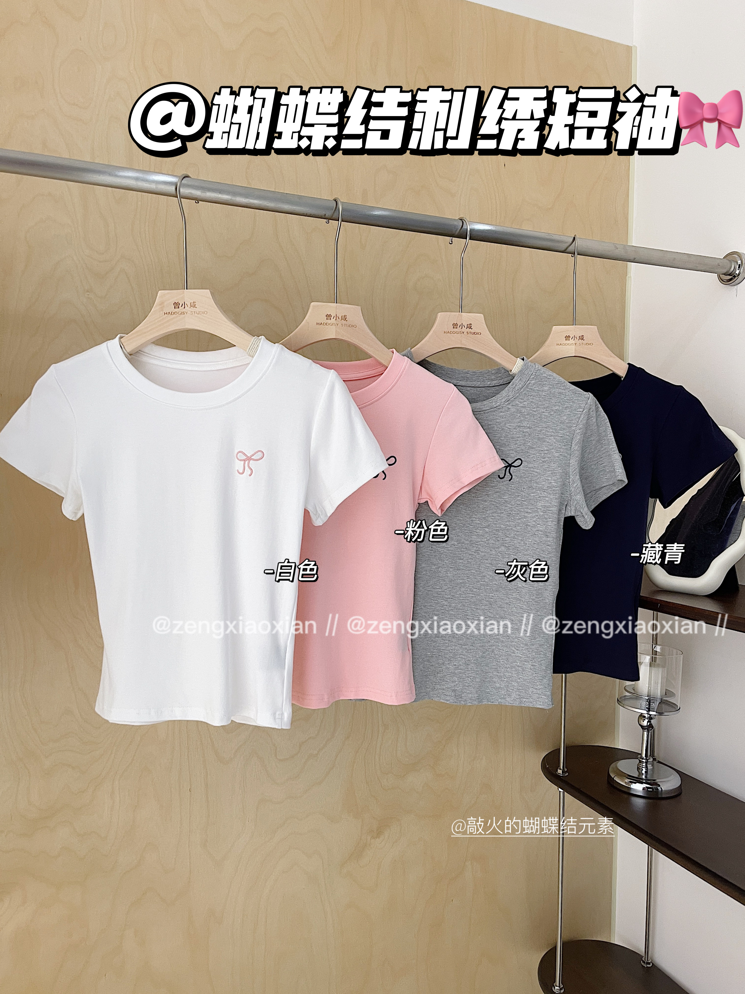 <曾小咸推荐>蝴蝶结刺绣短袖