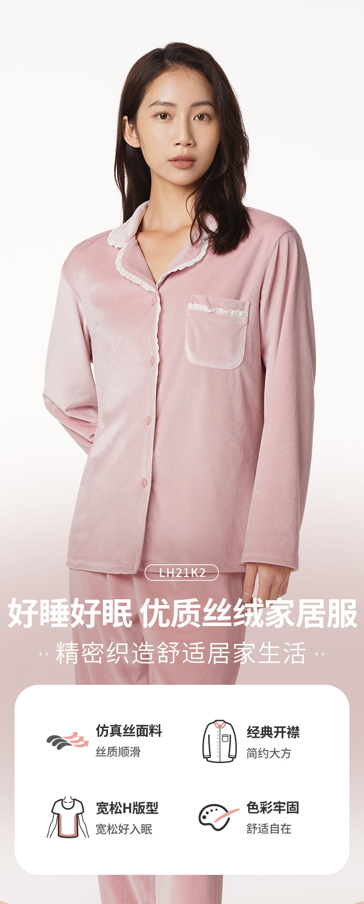 都市丽人生活家居女士丝绒套装丝绒厚家居服长袖睡衣LH21K2