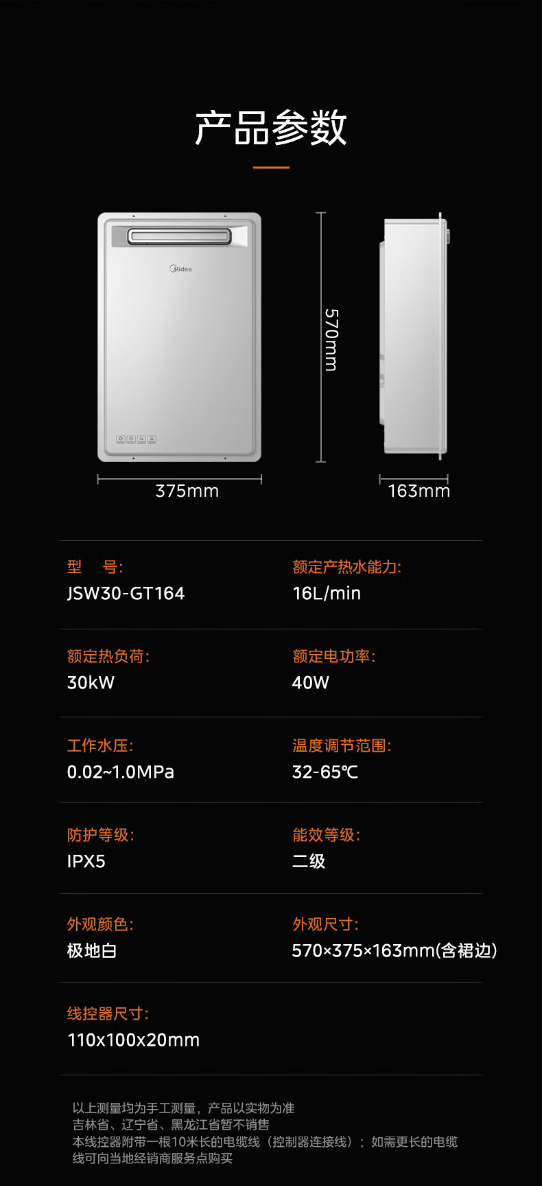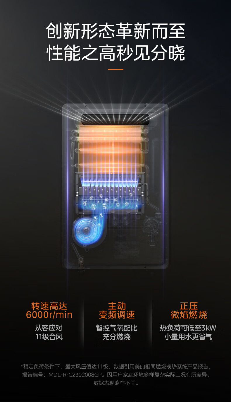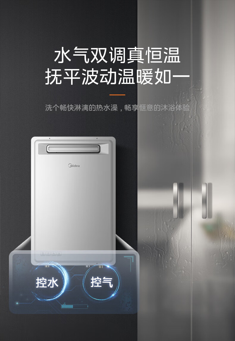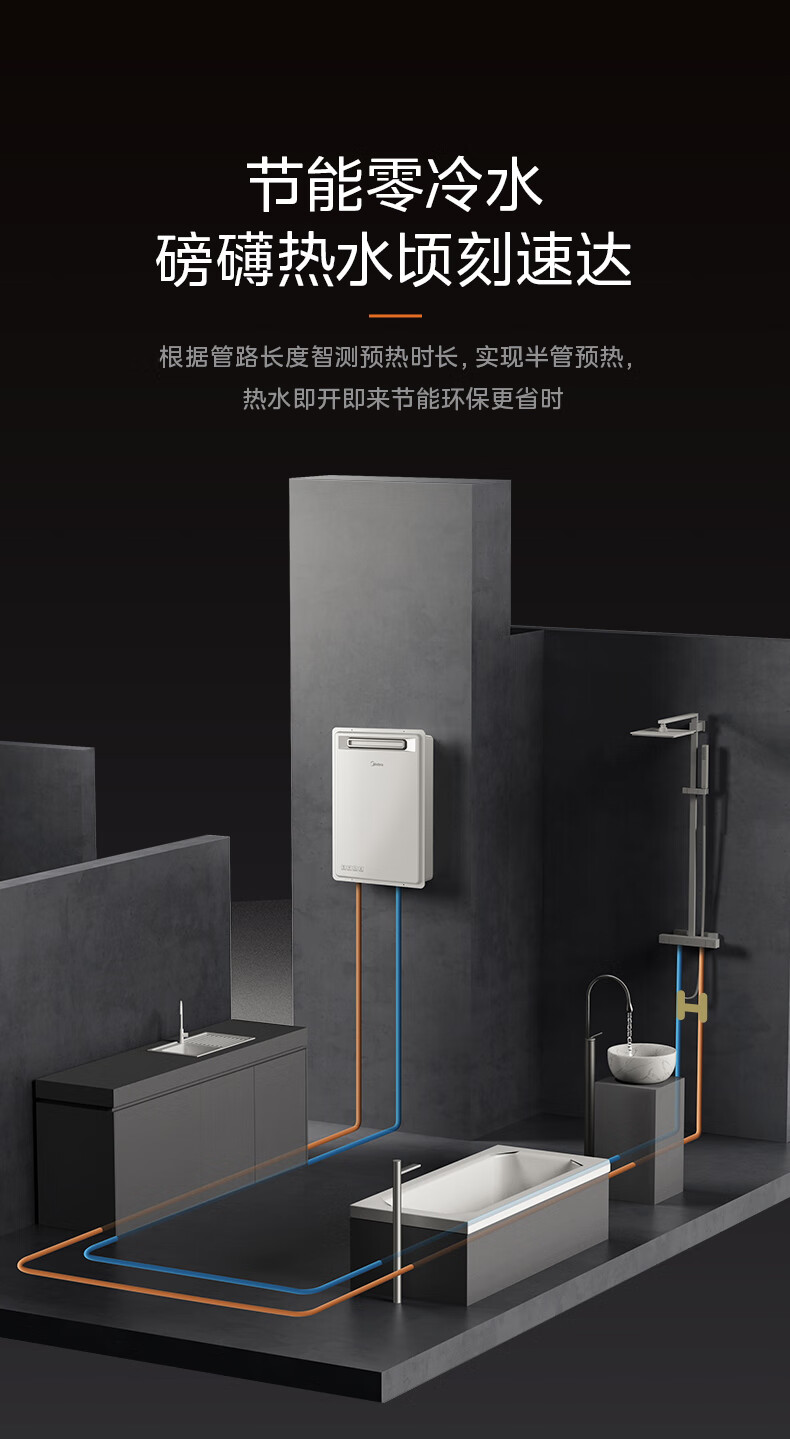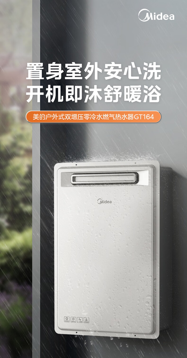 美的(Midea)16升燃气热水器即热强排式双变频恒温双增压节能零冷水下置风机家用洗澡速热 JSW30-GT164