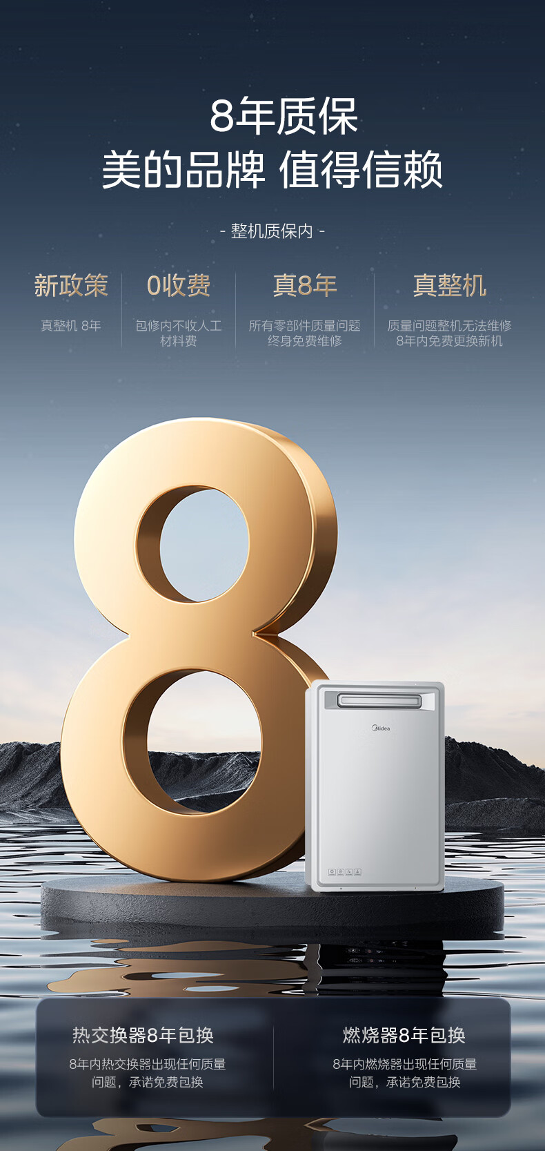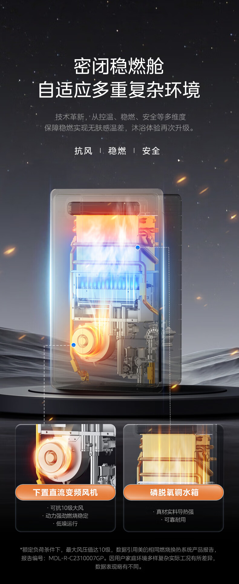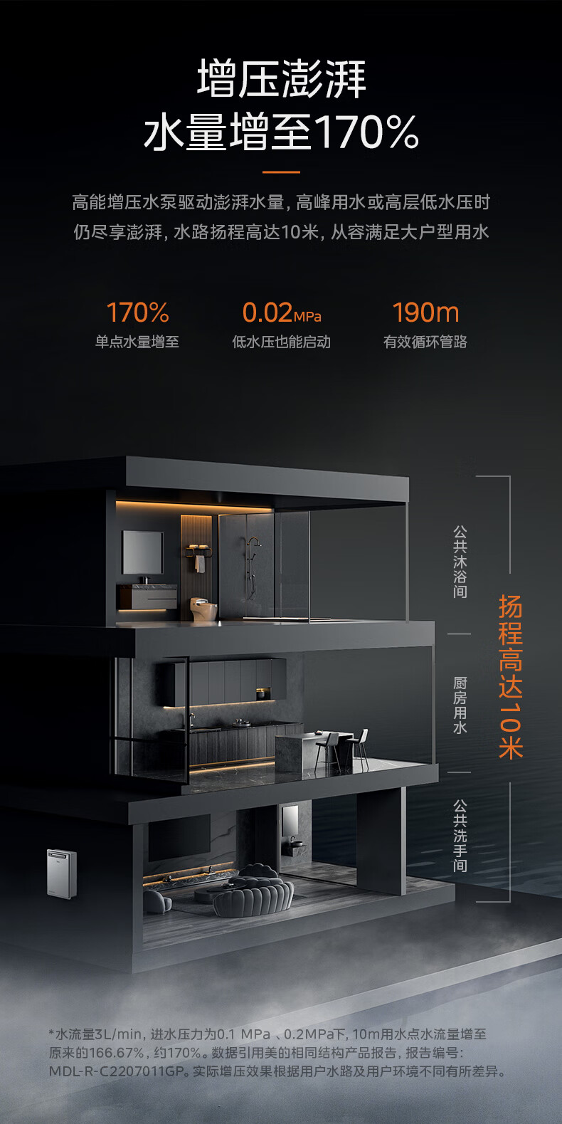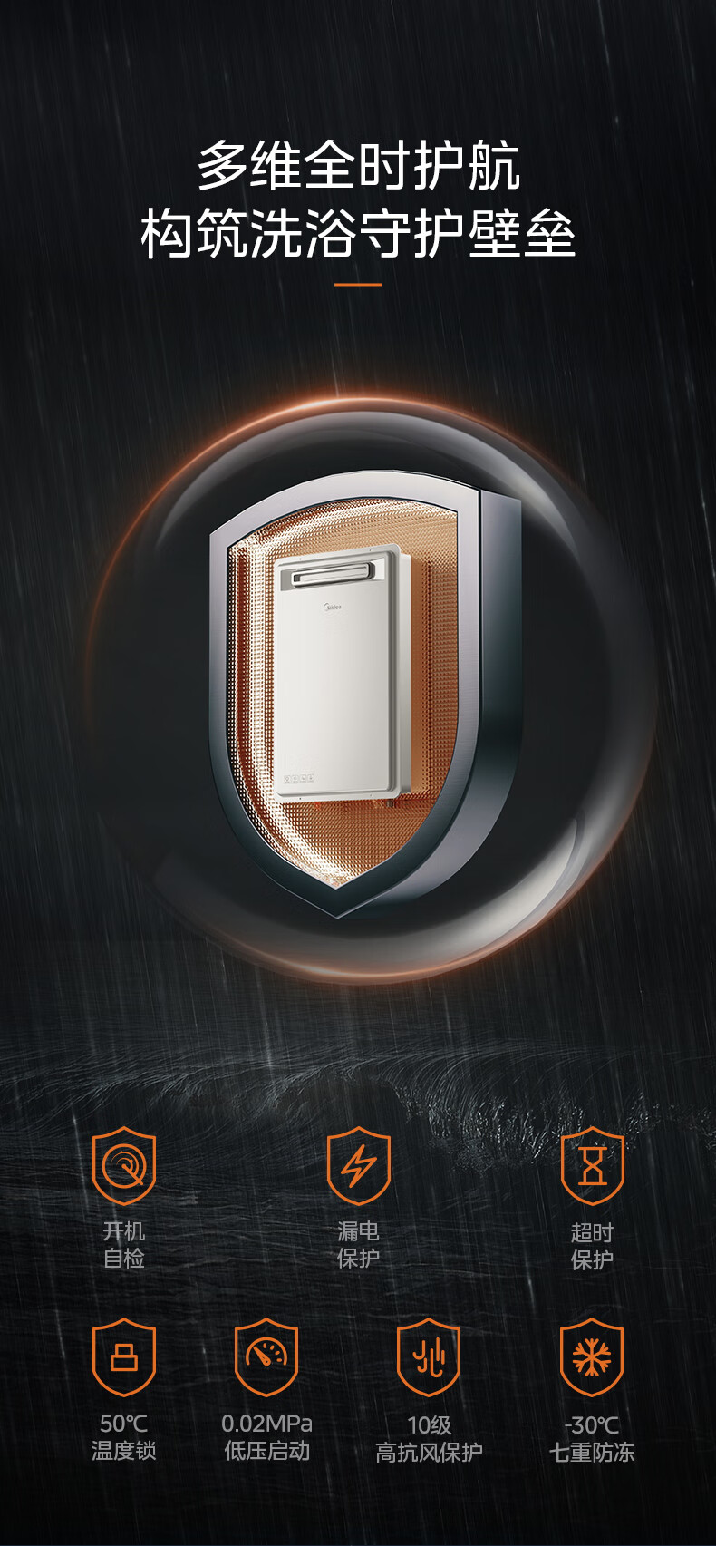 美的(Midea)16升燃气热水器即热强排式双变频恒温双增压节能零冷水下置风机家用洗澡速热 JSW30-GT164