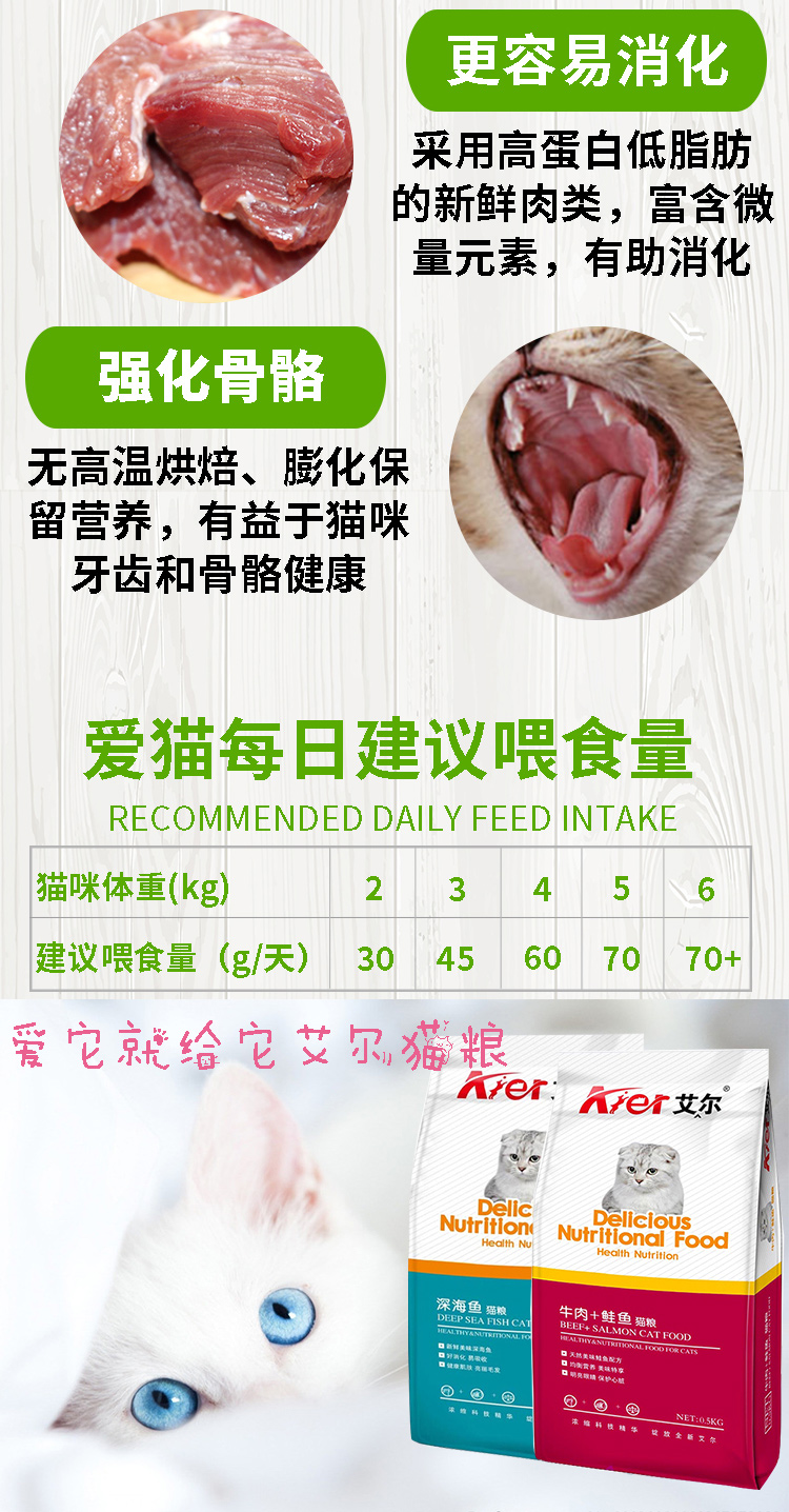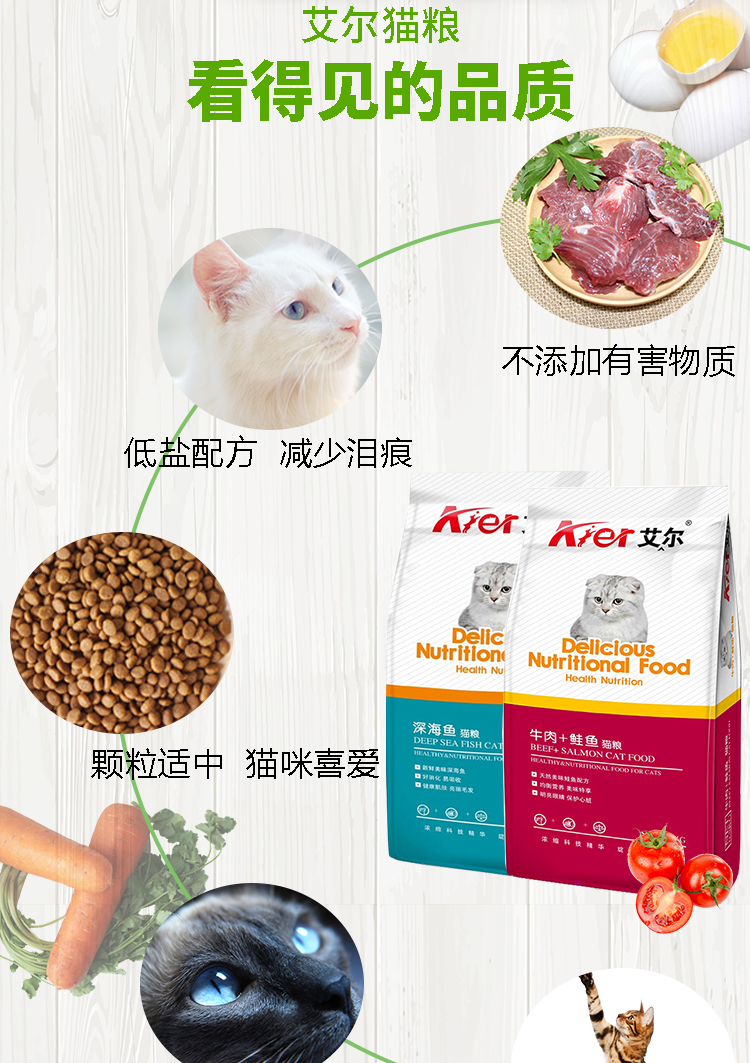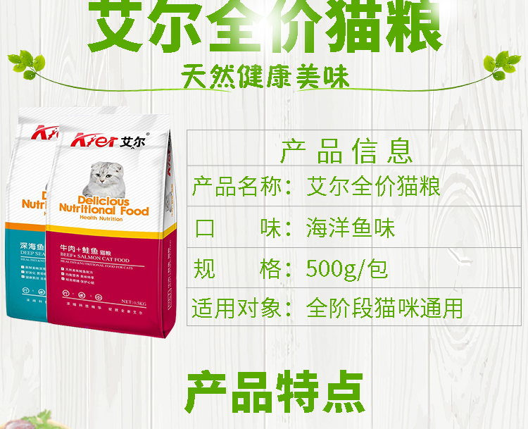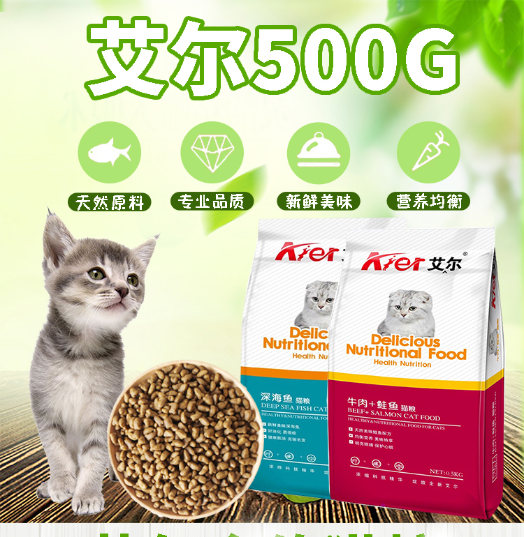 艾尔牛肉鲑鱼全价猫粮 成猫幼猫通用型美短加菲英短猫粮1斤装 500g