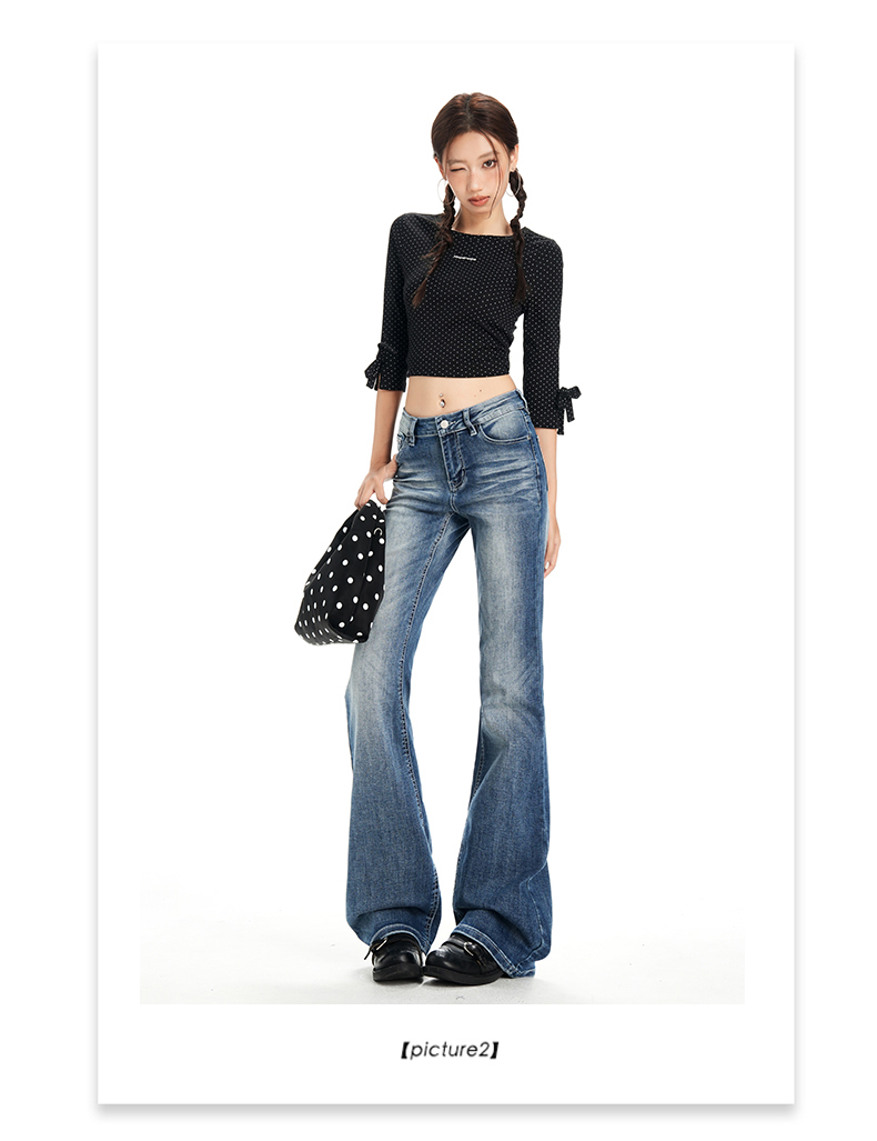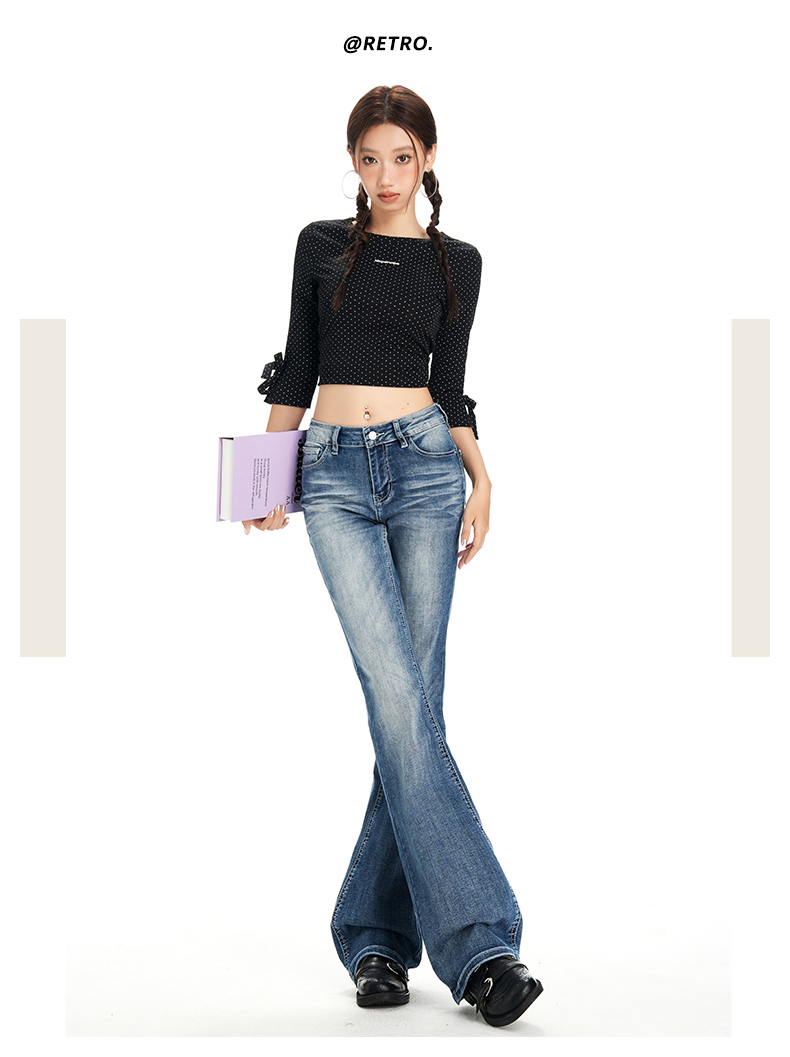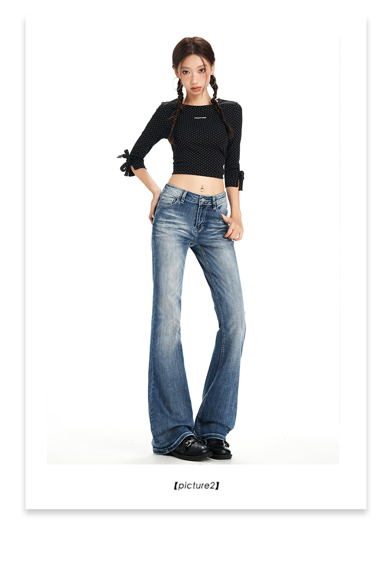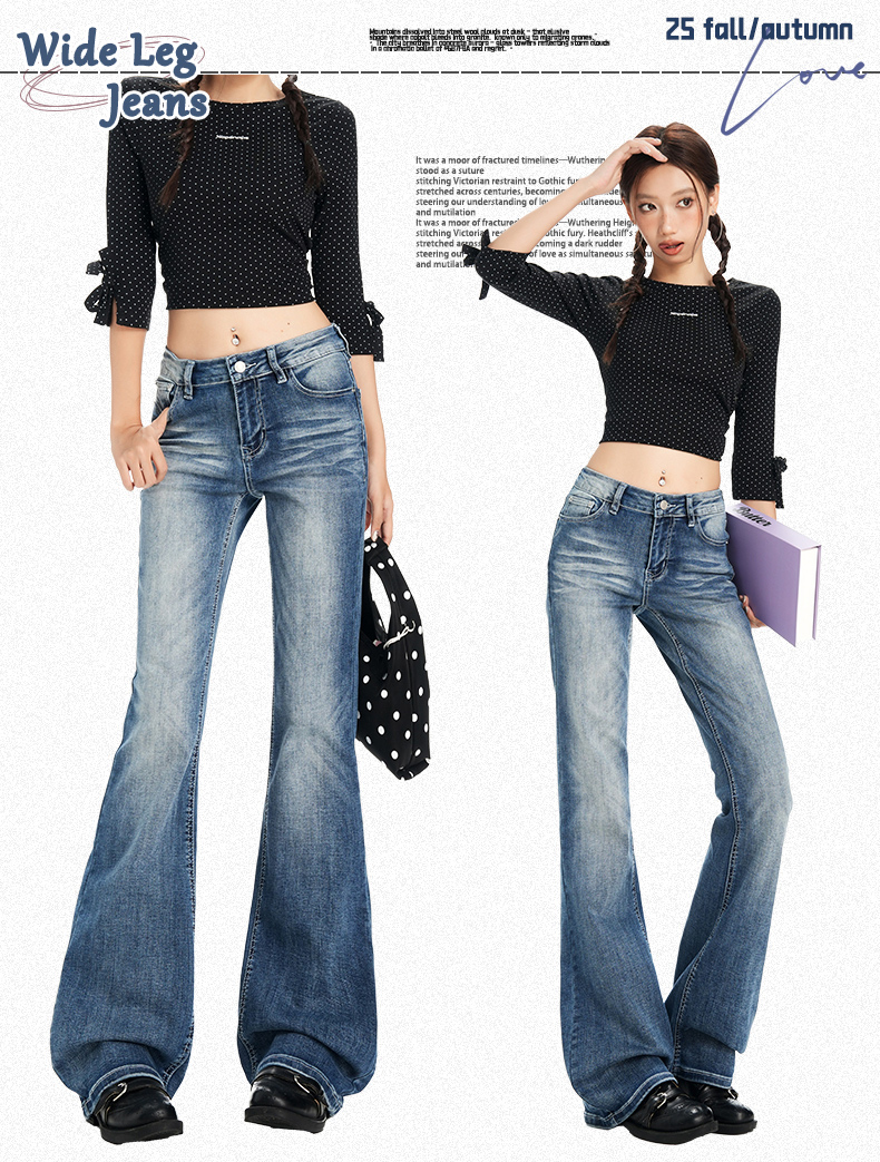 【加绒加厚】罗蒙秋冬款加绒微喇牛仔裤女士高街美式风潮搭休闲百搭长裤子
