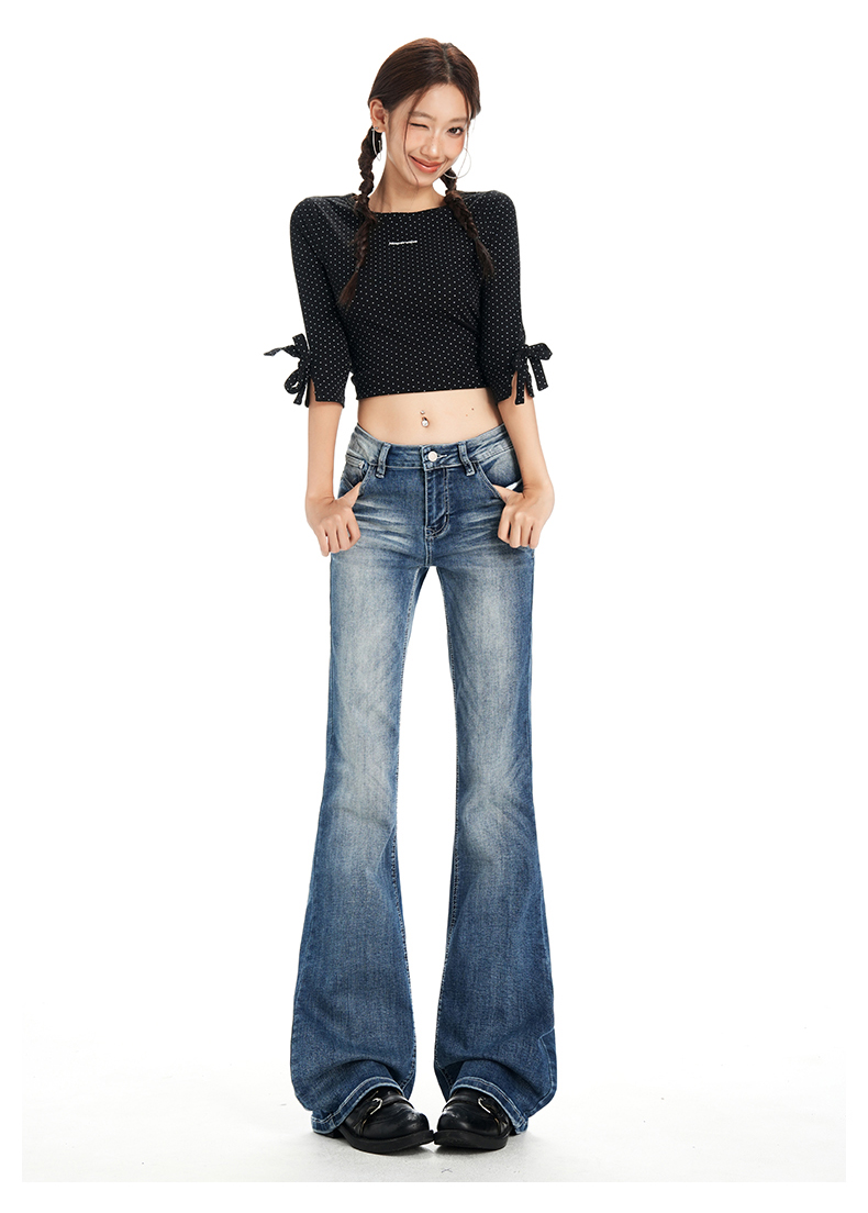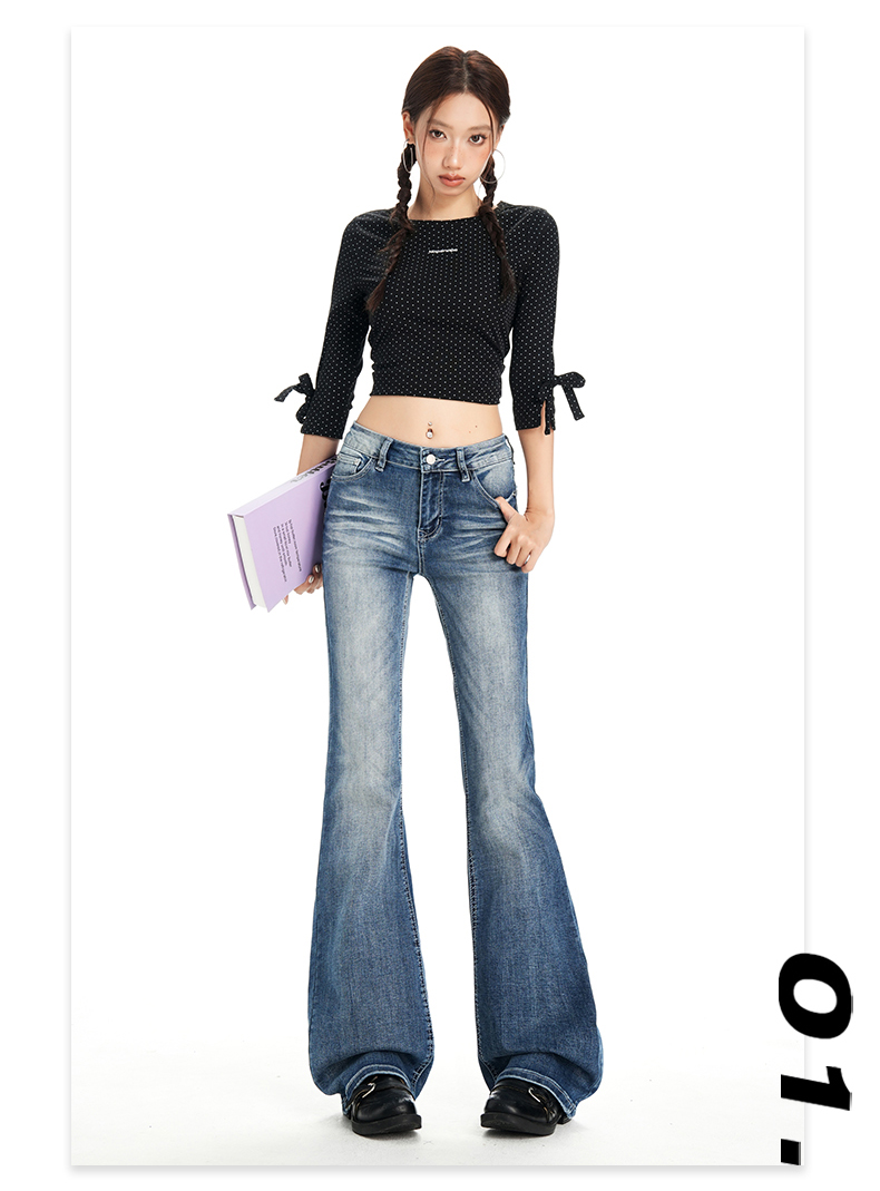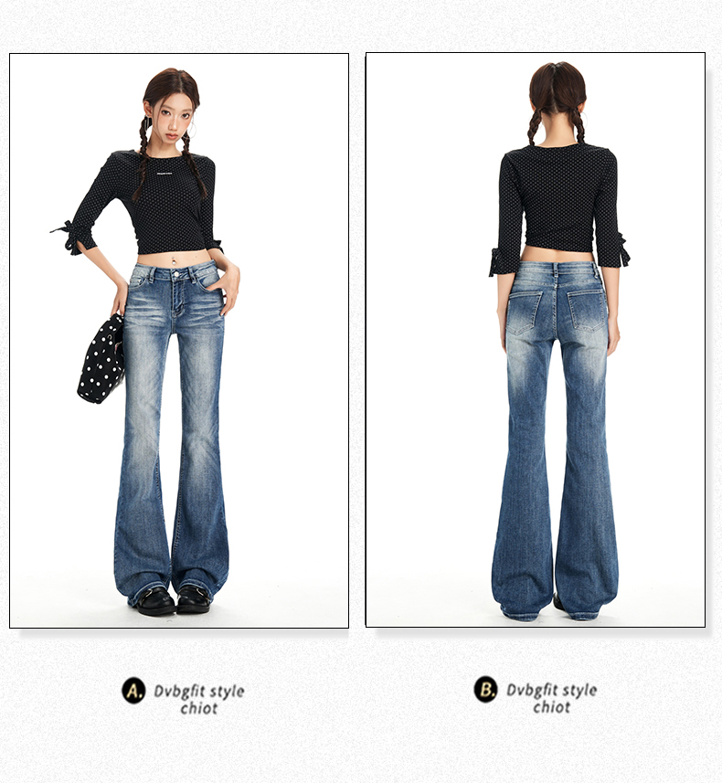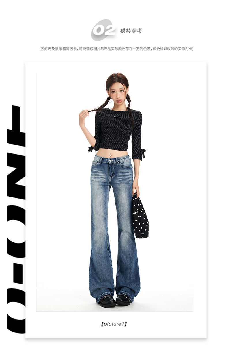 【加绒加厚】罗蒙秋冬款加绒微喇牛仔裤女士高街美式风潮搭休闲百搭长裤子