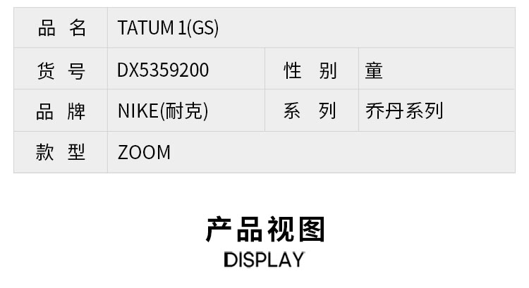 nike耐克大童女JORDAN TATUM 1运动实战训练篮球鞋