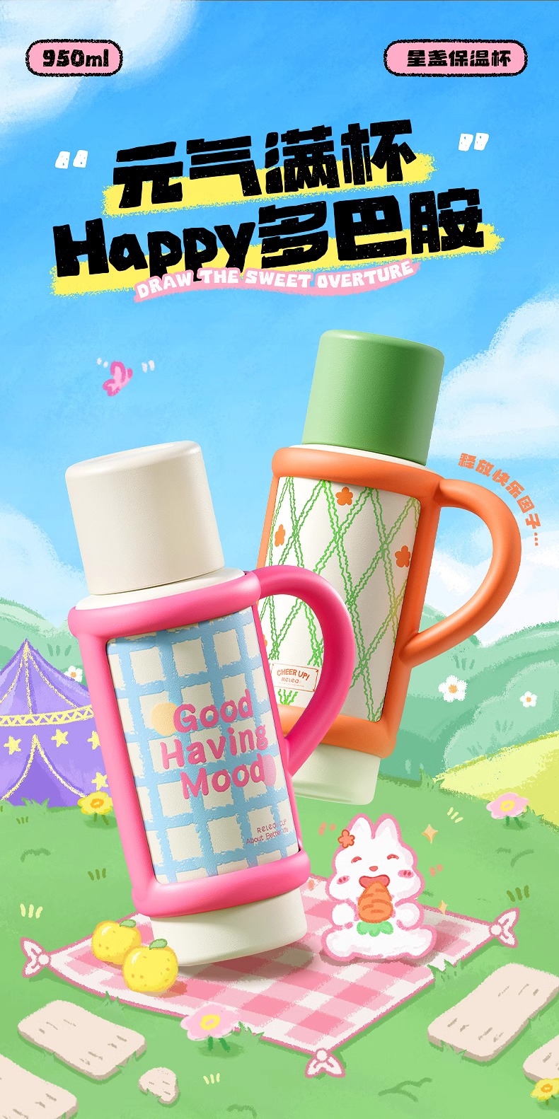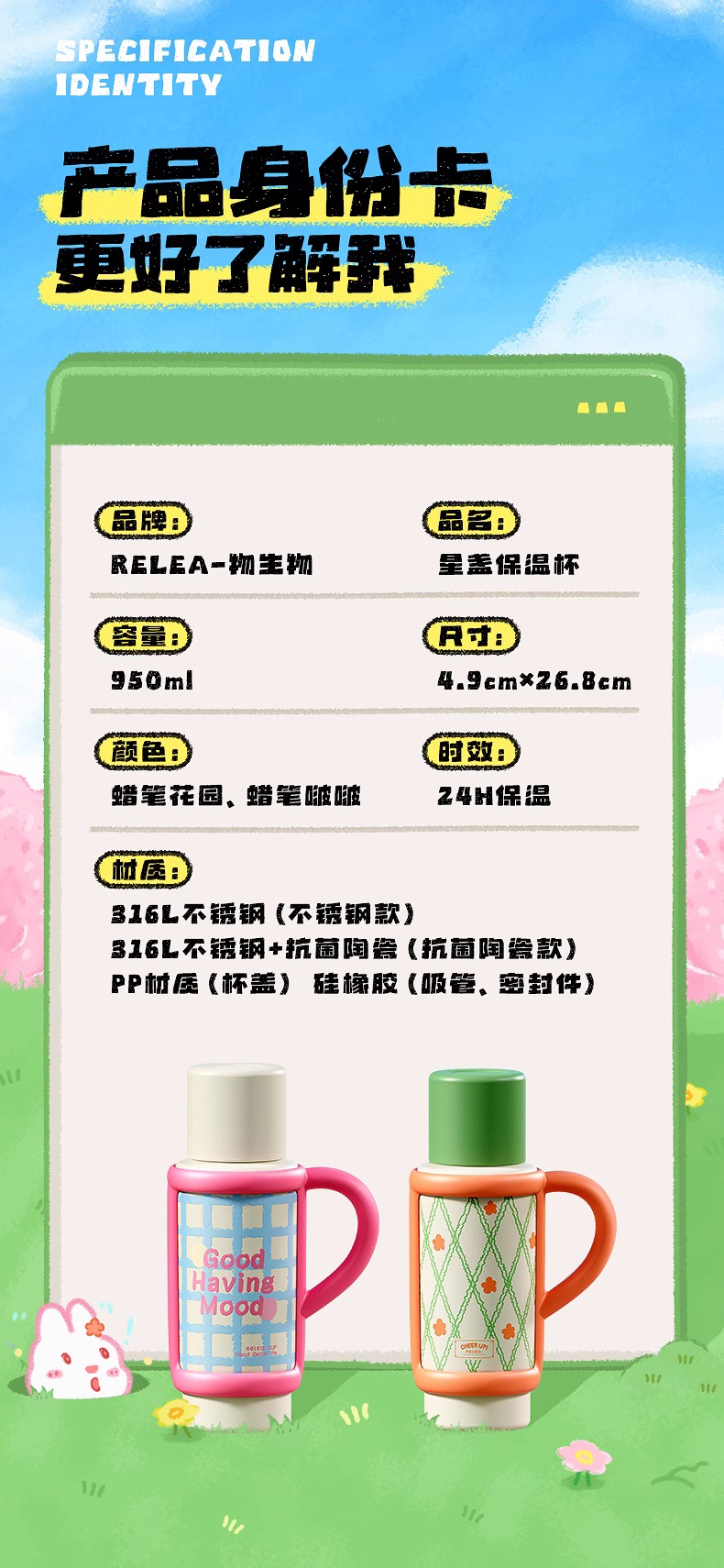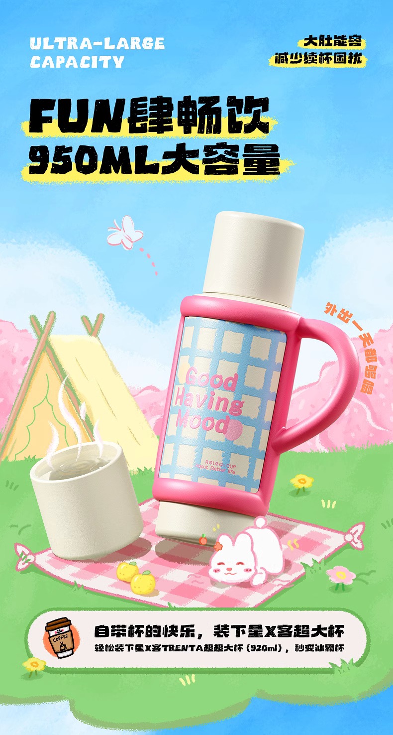 【清仓特惠3.5折】物生物星盏陶瓷保温杯大容量水杯950ML