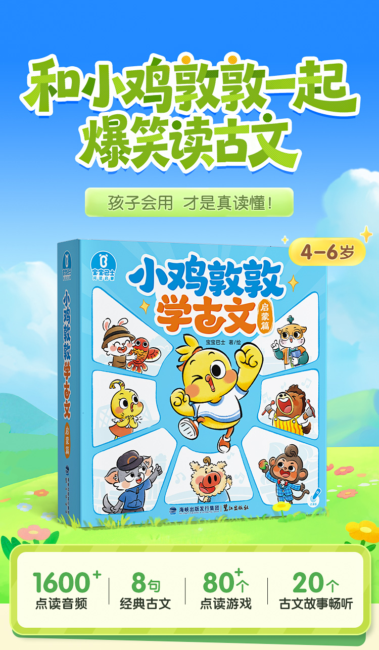 【3-6岁国学启蒙】小鸡敦敦学古文·启蒙篇/8册+宝宝蒙学启蒙/4册+奇妙古诗词100首
