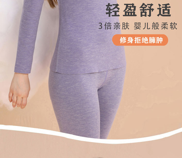无痕女士保暖内衣套装加厚加绒秋衣秋裤德绒发热2件套冬季打底衫