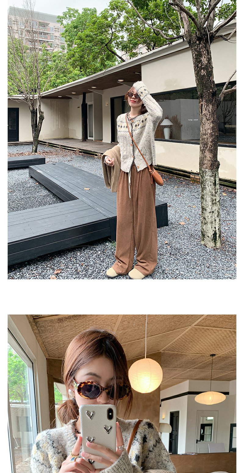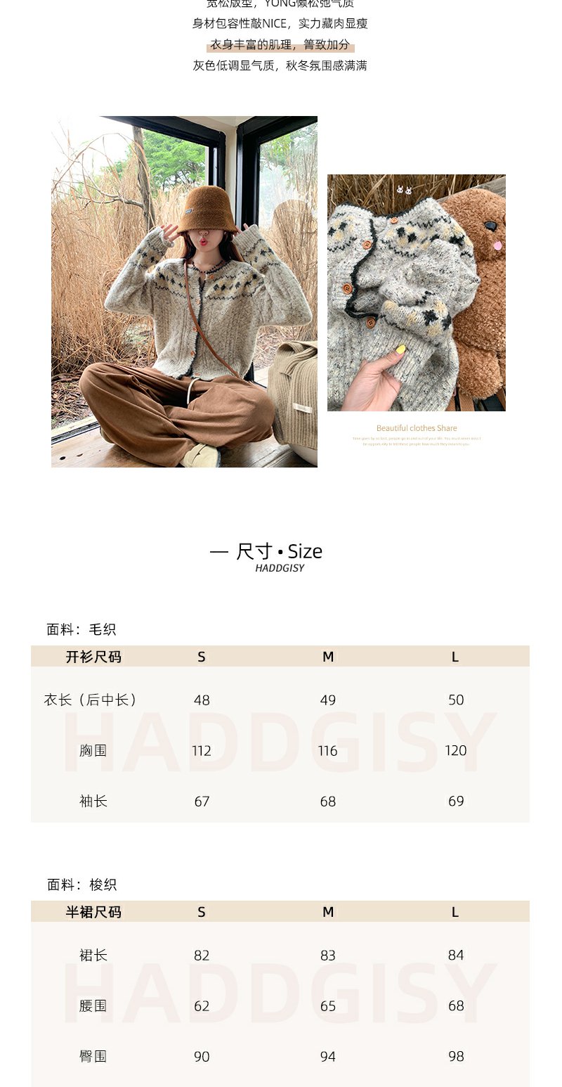 <曾小咸推荐>时尚百搭民族风灰杏色圆领毛衣开衫