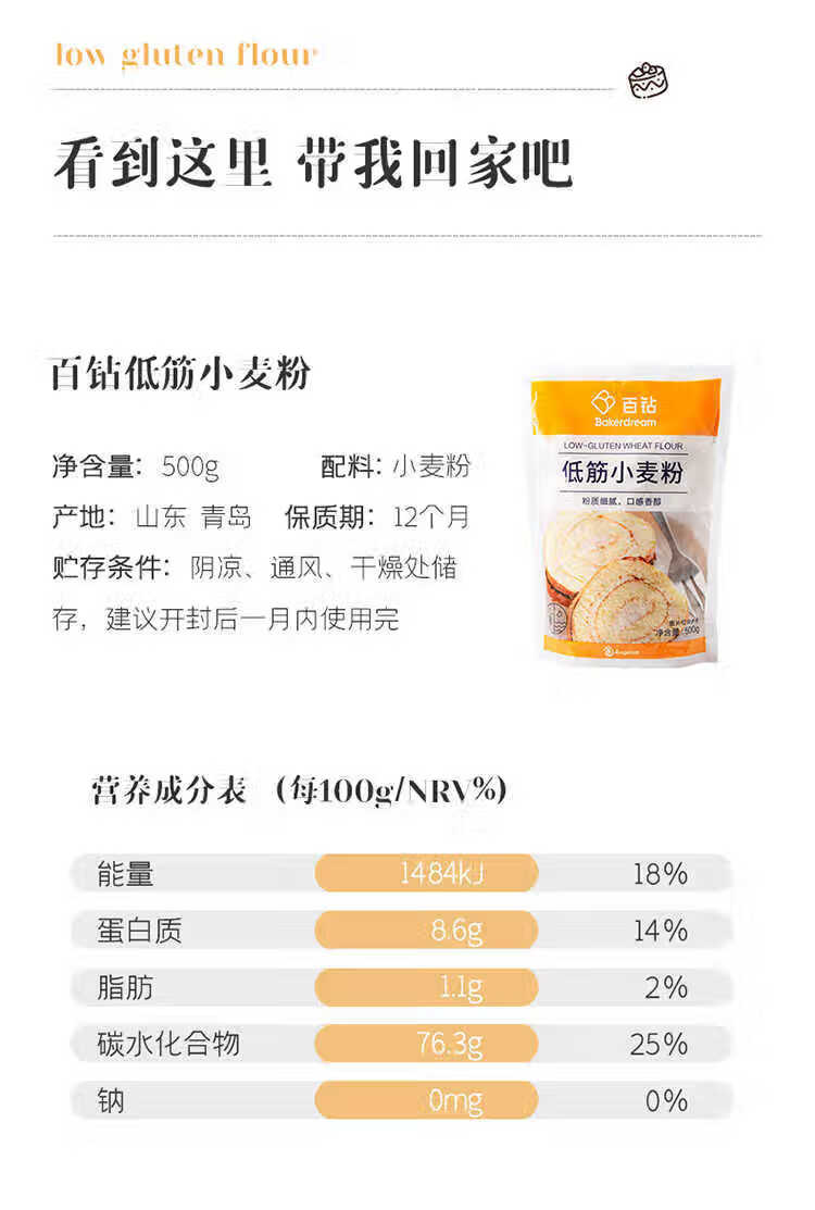百钻低筋小麦粉500g/袋