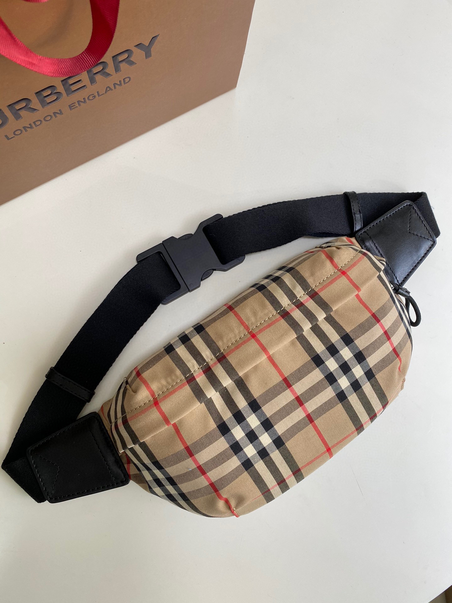 🎁B家包借鉴九十年代街头风格,选用 Vintage 复古格纹接合棉打造,装饰提花精纺品牌徽标,搭配精美皮革边饰。可用背带斜挎或系于腰部。31 x 7.5 x 16!