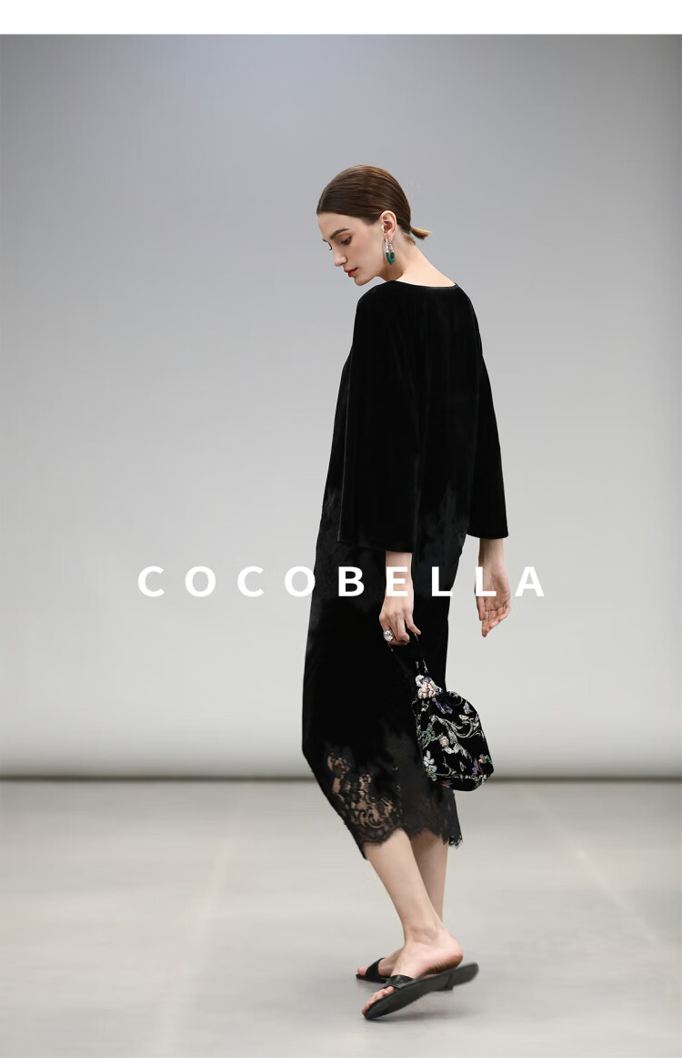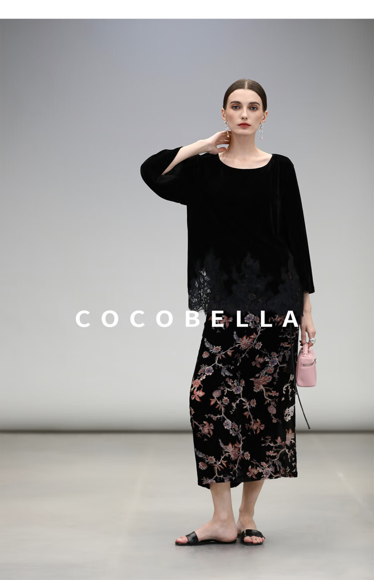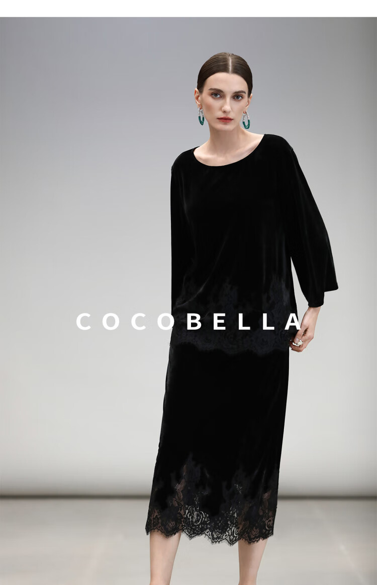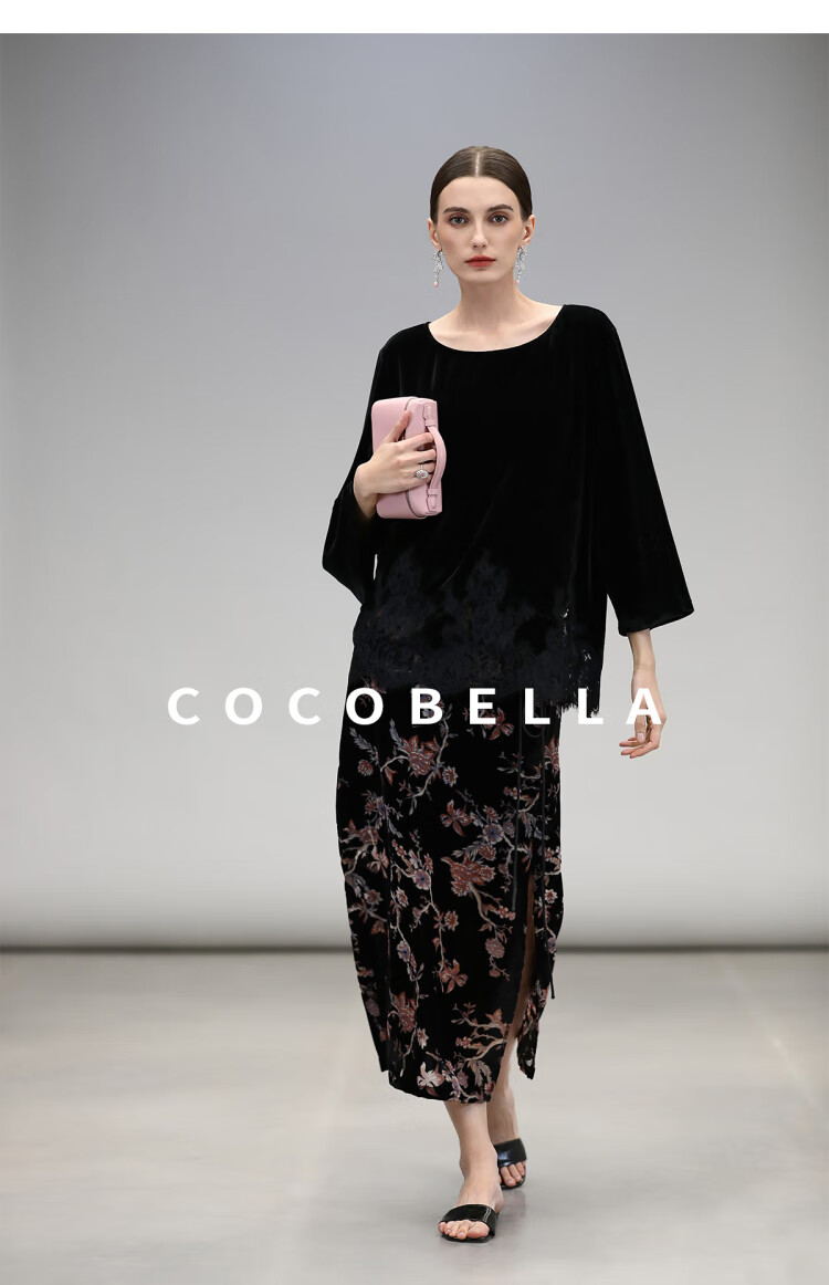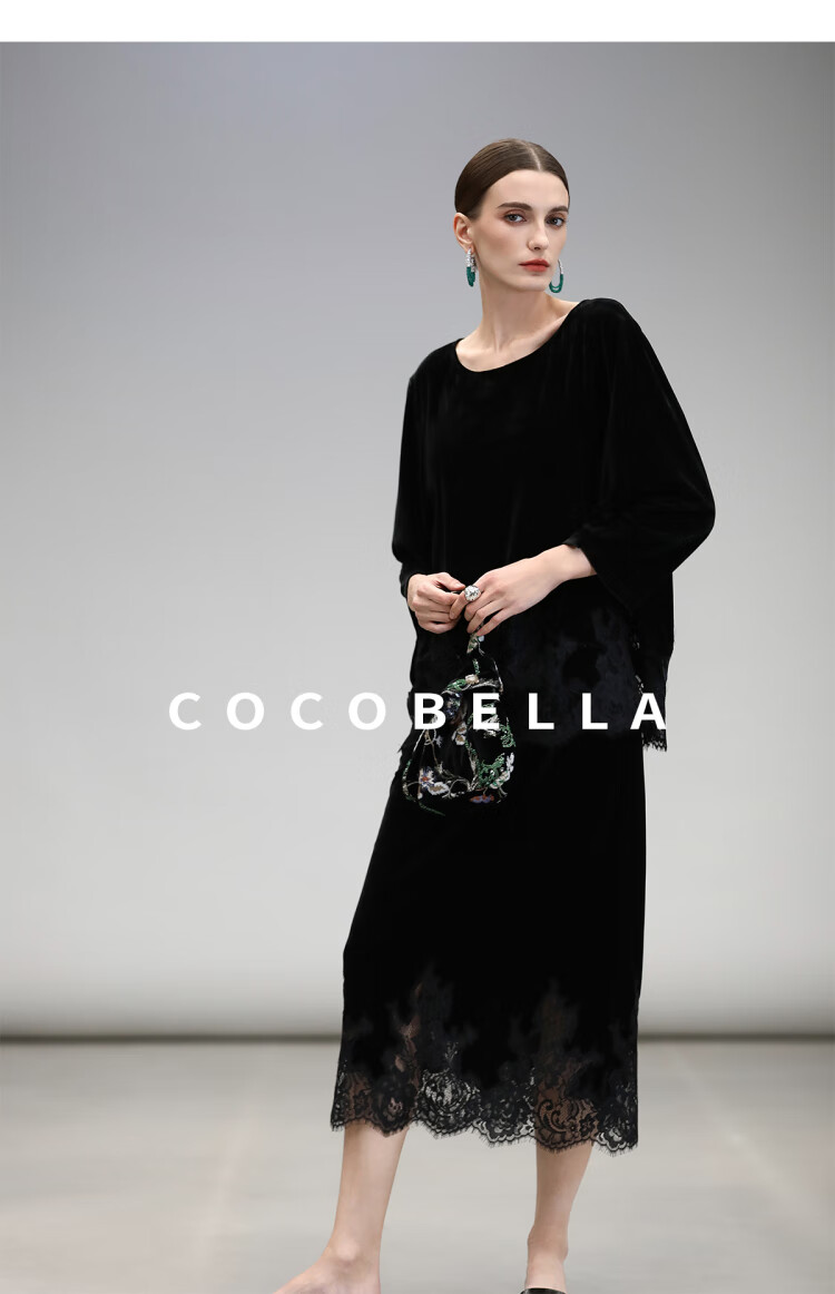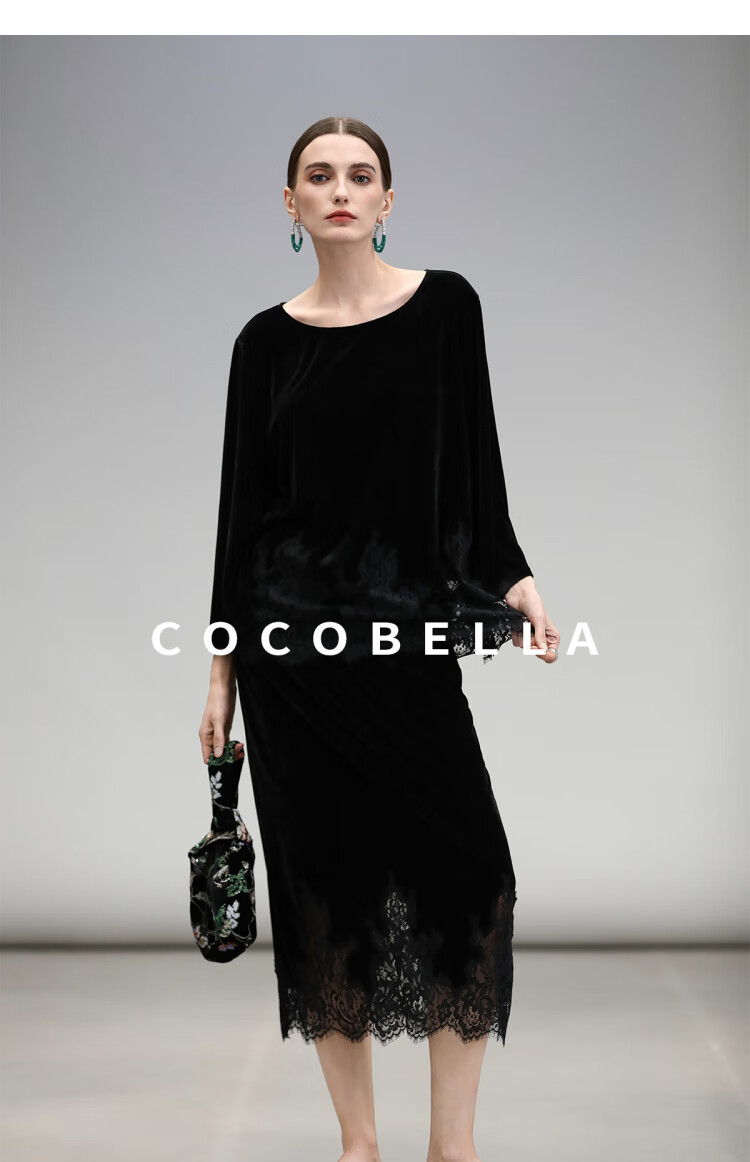 COCOBELLA静奢风丝绒上衣女不规则蕾丝拼接优雅通勤T恤TS3038