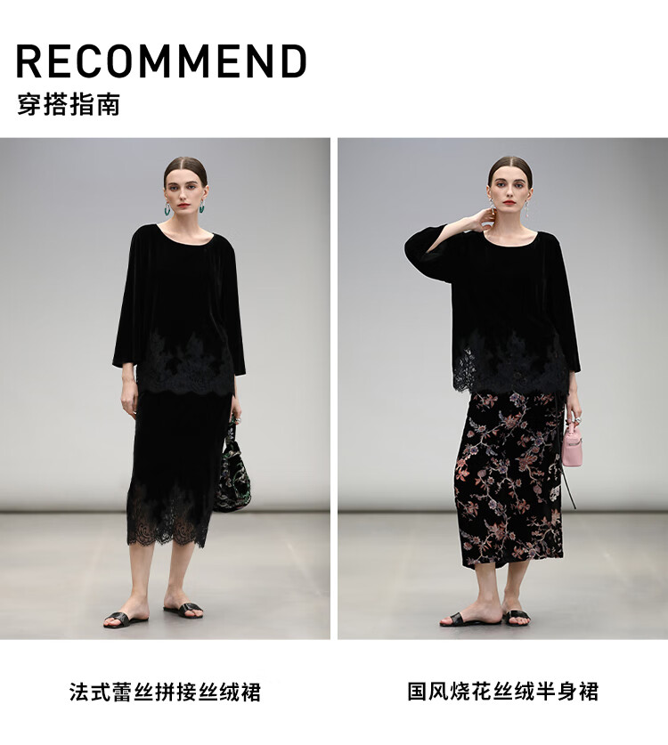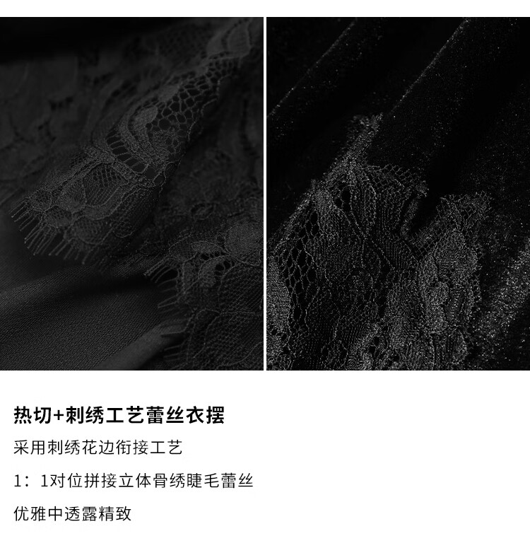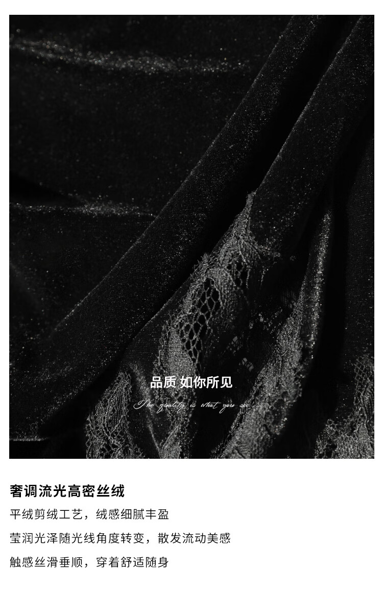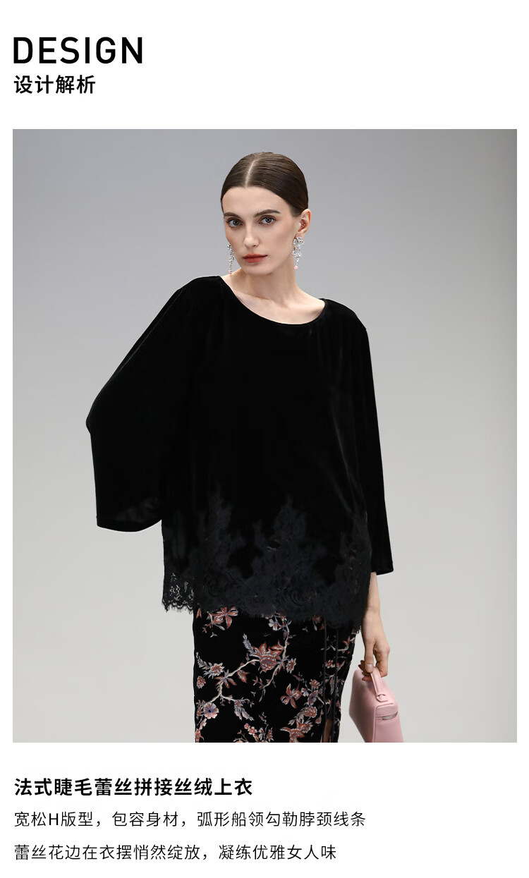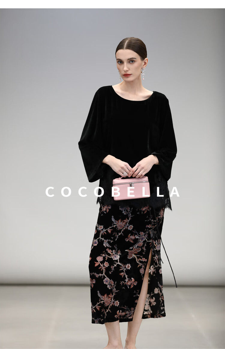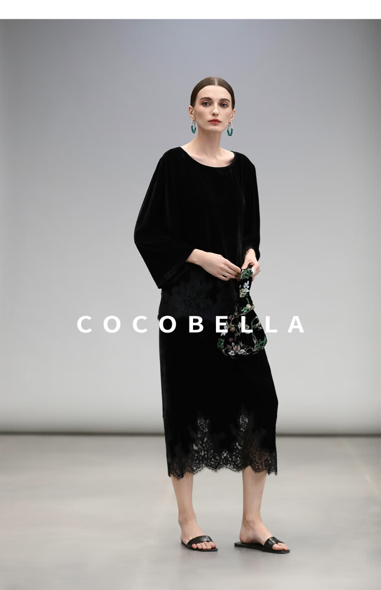 COCOBELLA静奢风丝绒上衣女不规则蕾丝拼接优雅通勤T恤TS3038