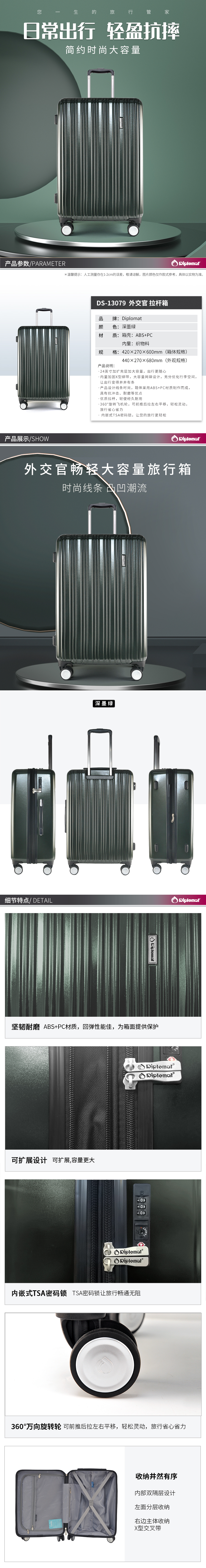 Diplomat外交官时尚拉杆箱登机箱 24英寸 深墨绿色 DS-13079