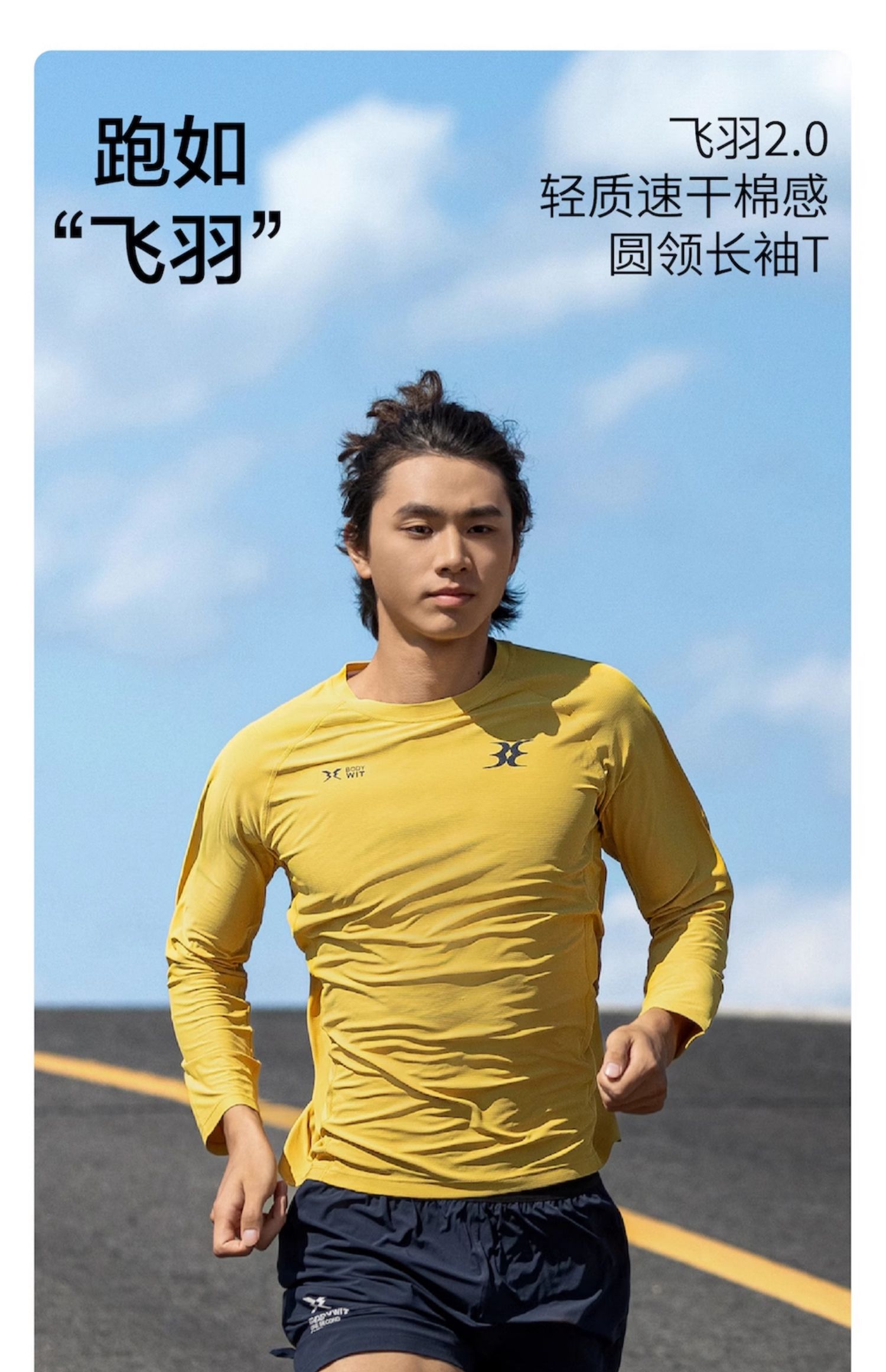 身体智慧 BODYWIT 男款 飞羽2.0 轻薄速干圆领长袖T恤