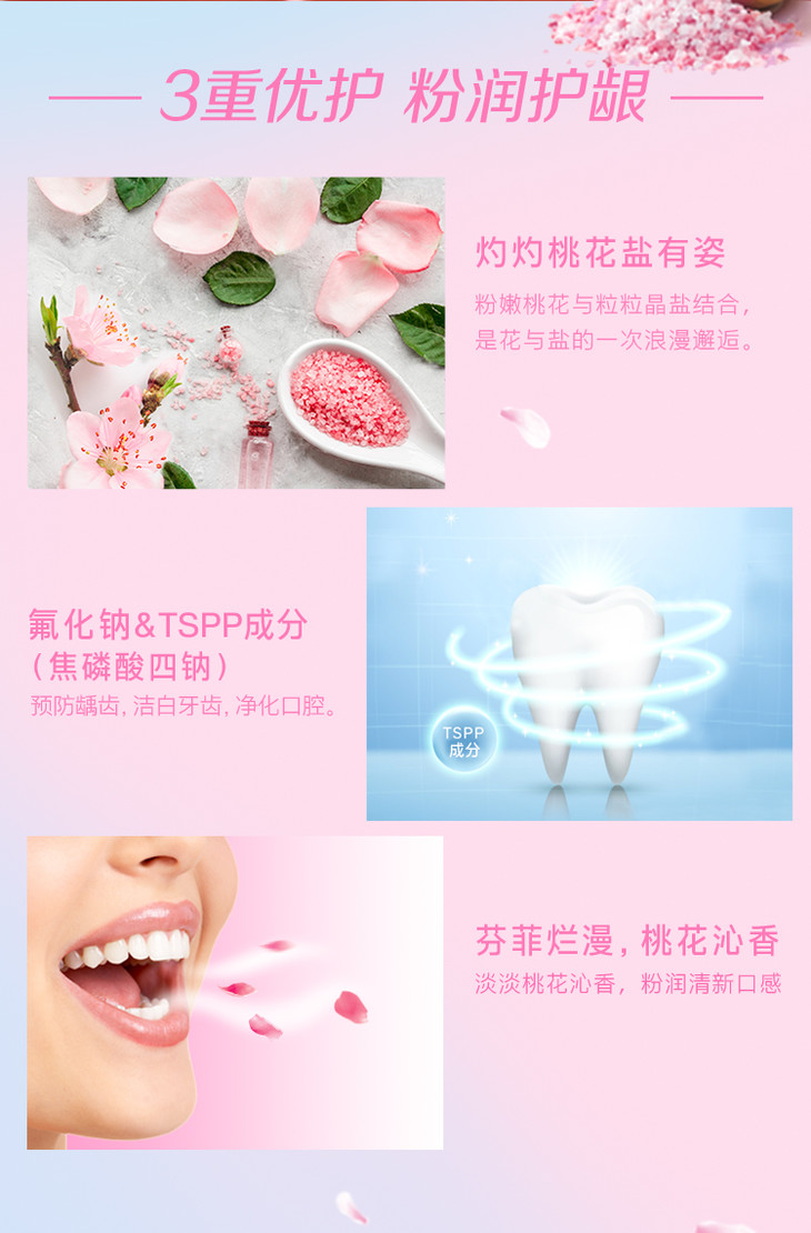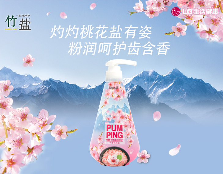 商品名称:【清仓好价】LG竹盐盐续水漾桃花盐优护派缤牙膏285g*2(23.5)