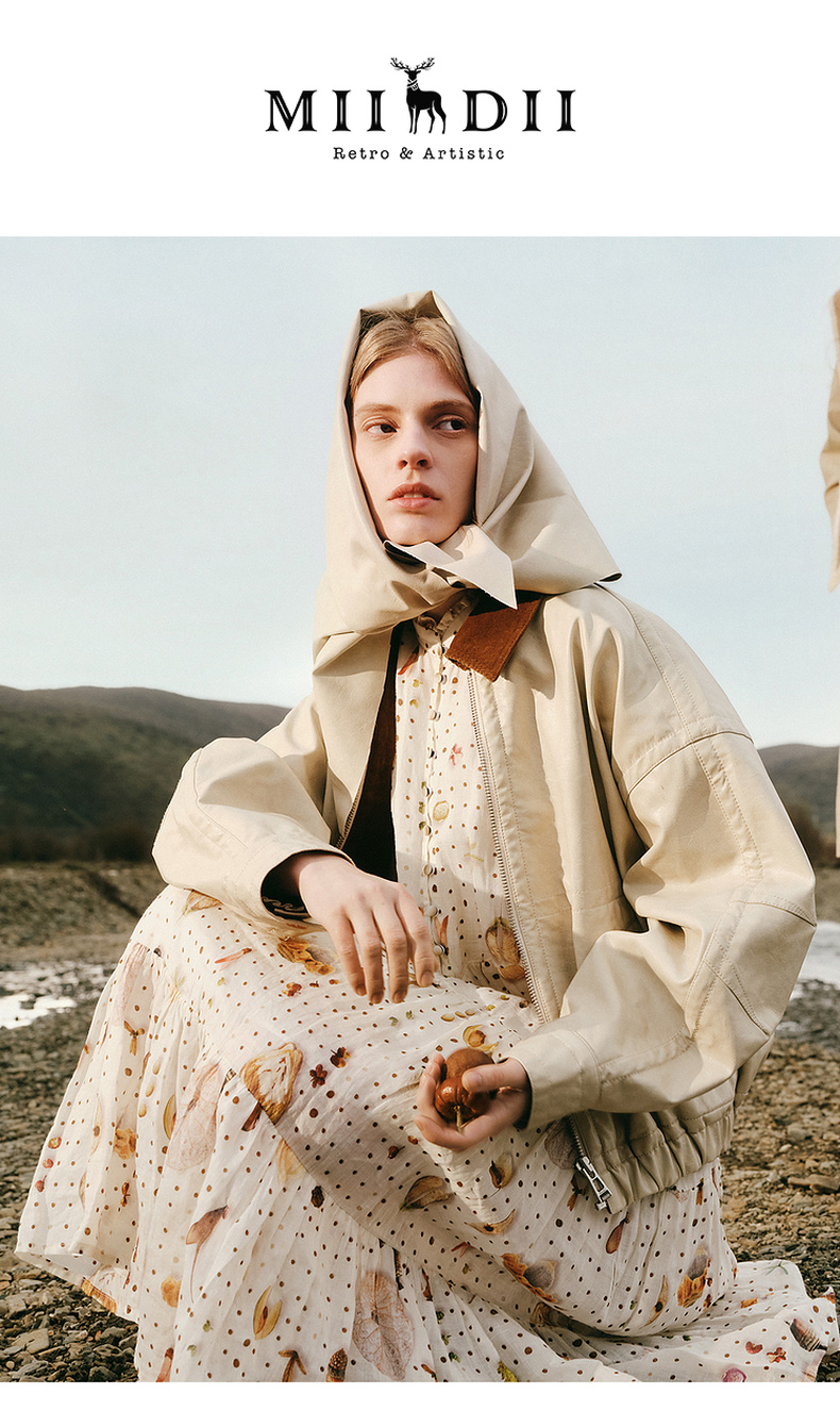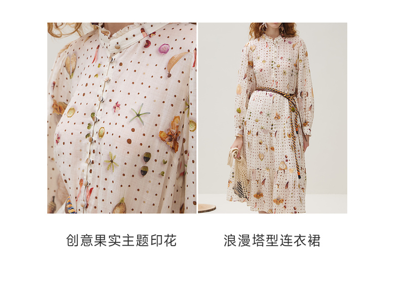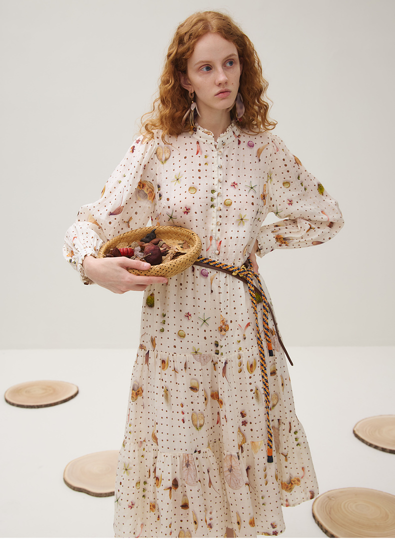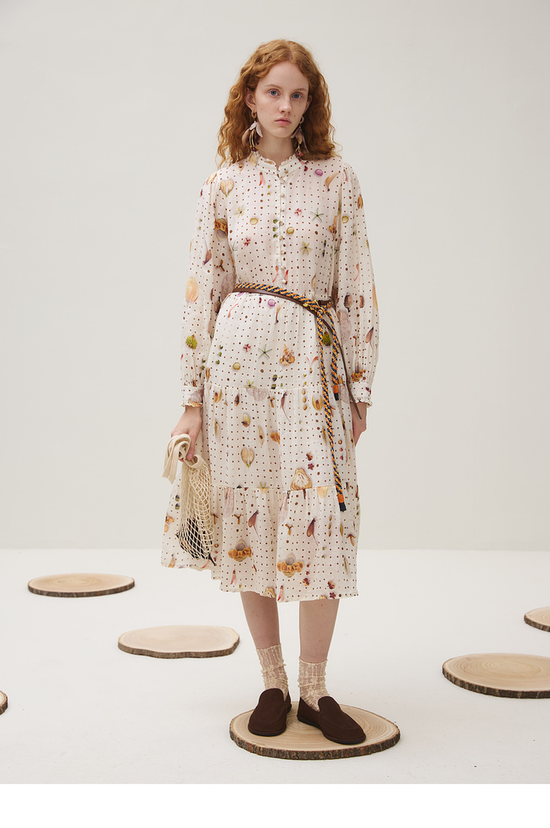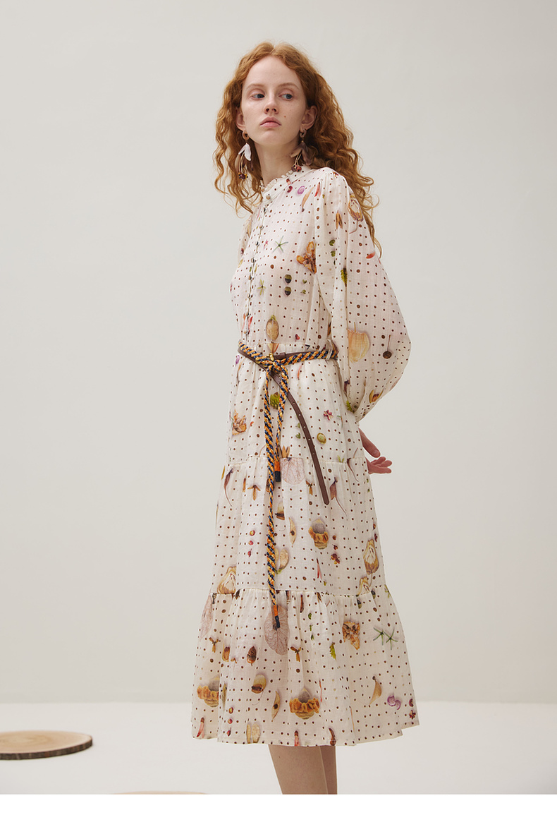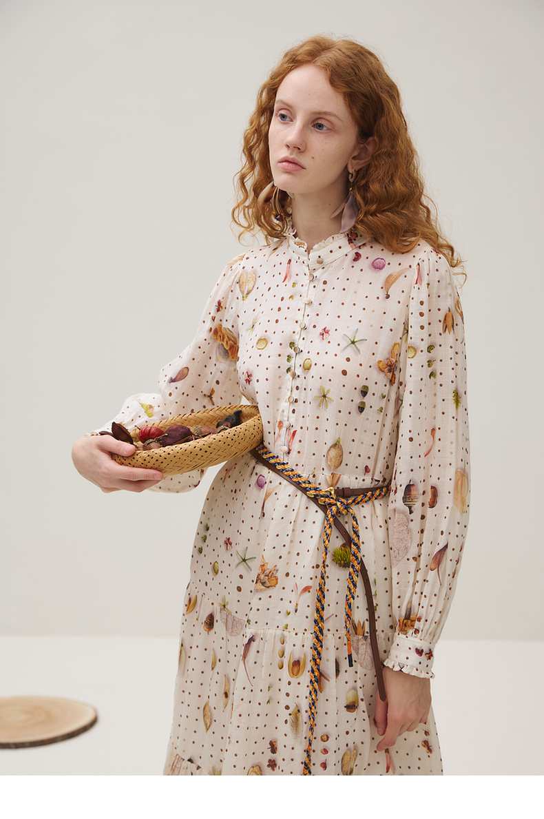 谜底连衣裙长袖女2025秋季新品原创印花苎麻垂柔美长裙253ML1224