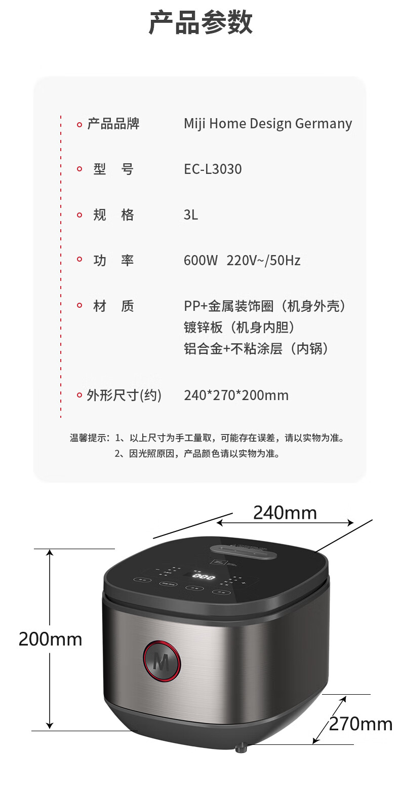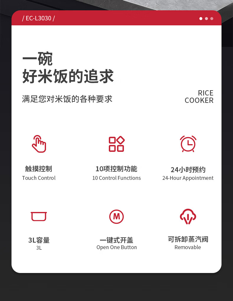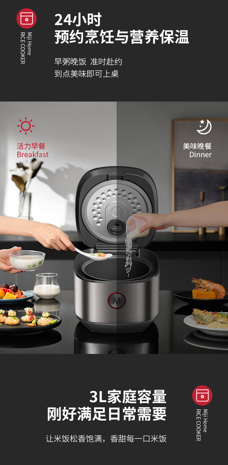 【小家电】米技生活 (Miji Home)电饭煲多功能家用大容量微电脑智能预约煮饭锅电饭锅触控面板 EC-L3030 HF