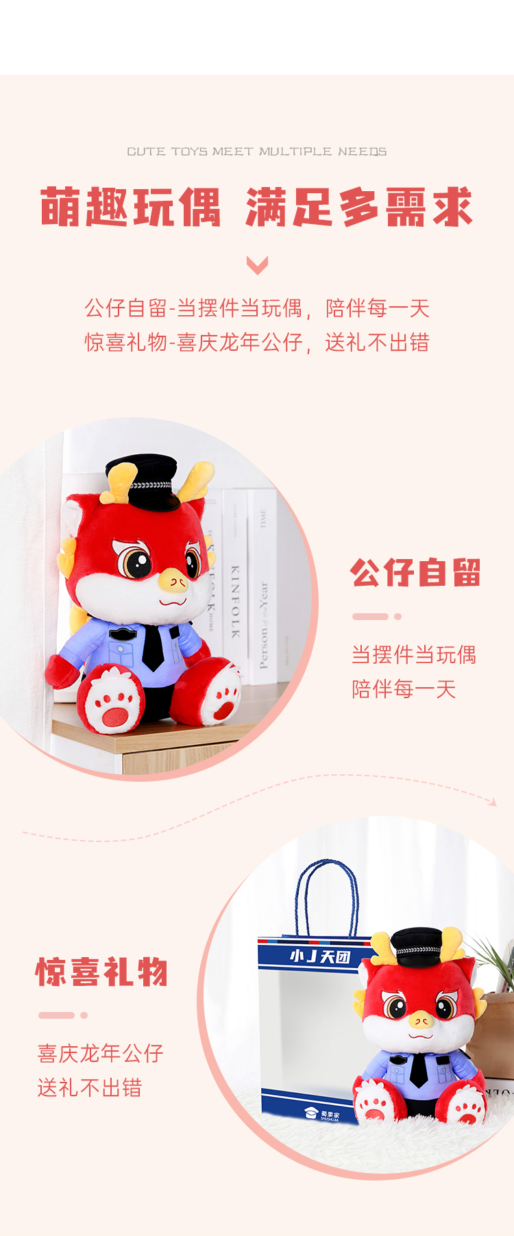 【蓝衬小龙(可定制)】可定制毛绒玩偶儿童礼品礼物萌萌龙公仔