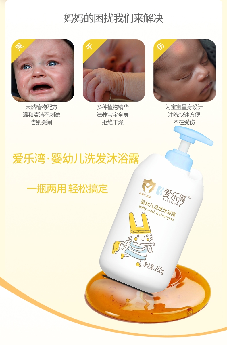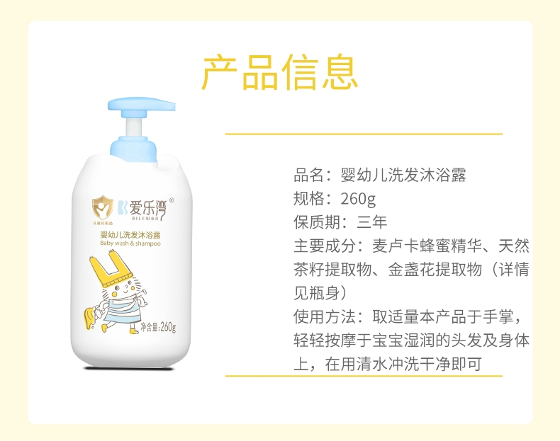 【爱乐湾】【买1送1】婴幼儿洗发露/沐浴露/洗沐二合一 260ml/瓶