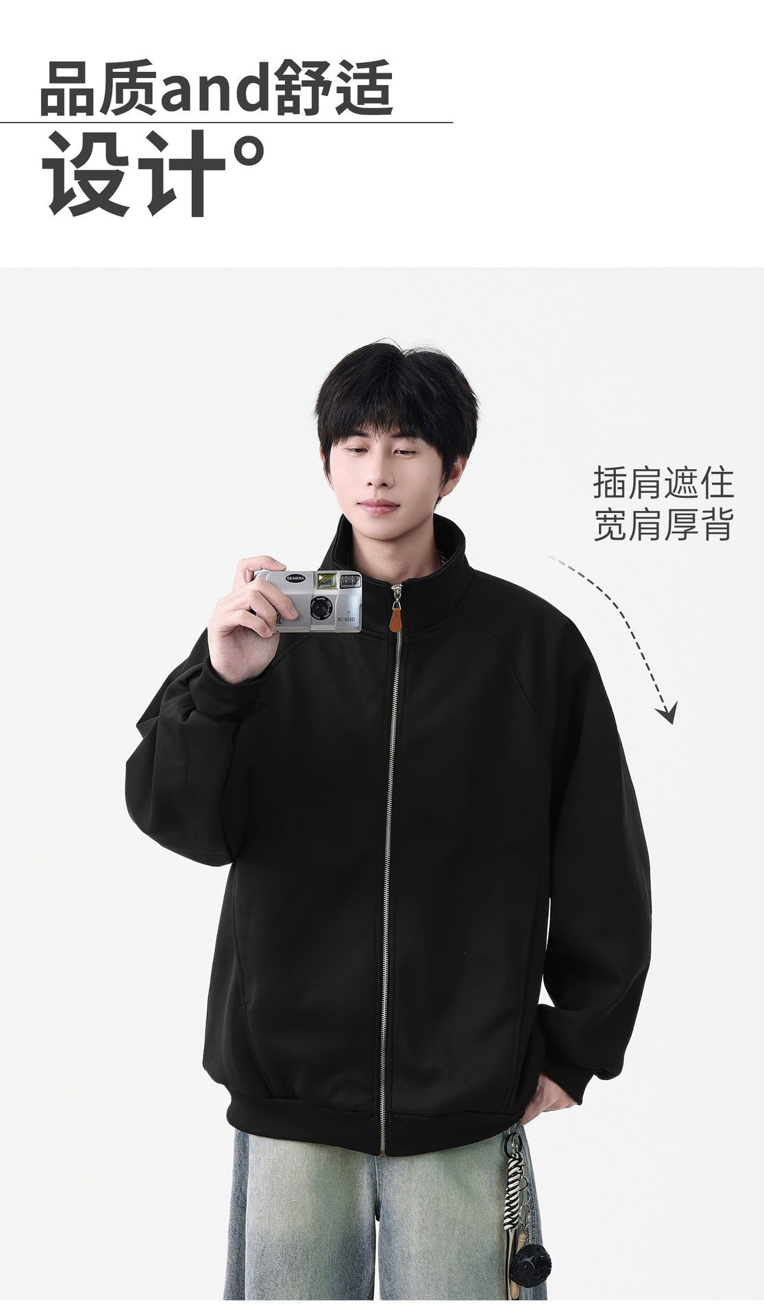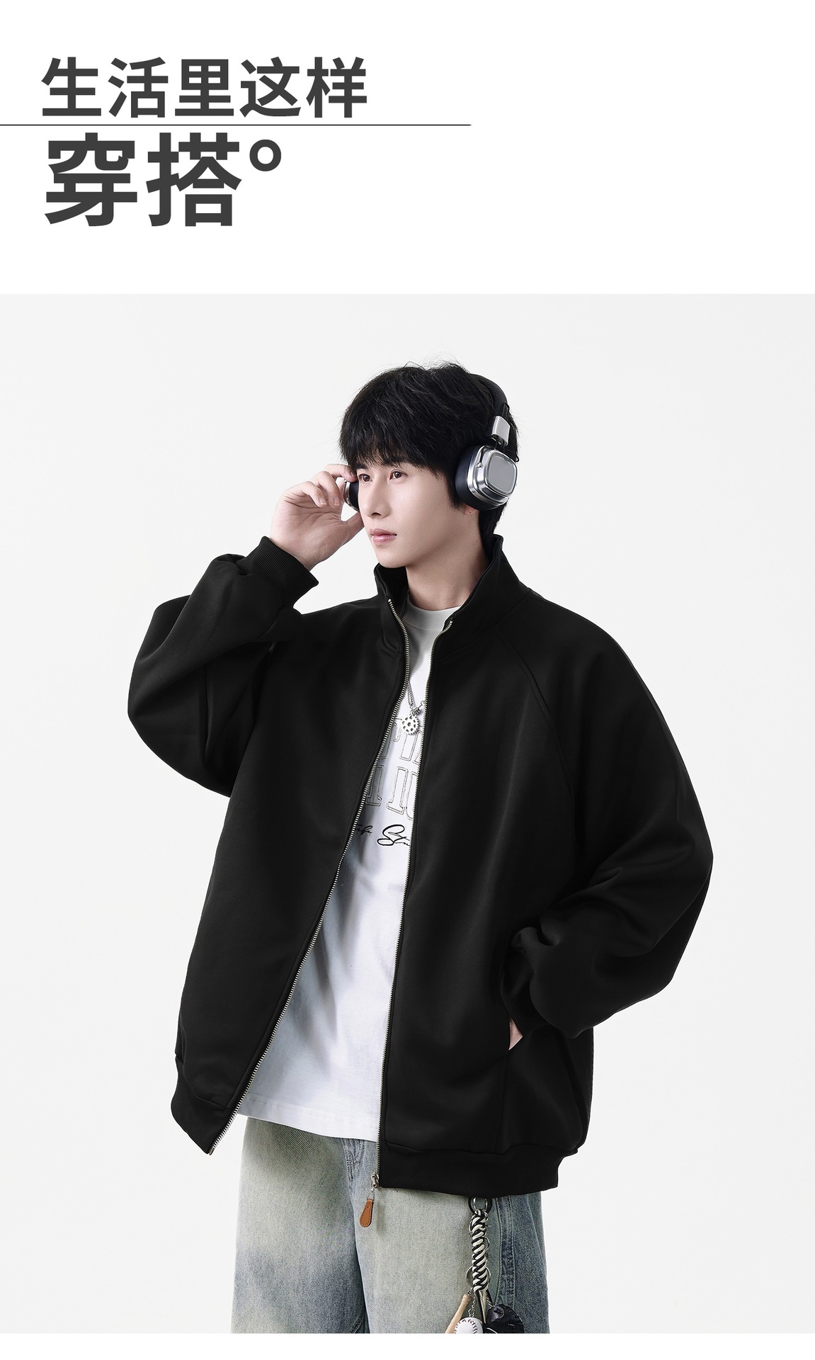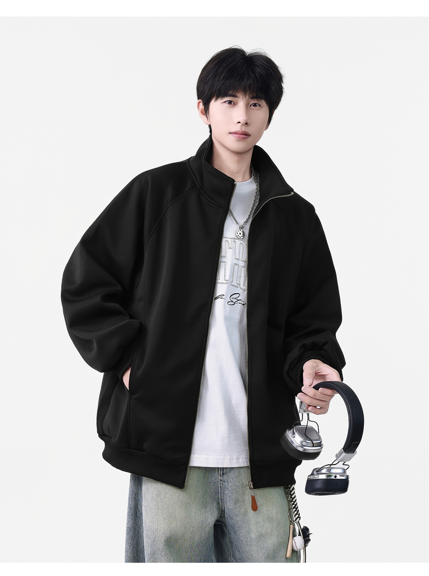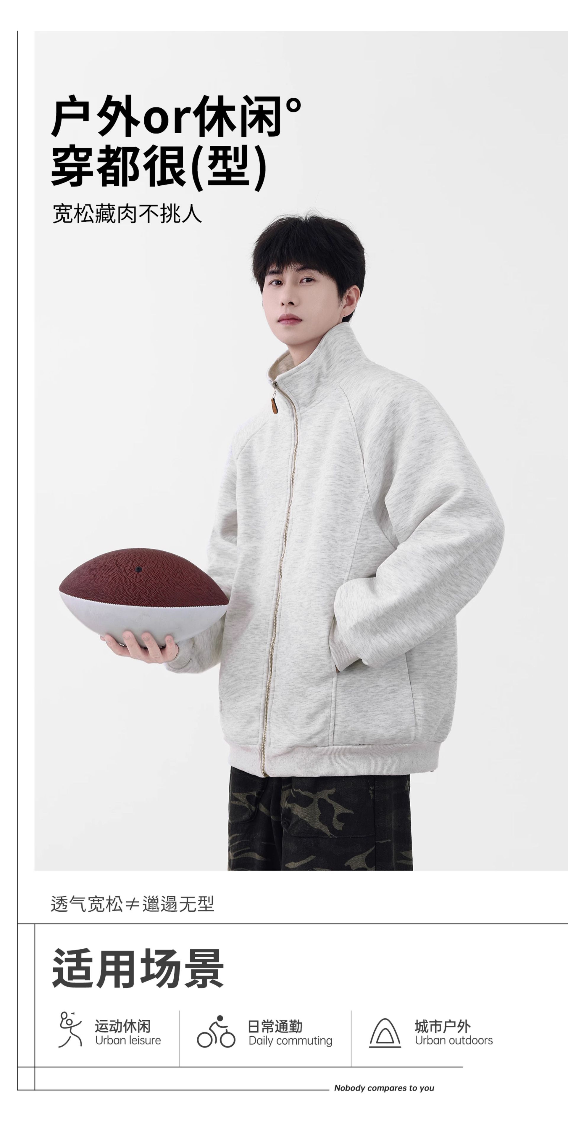 NASA立领开衫卫衣外套男士春秋季2025新款美式重磅棒球服休闲夹克
