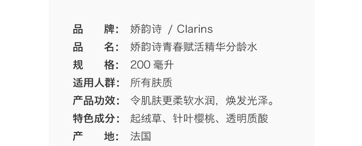 【少女粉水】CLARINS 娇韵诗 青春赋活分龄精华水 200ml