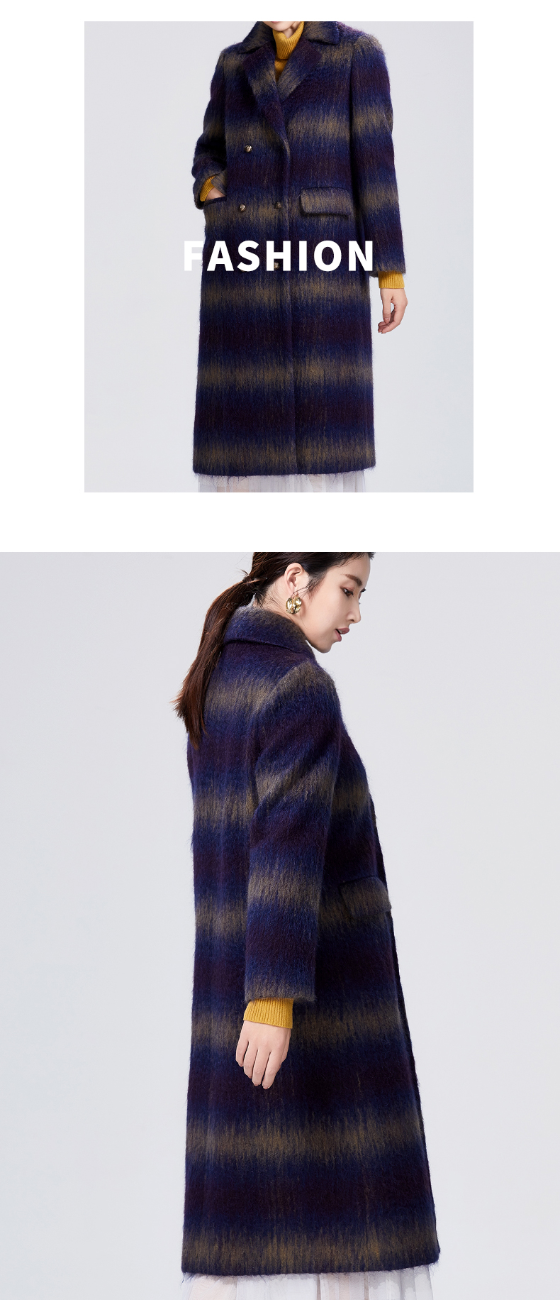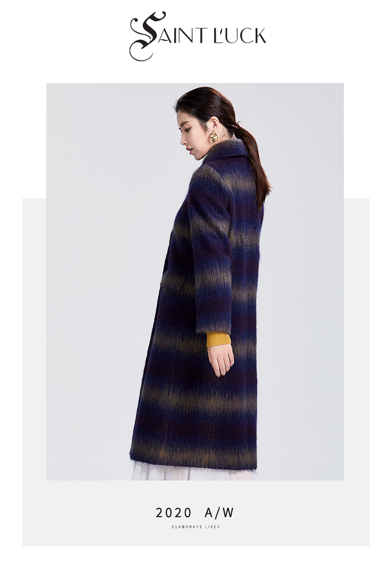 SAINT L’UCK/圣媛女装冬季H型中长款马海毛毛呢大衣SA420D53