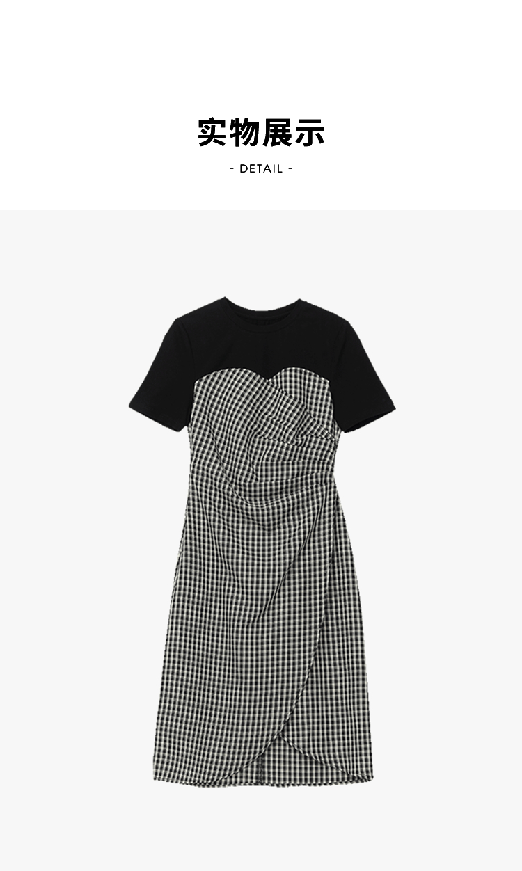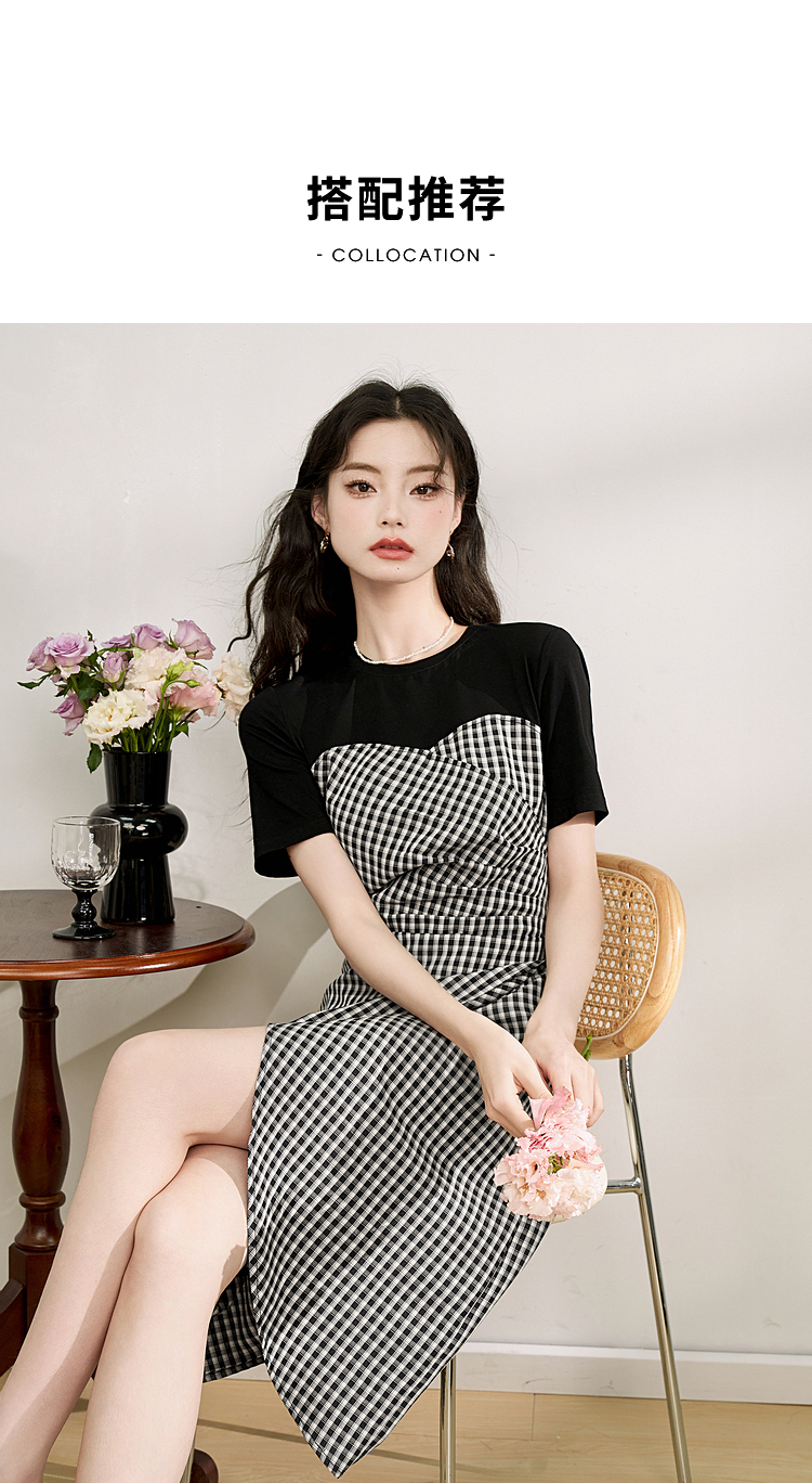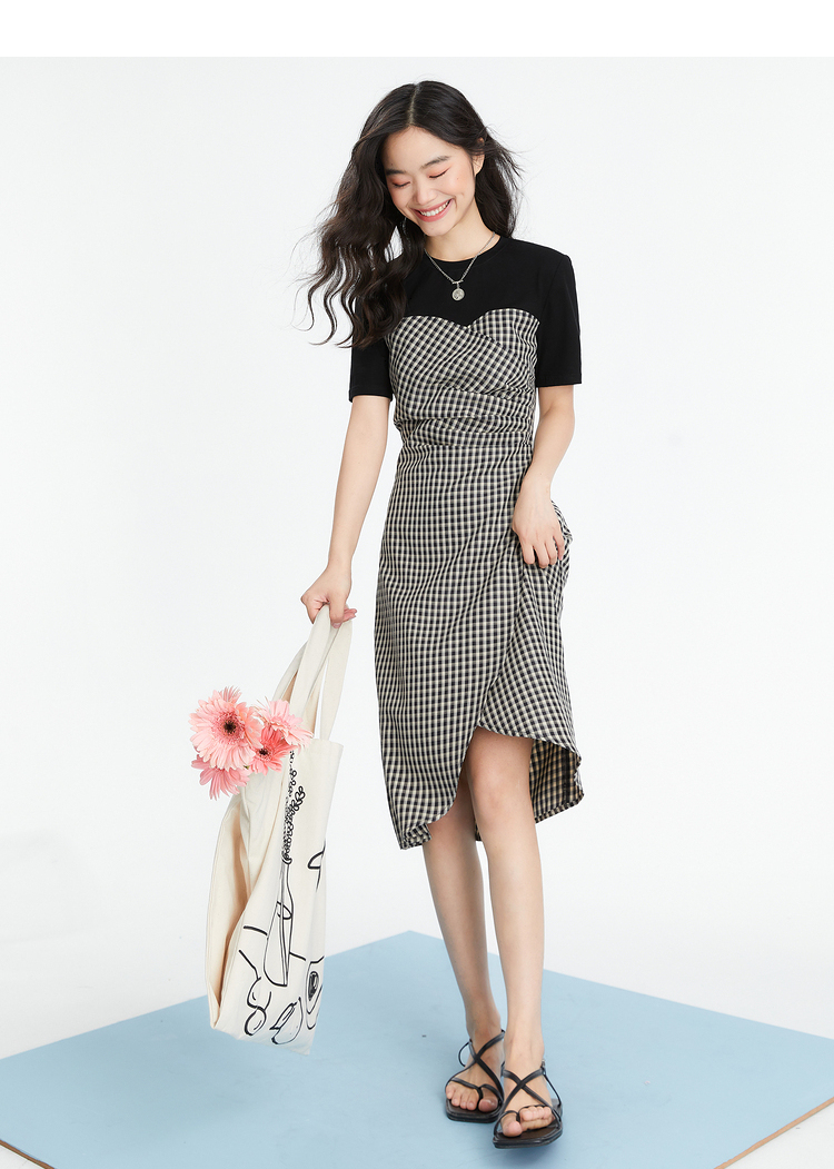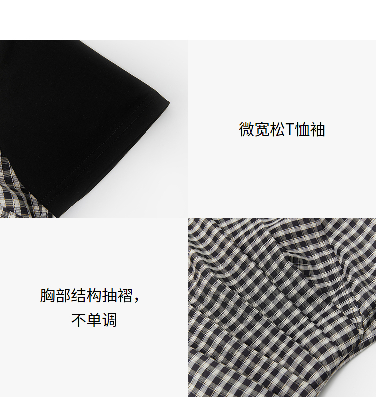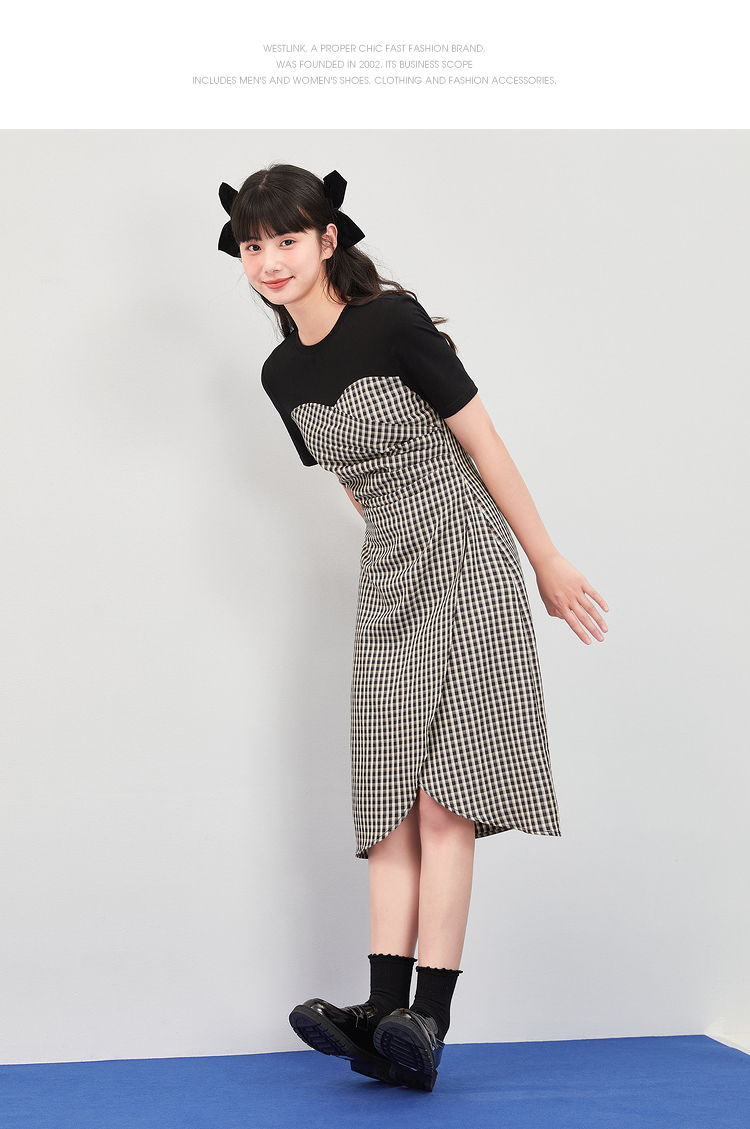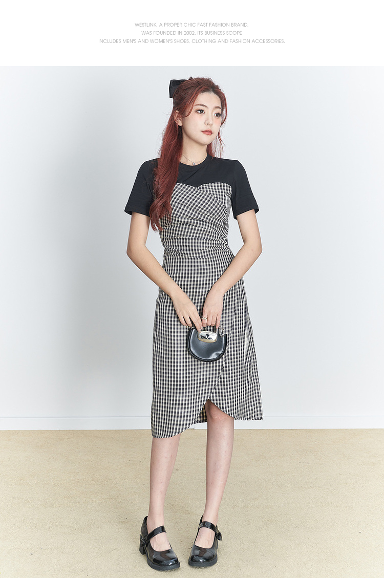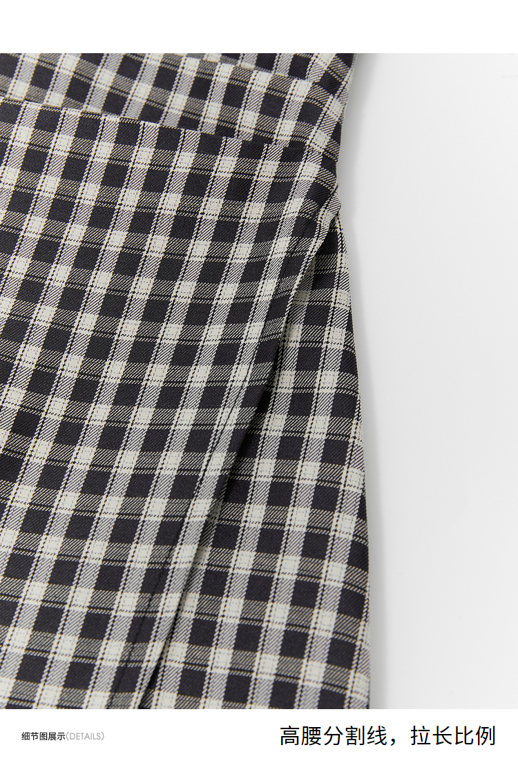 西遇假两件连衣裙新款设计感小众不规则格子裙10520361