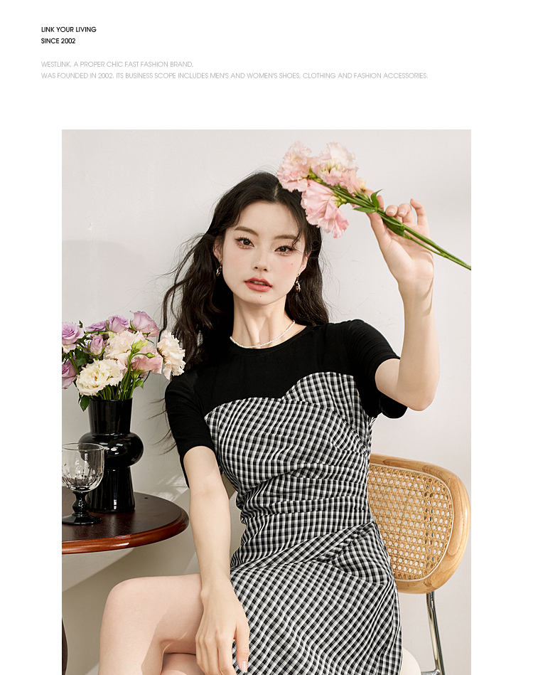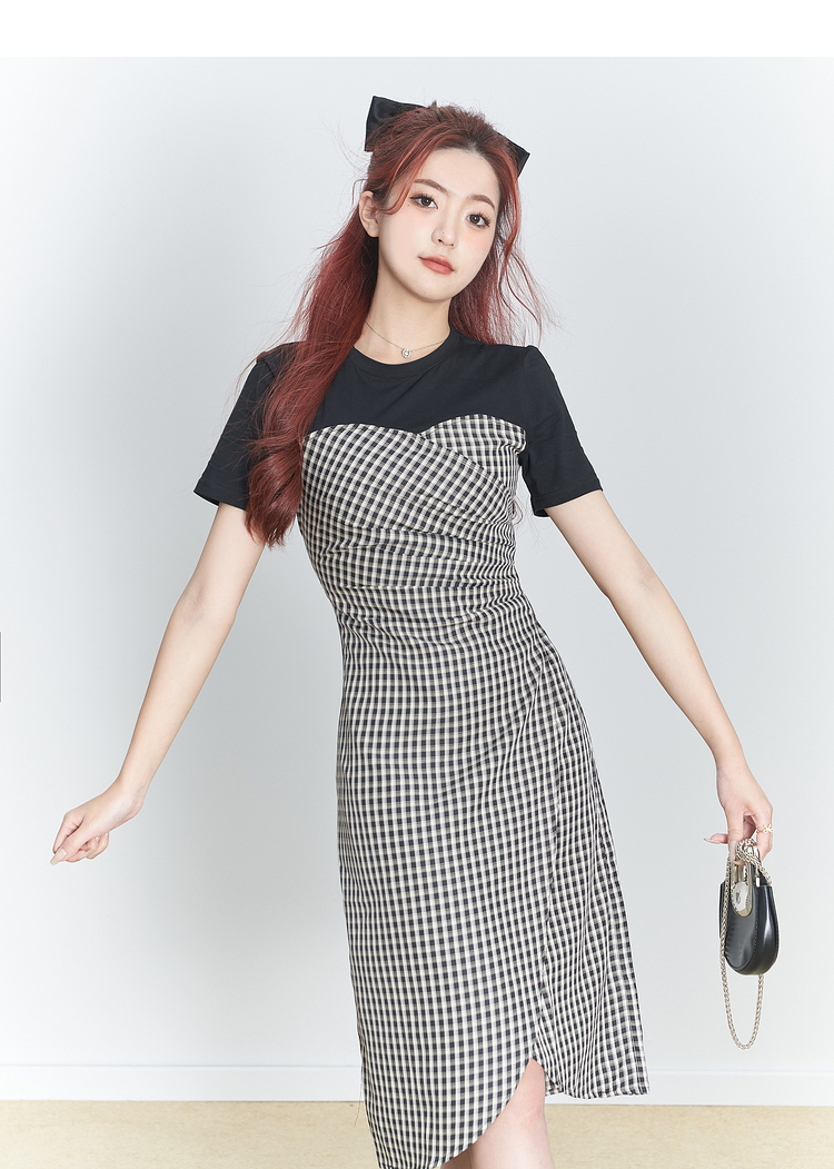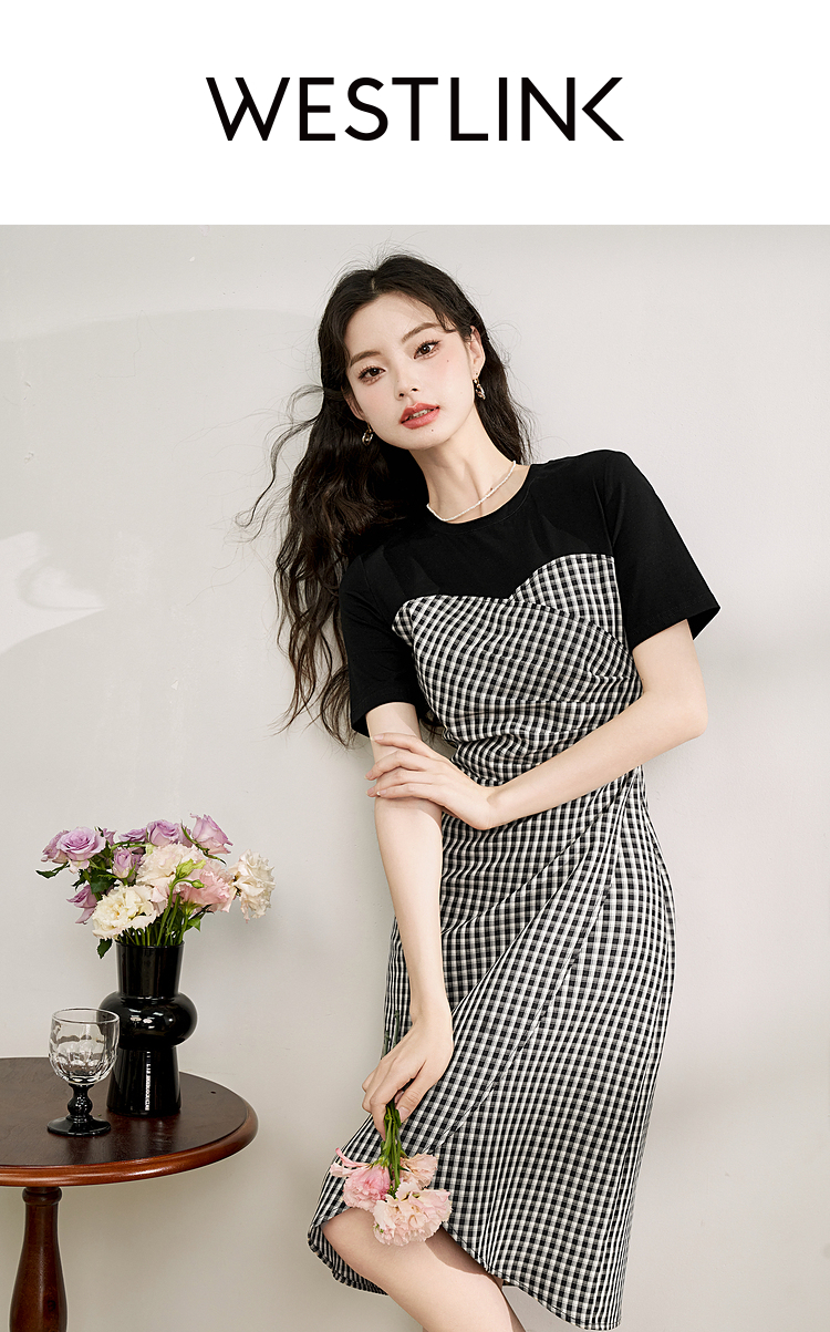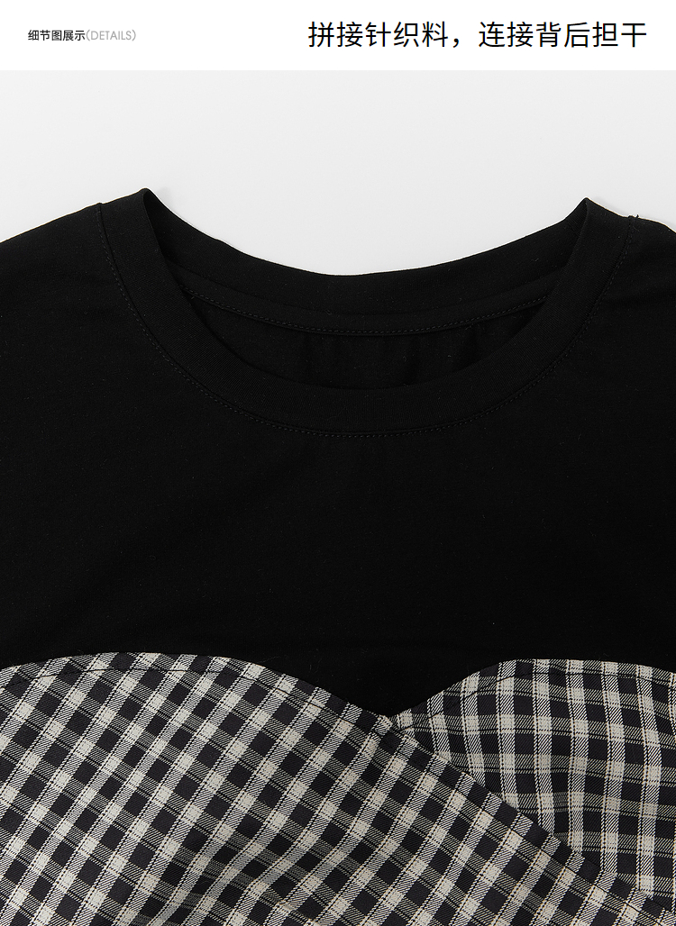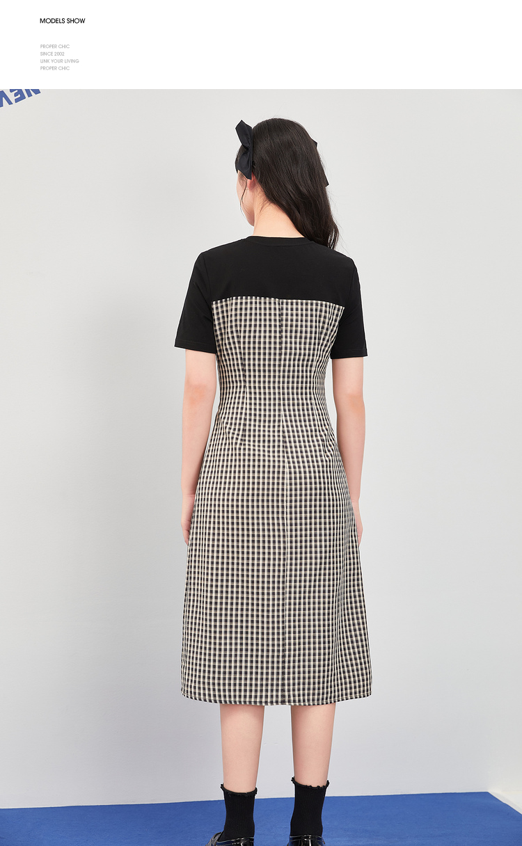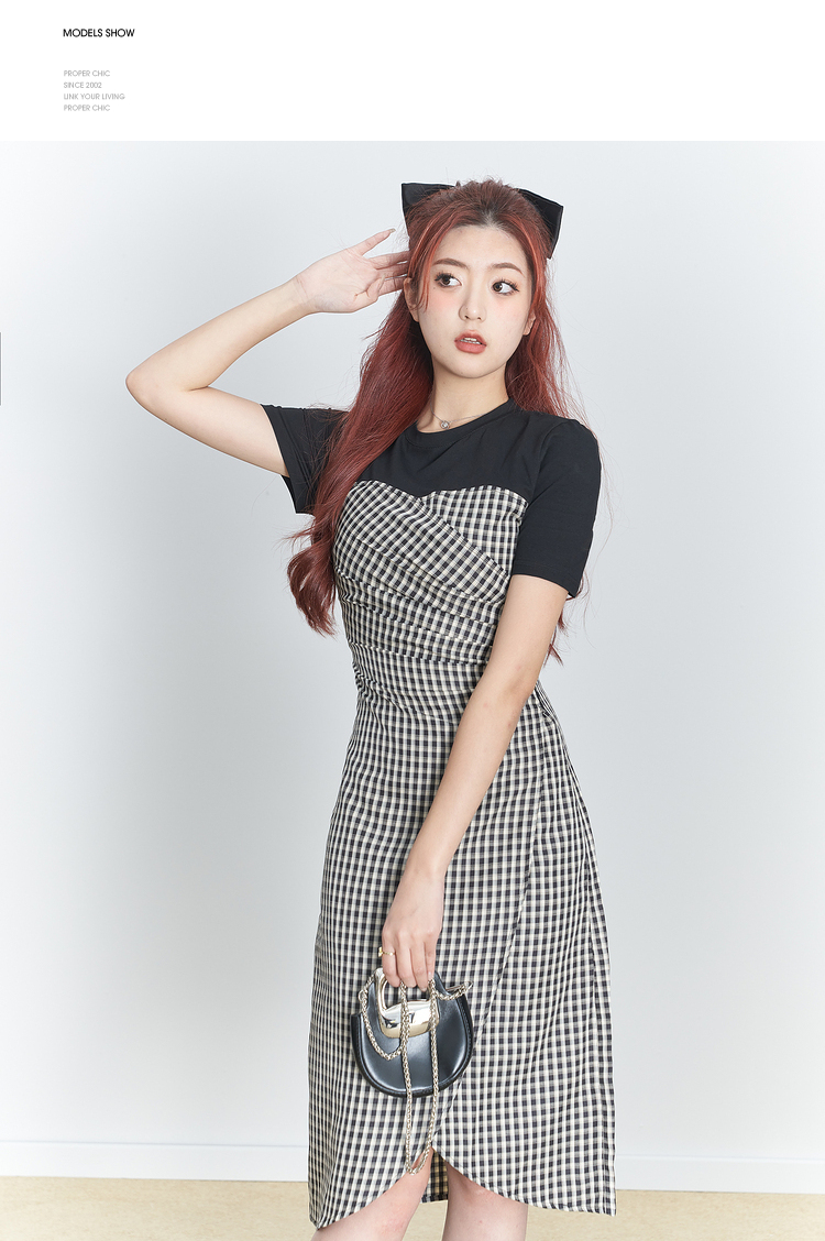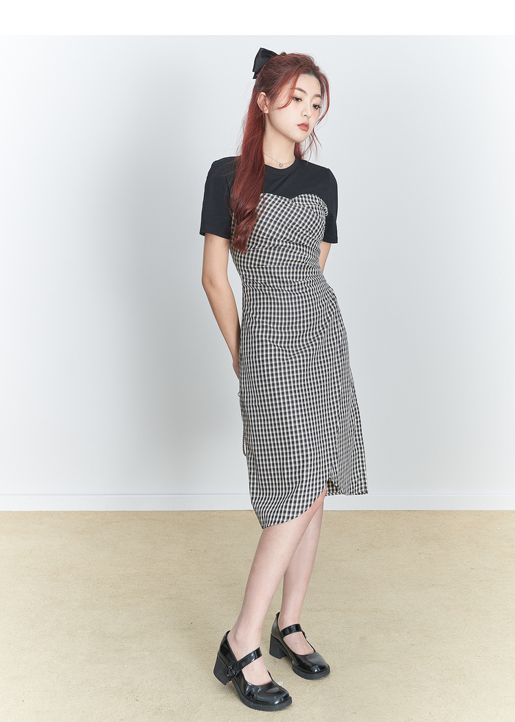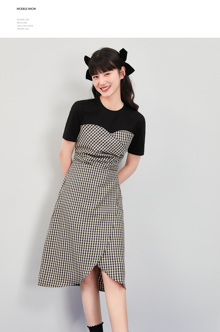 西遇假两件连衣裙新款设计感小众不规则格子裙10520361
