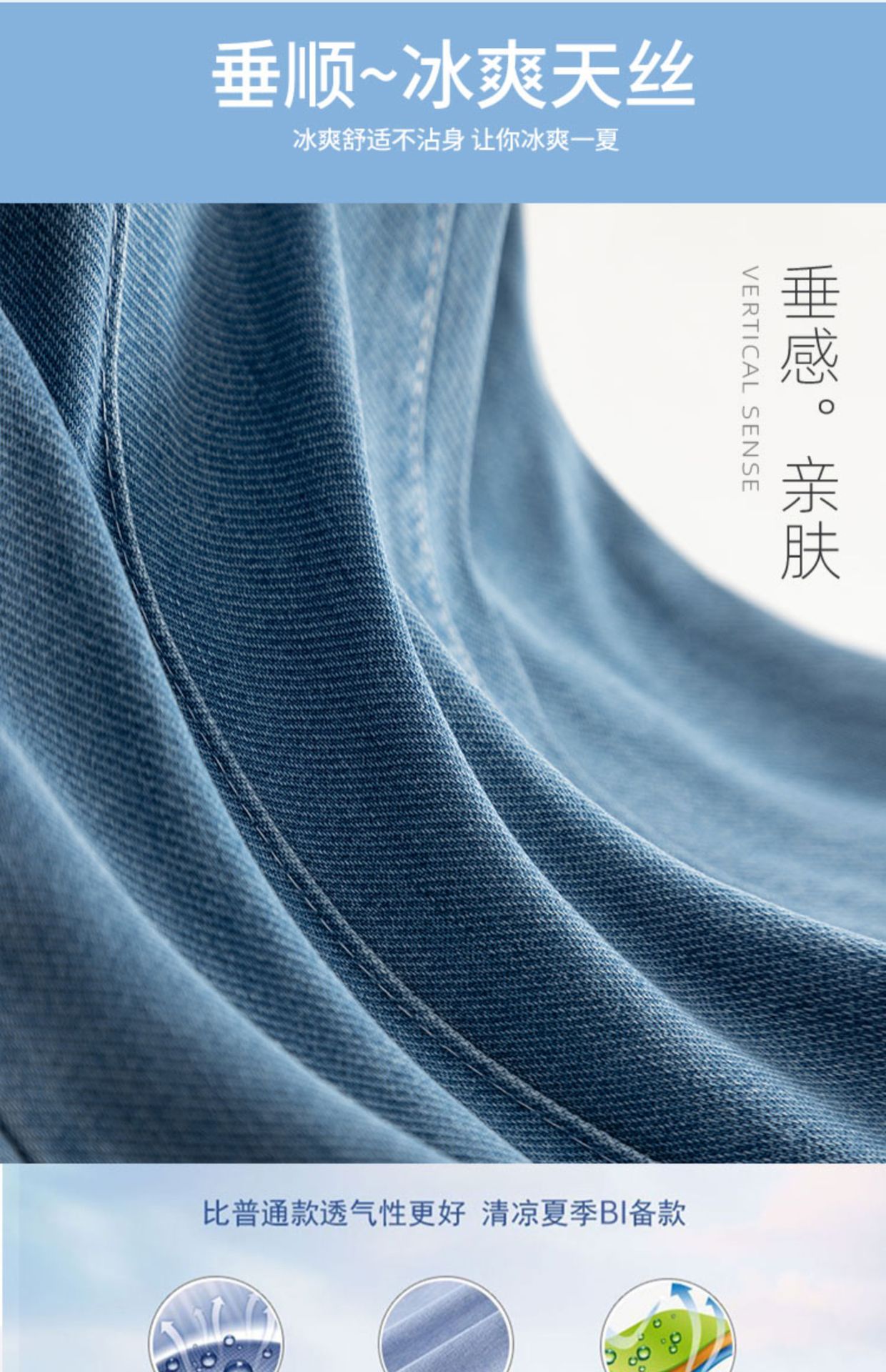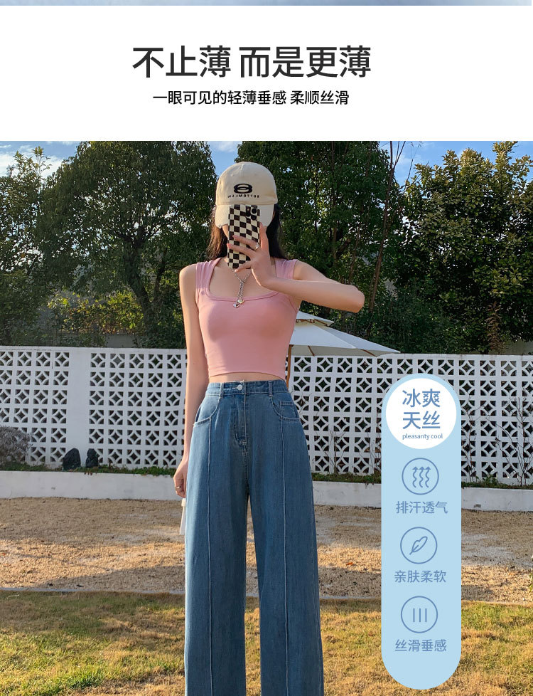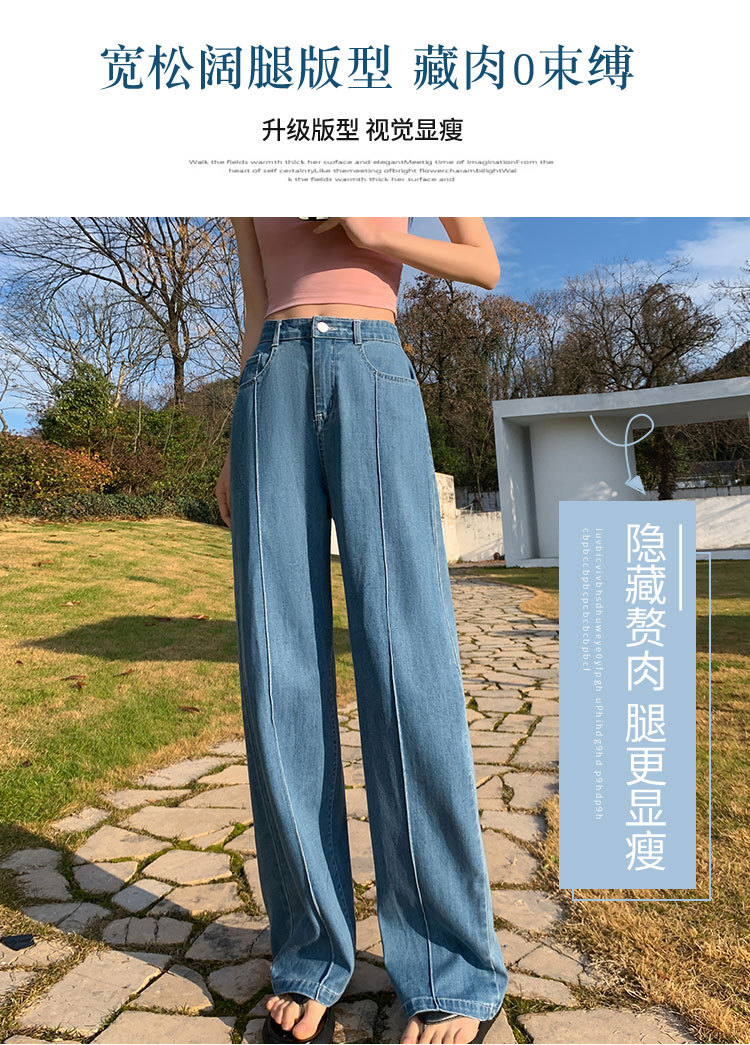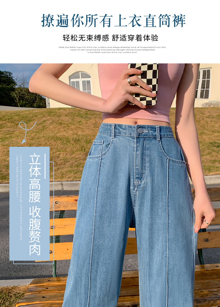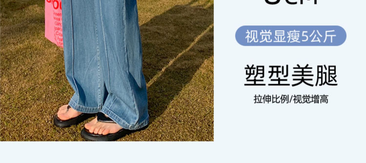 「凉爽天丝!立体高腰」天丝高腰牛仔裤女夏季薄款垂坠感小个子直筒拖地裤窄版阔腿裤女生