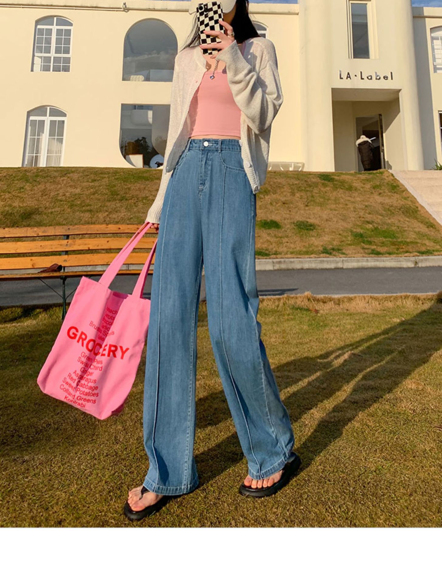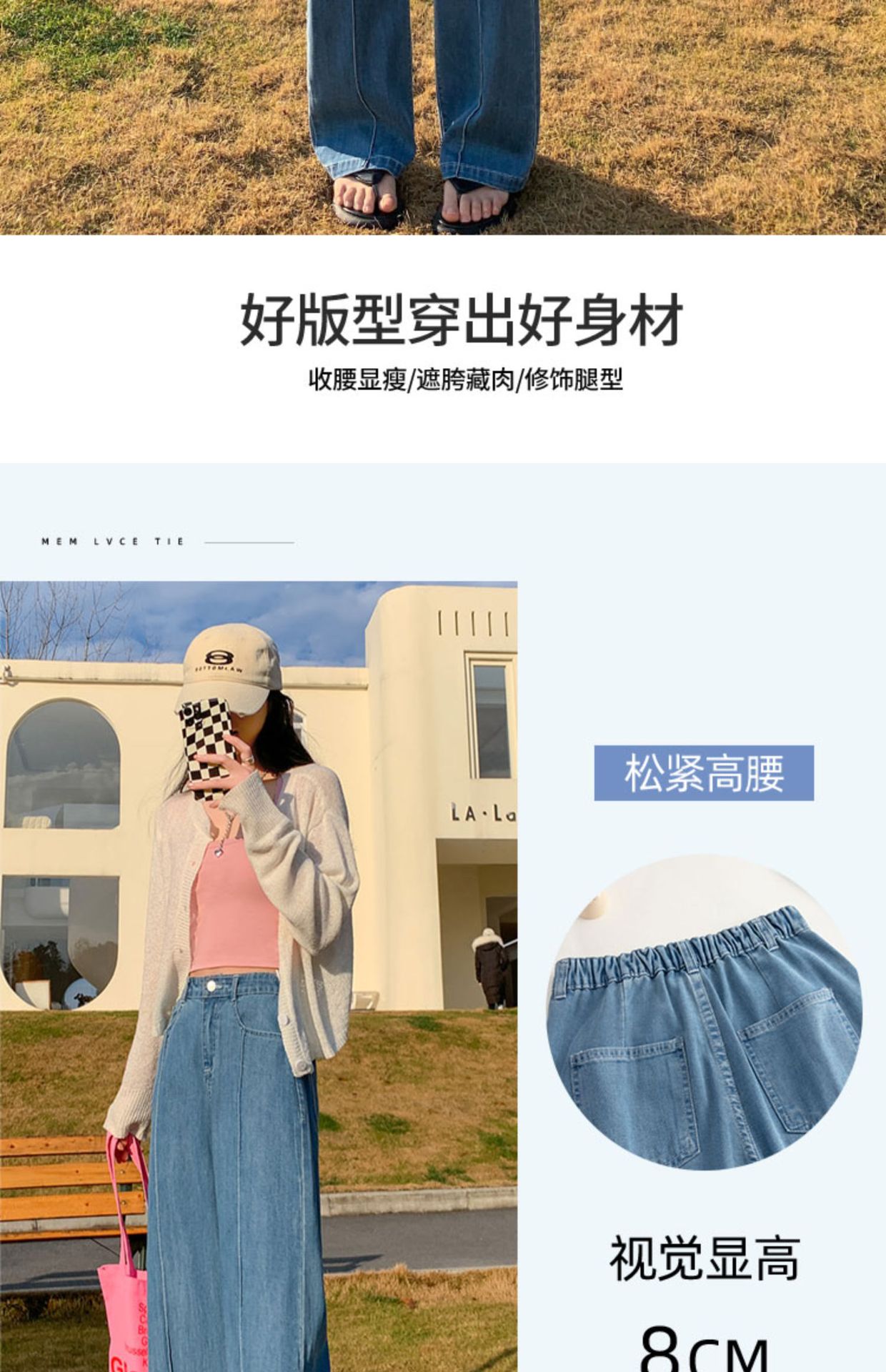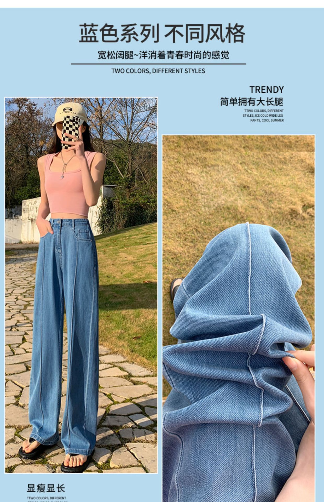 「凉爽天丝!立体高腰」天丝高腰牛仔裤女夏季薄款垂坠感小个子直筒拖地裤窄版阔腿裤女生