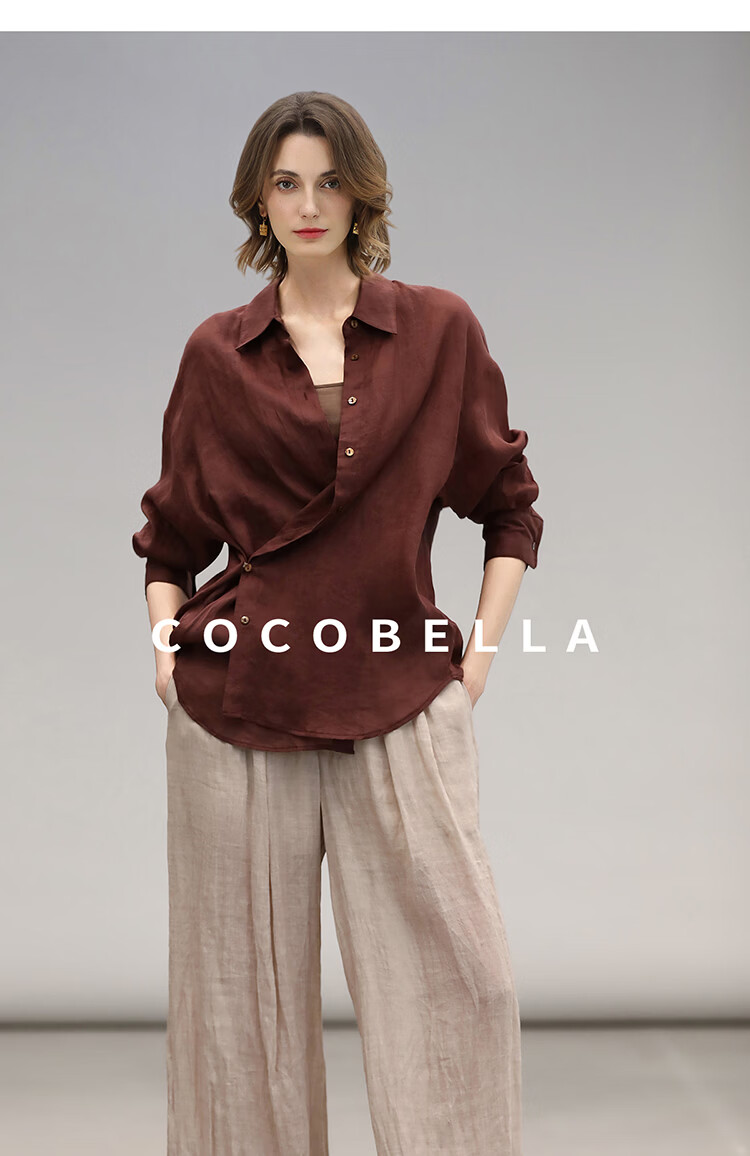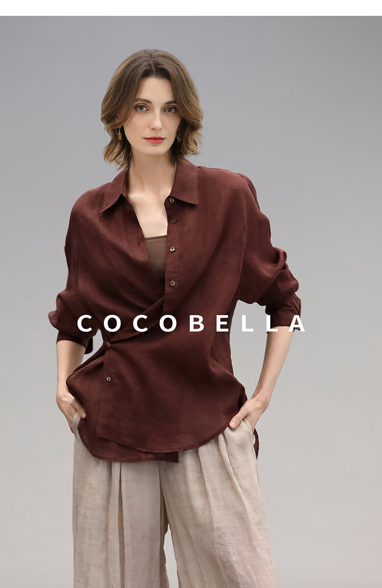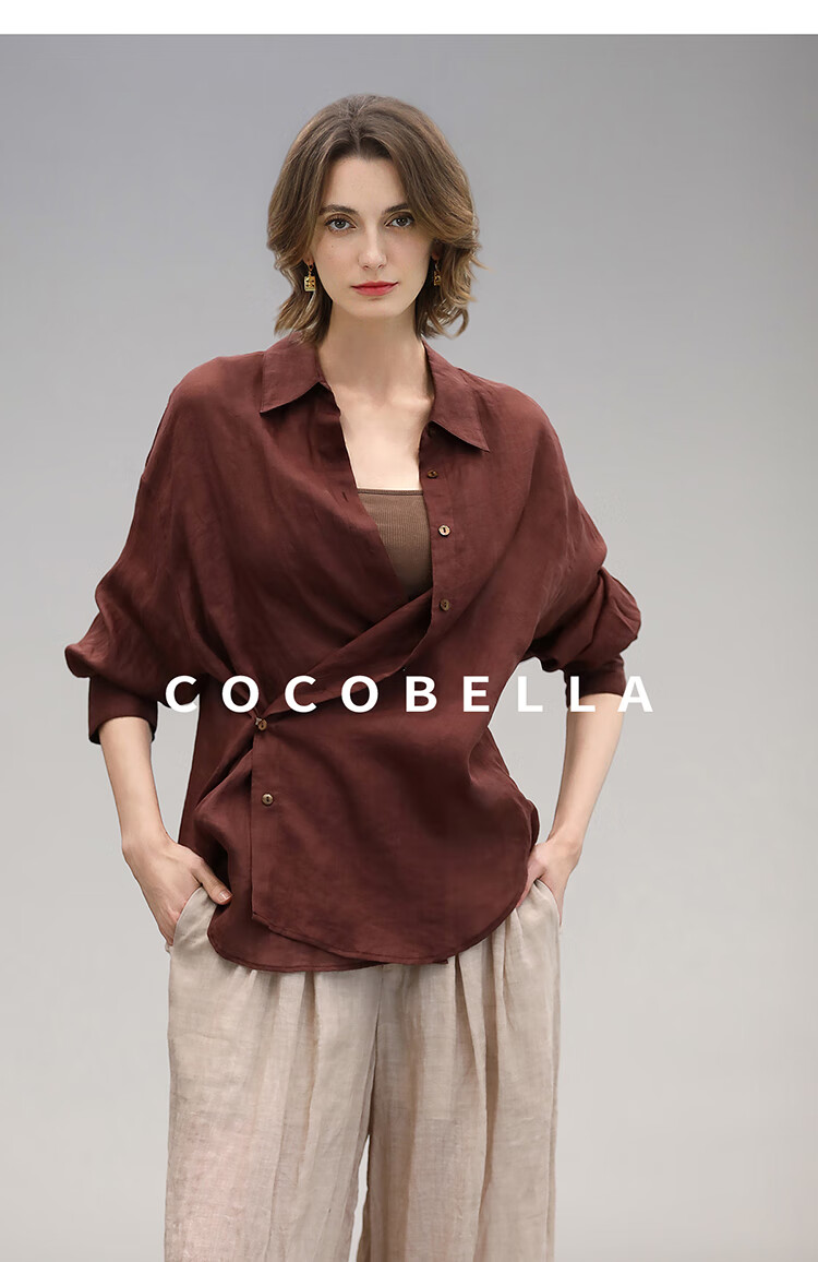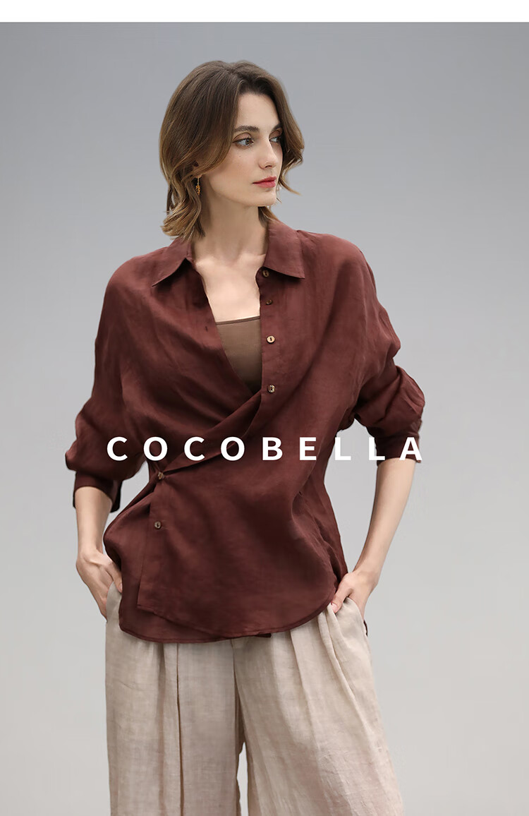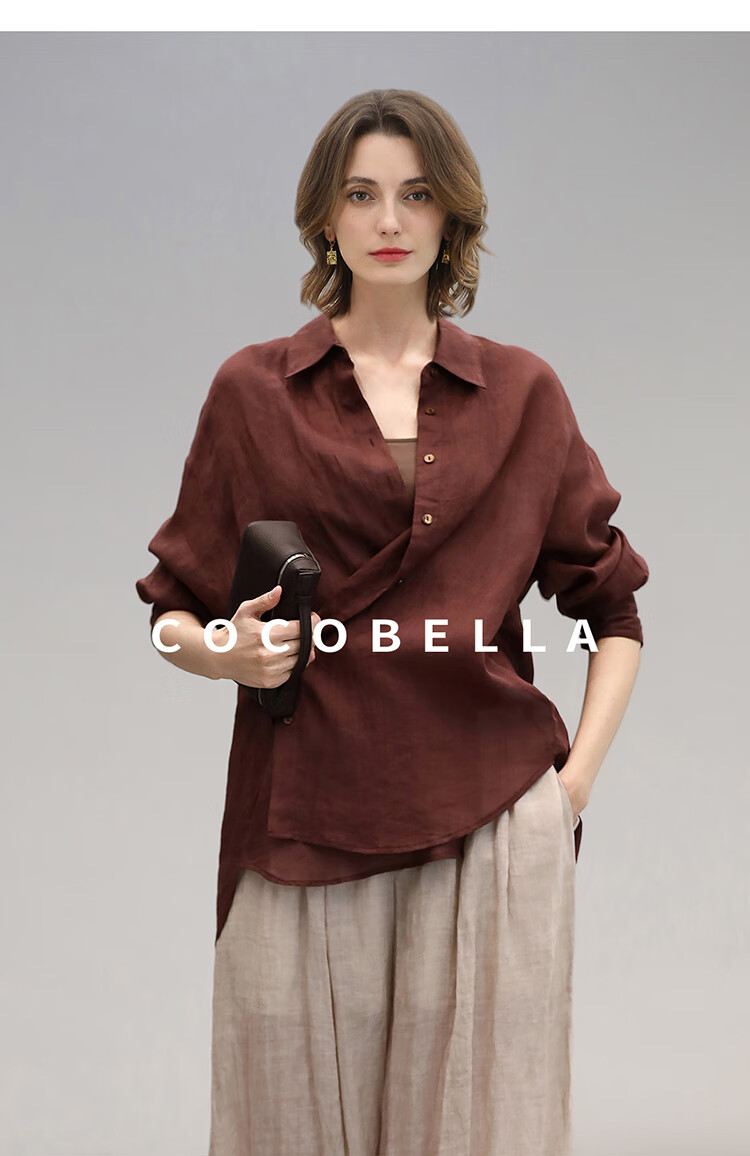 COCOBELLA古法染色100%苎麻衬衫女气质波尔多酒红衬衣SR0058