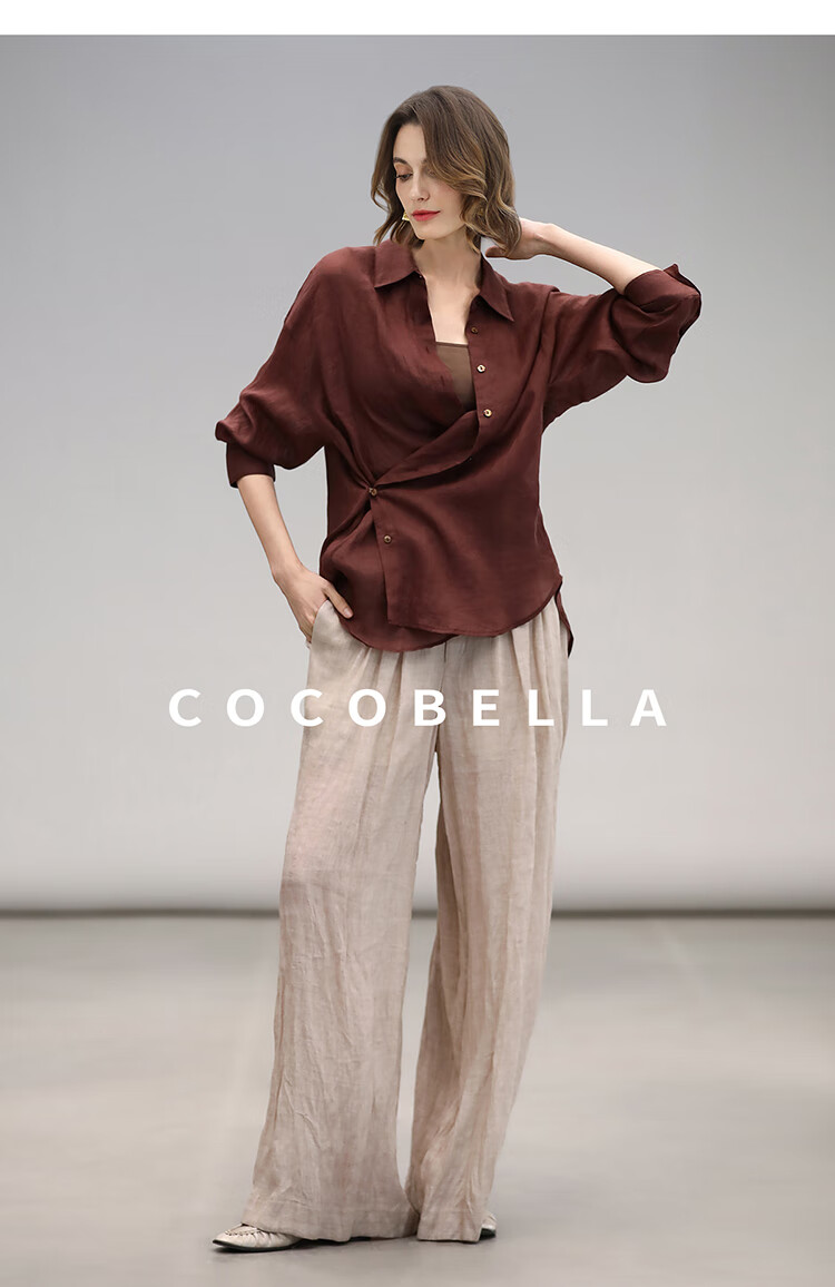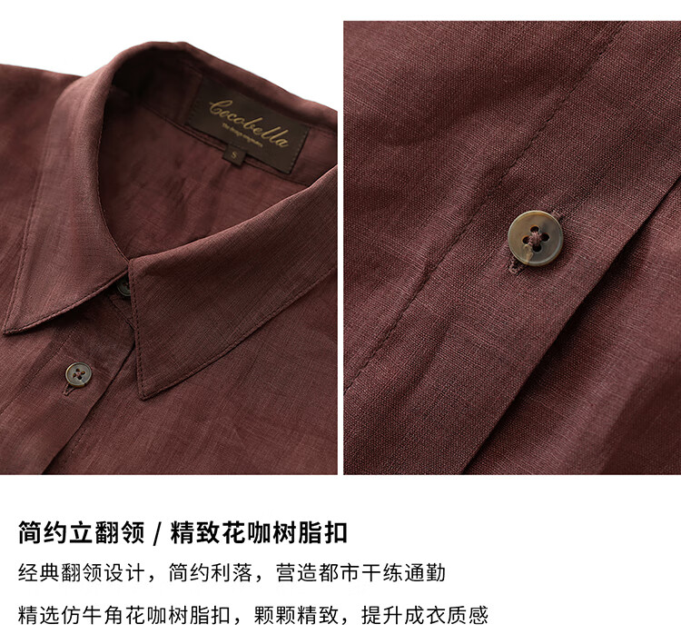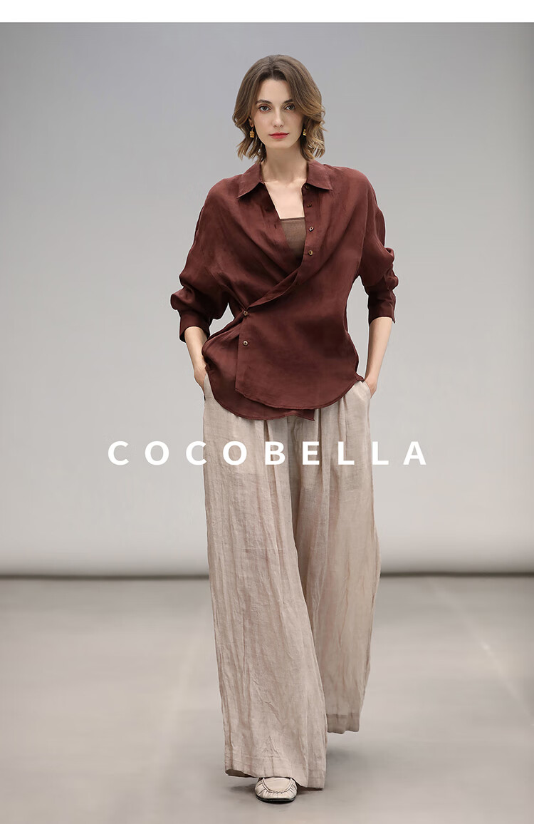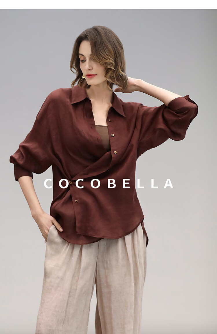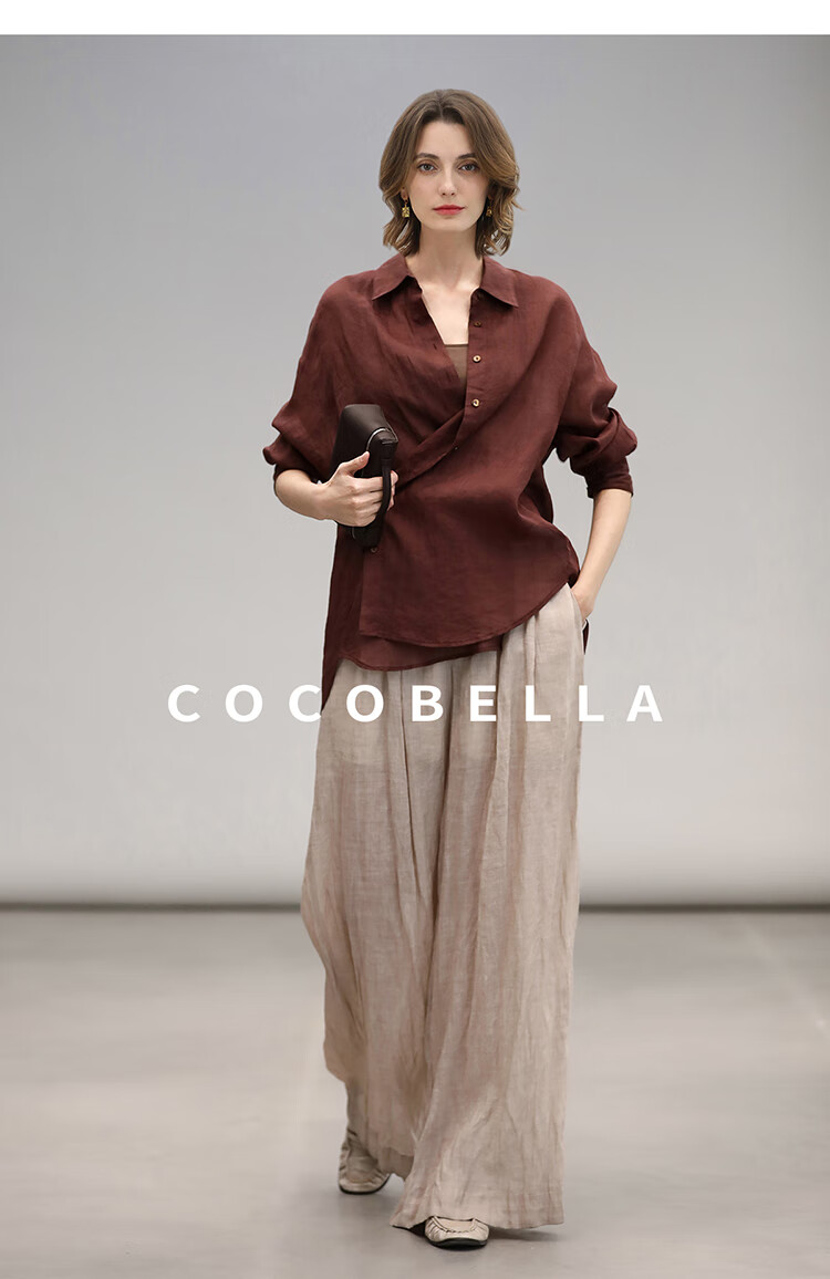 COCOBELLA古法染色100%苎麻衬衫女气质波尔多酒红衬衣SR0058